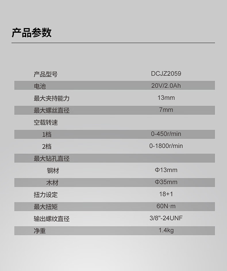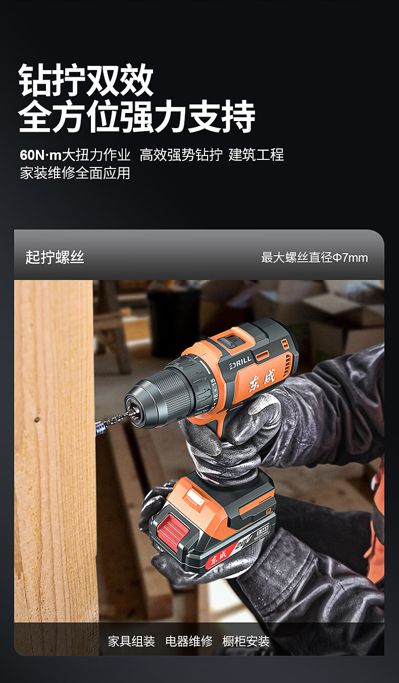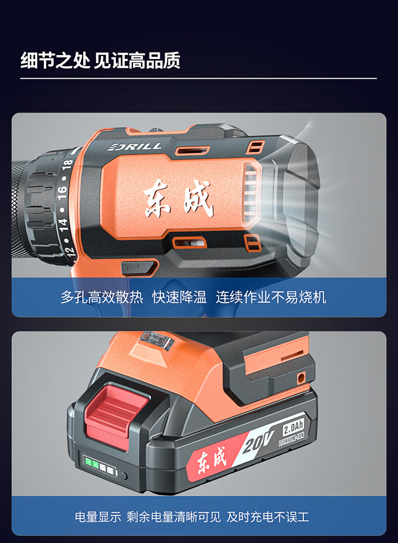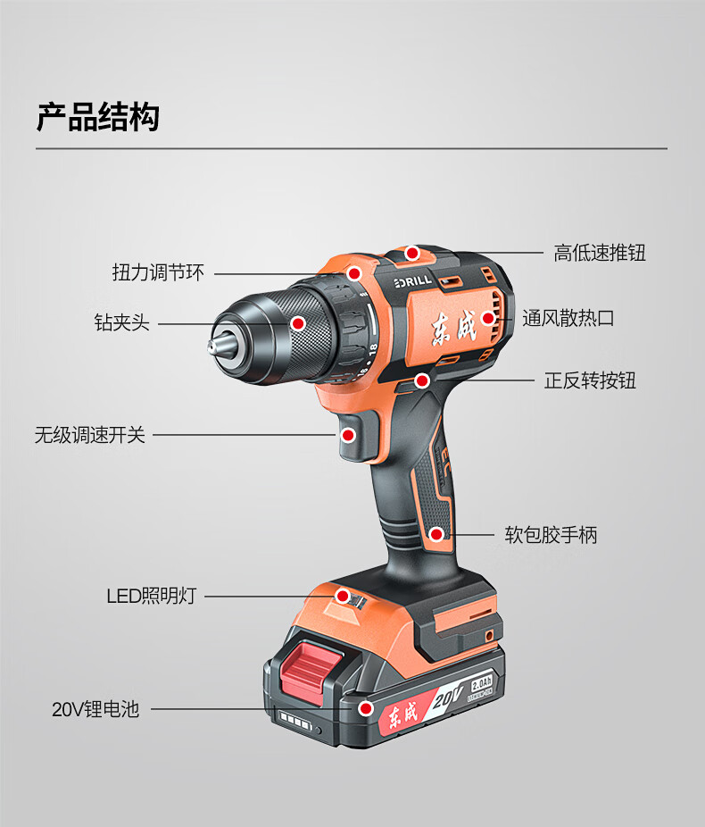 • 商品名称:东成20V锂电钻DCJZ2059D无刷手电钻充电式电动螺丝刀起子机单电套装 DCJZ2059D/套