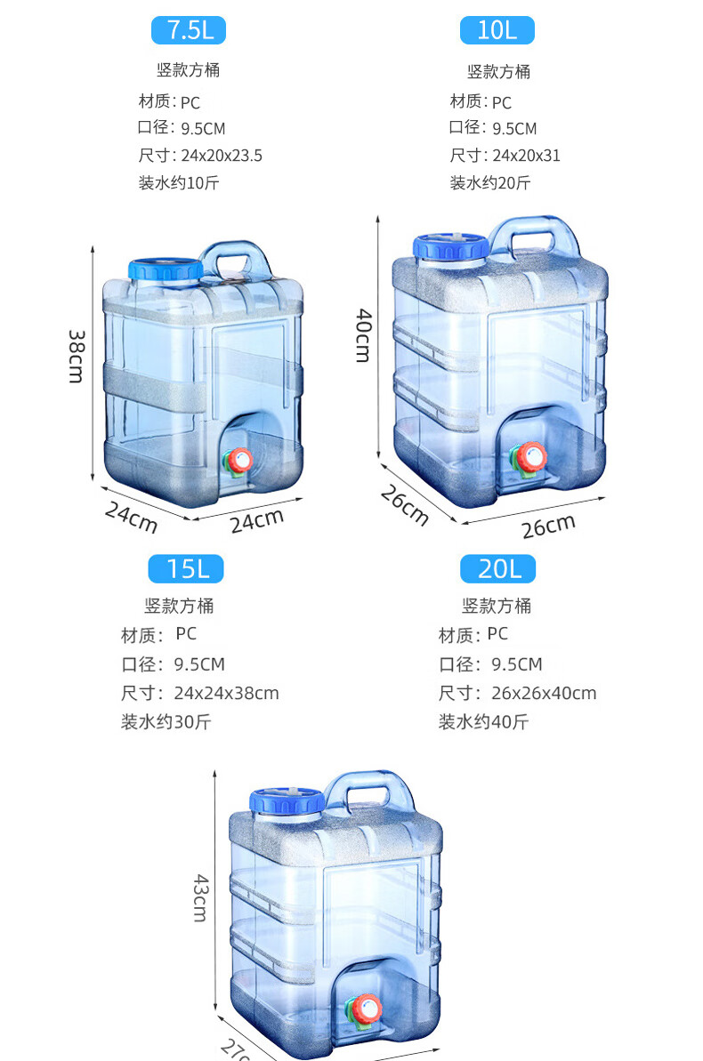 商品名称: 益美得 CC516 塑料饮水桶车载便携纯净水桶带龙头 7.5L方桶含延长管 CC516/个