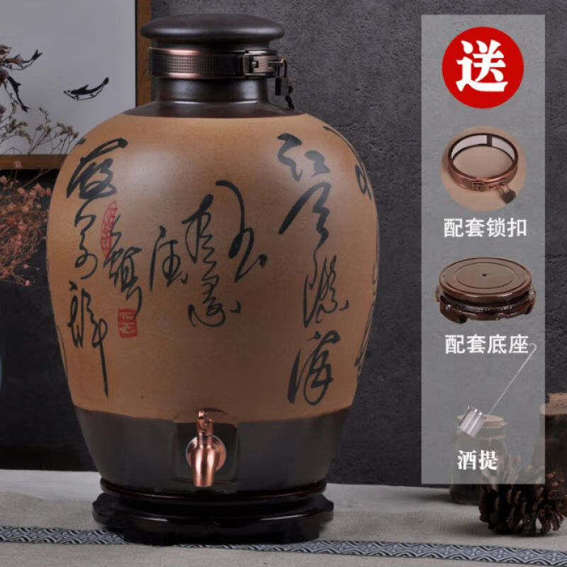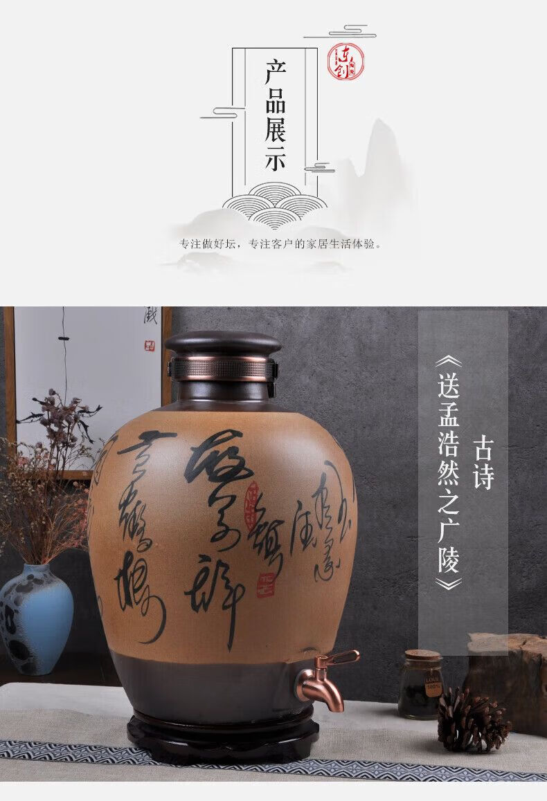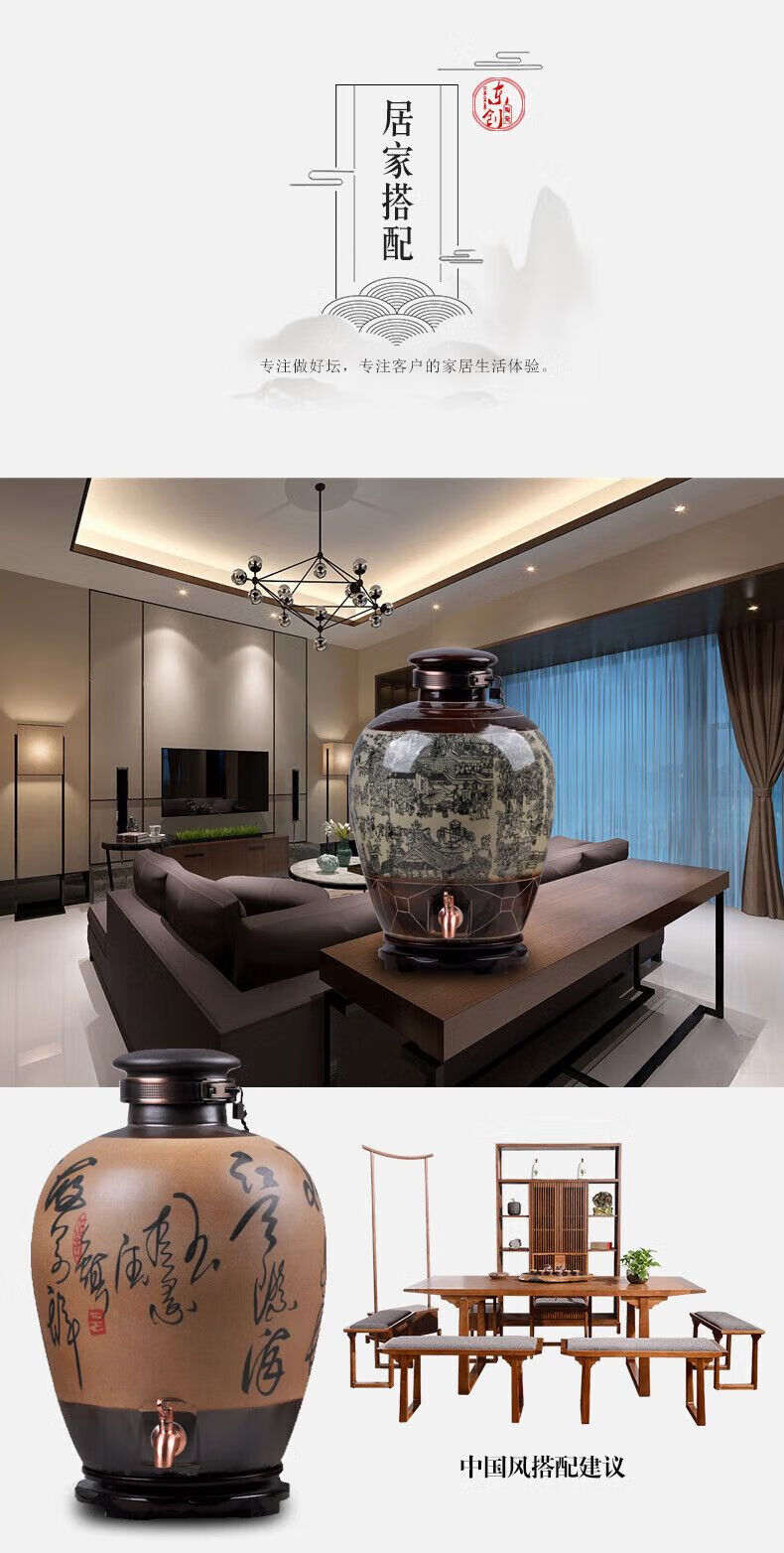 • 商品名称:瑾宇景德镇陶瓷泡酒坛子10-50斤酿酒缸仿古酒瓶家用存酒壶可选龙 30斤古诗古铜龙头/个