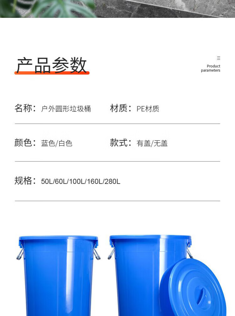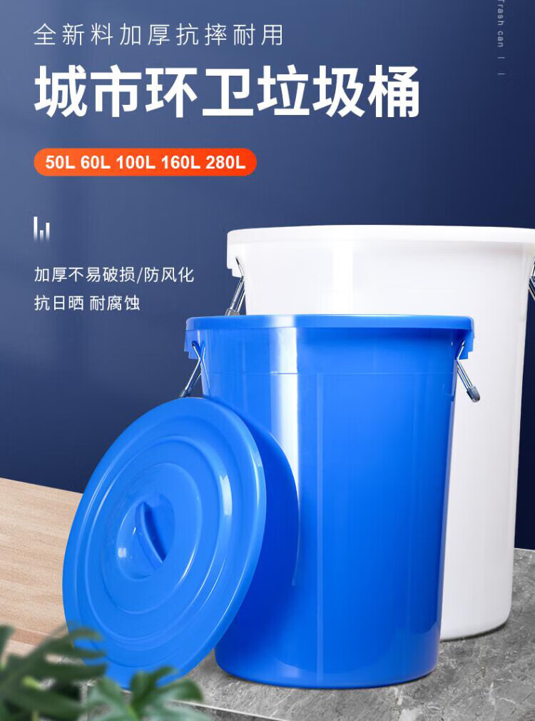 • 商品名称:莱羽炫蓝色160L有盖大号圆形垃圾桶户外大容量加厚带盖塑料收纳桶 塑料 蓝色160L有盖大号圆形垃圾桶户外大容量加厚带盖塑料收纳桶 塑料/个