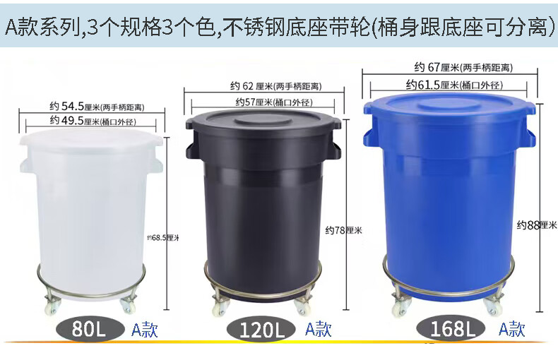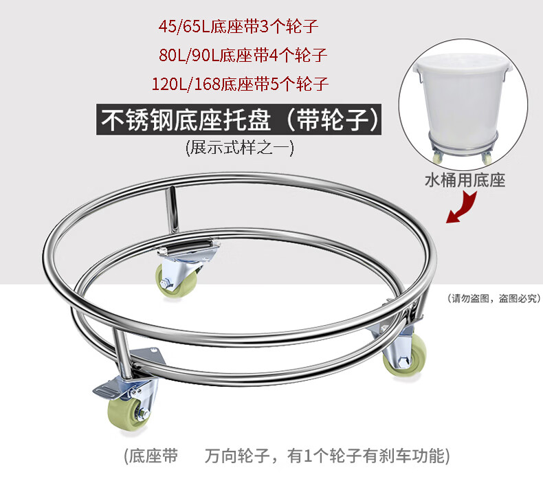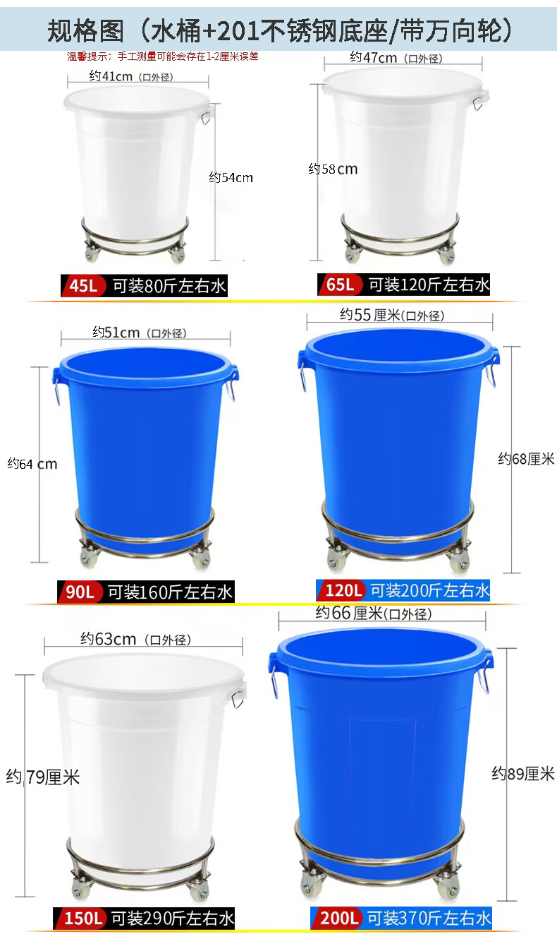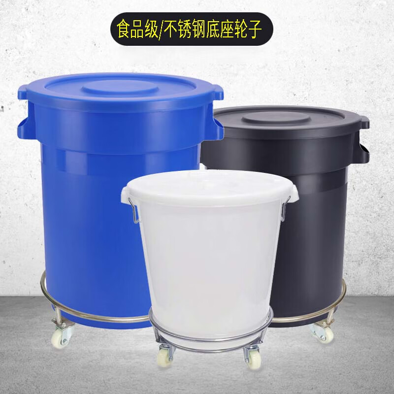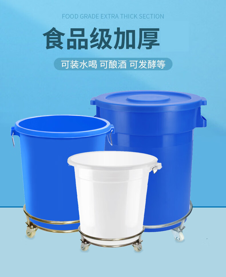 商品名称: 美厨储水桶带轮子食品级圆桶家用困水腌菜酿酒大白桶可移动 白色带盖90L不锈钢底座带轮子 90L/个