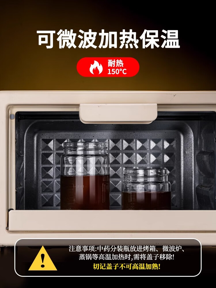 • 商品名称:膳于福高硼硅中药分装可加热耐高温燕窝分装瓶密封罐玻璃储存瓶100ml*2 SYF-1376/个