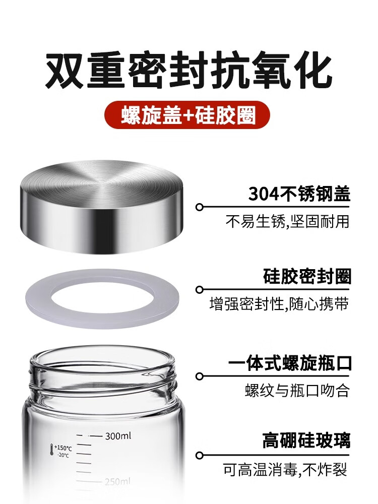膳于福高硼硅中药分装可加热耐高温燕窝分装瓶密封罐玻璃储存瓶100ml*2 SYF-1376/个