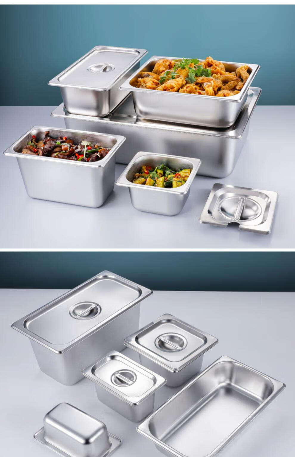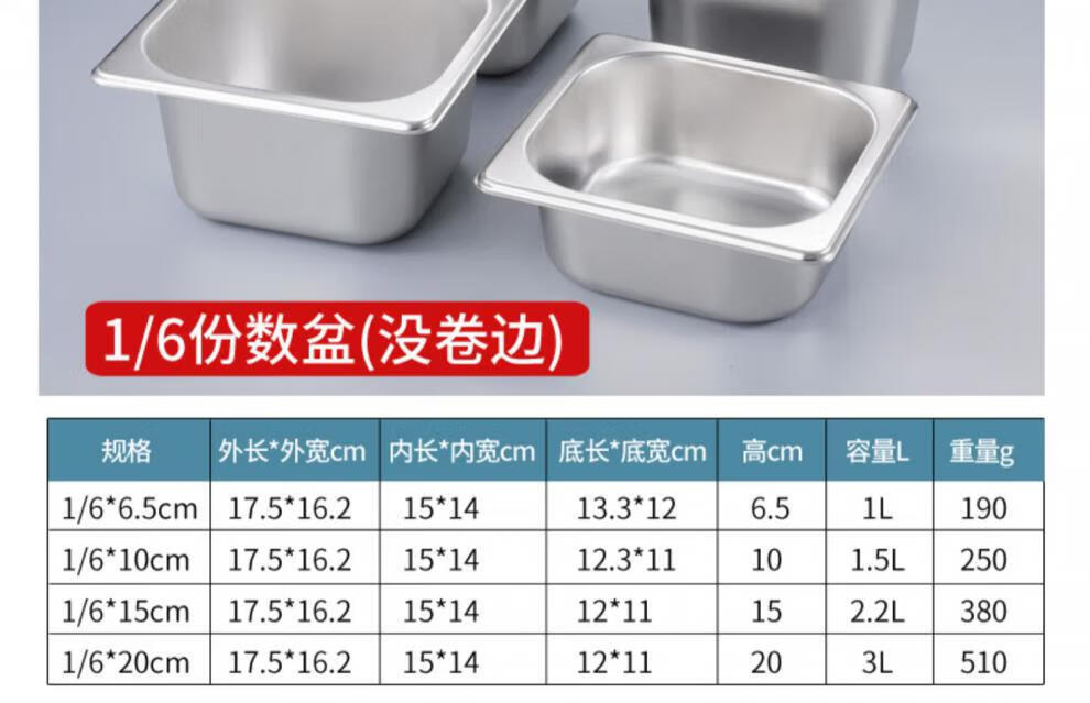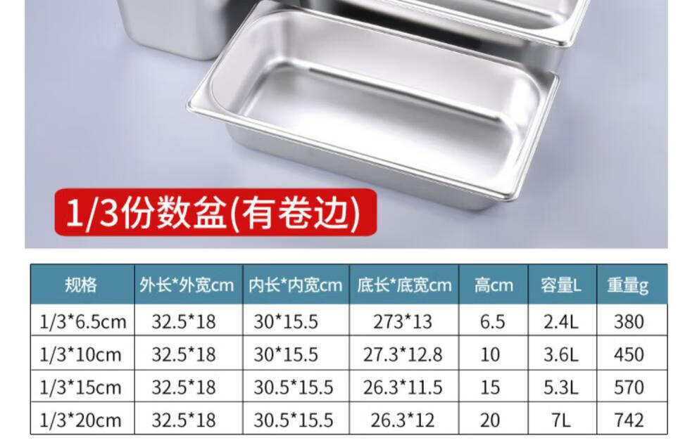 商品名称: 莱羽炫不锈钢份数盆长方形盆带盖商用 【1/3】32.5*17.5*10cm 高 特厚 【1/3】32.5*17.5*10cm 高 特厚/个