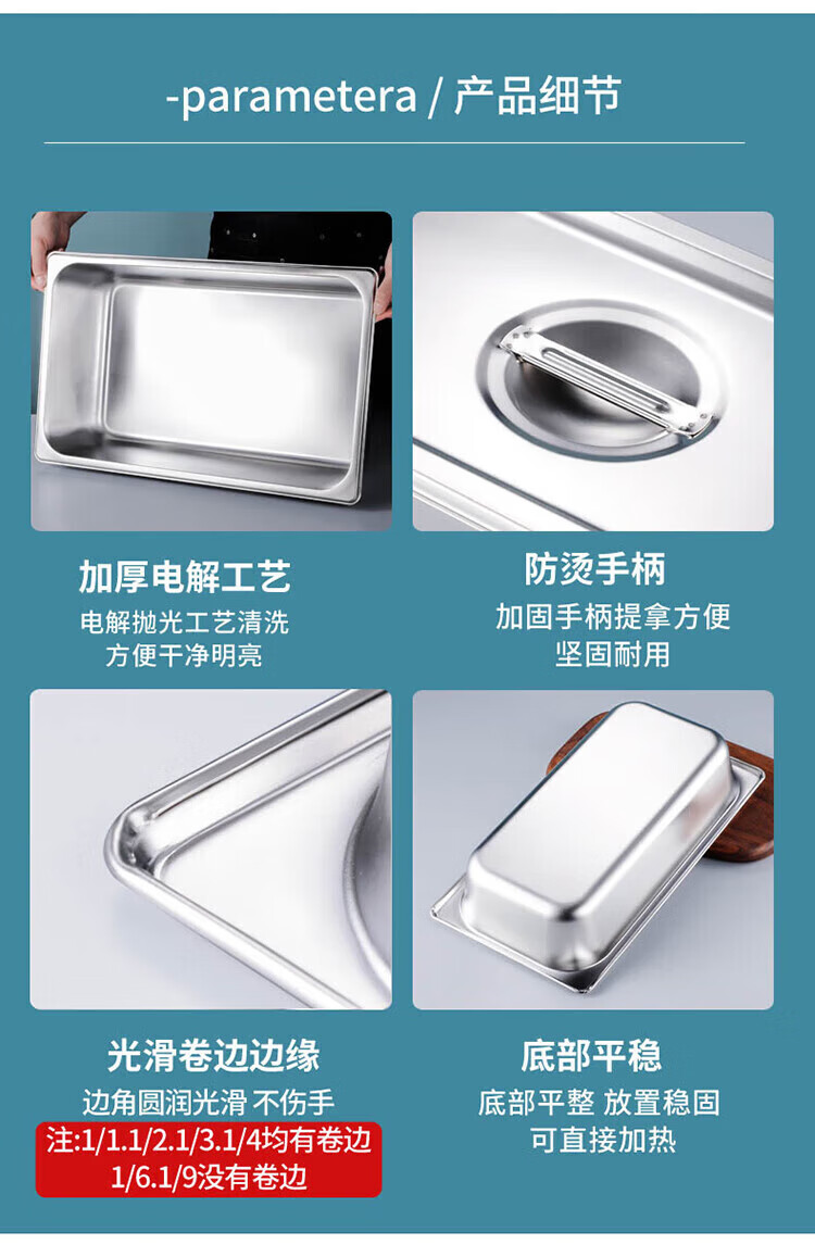 • 商品名称:京蓓尔 不锈钢份数盆食堂打菜盆盛菜保温餐车深盘装菜盒餐厅分菜盆 1/2份数盆32.5*26.5*6.5cm 【1/2】32.5*26.5*6.5cm/个