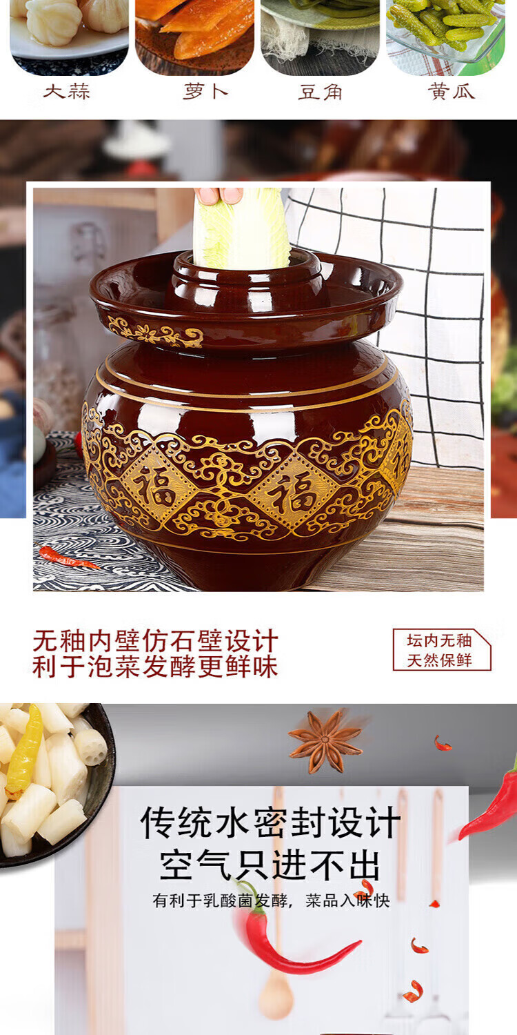 商品名称: 熙意 泡菜坛子土陶老式陶瓷罐咸菜坛带盖酸菜缸可定制 16斤+内盖 16斤+内盖/个