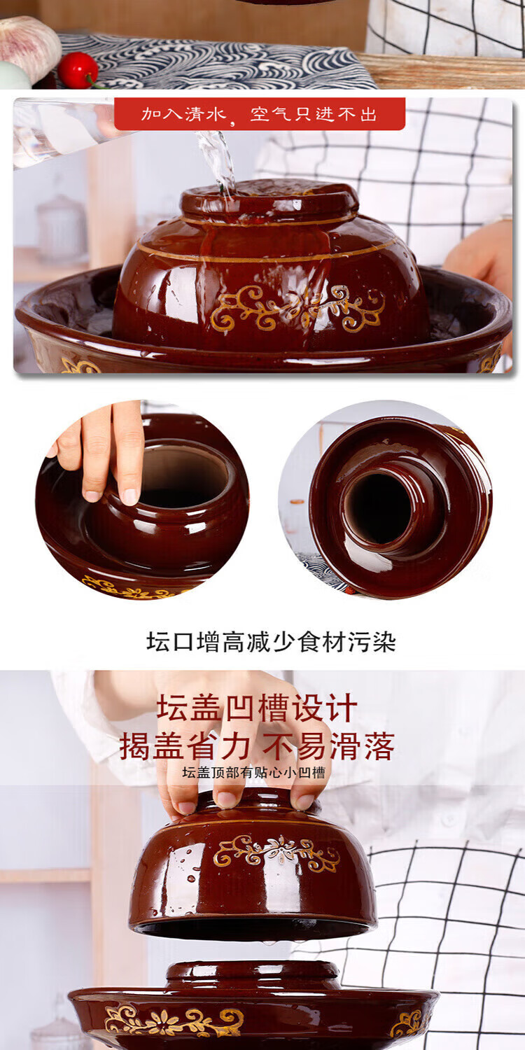 厨具  > 厨房储物  > 厨房储物器皿  >  熙意  >  熙意 泡菜坛子土陶老式陶瓷罐咸菜坛带盖酸菜缸可定制 16斤+内盖 16斤+内盖/个