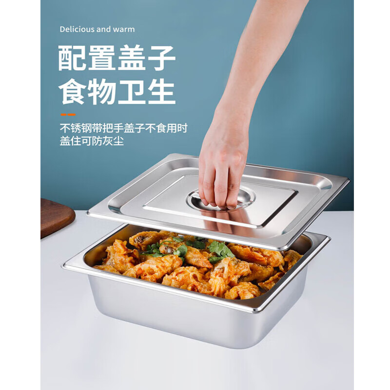 京蓓尔 不锈钢份数盆食堂餐台打菜盆盛菜深盘装菜盒餐厅分菜盆 1/1份数盆盖子53*33cm 银色【1/1】53*33盖子/个