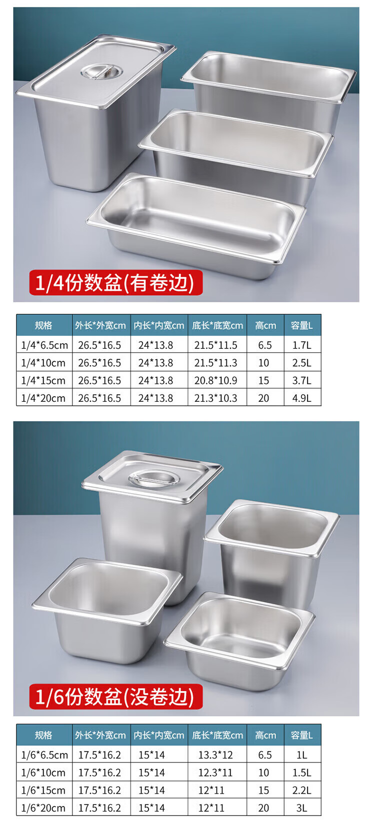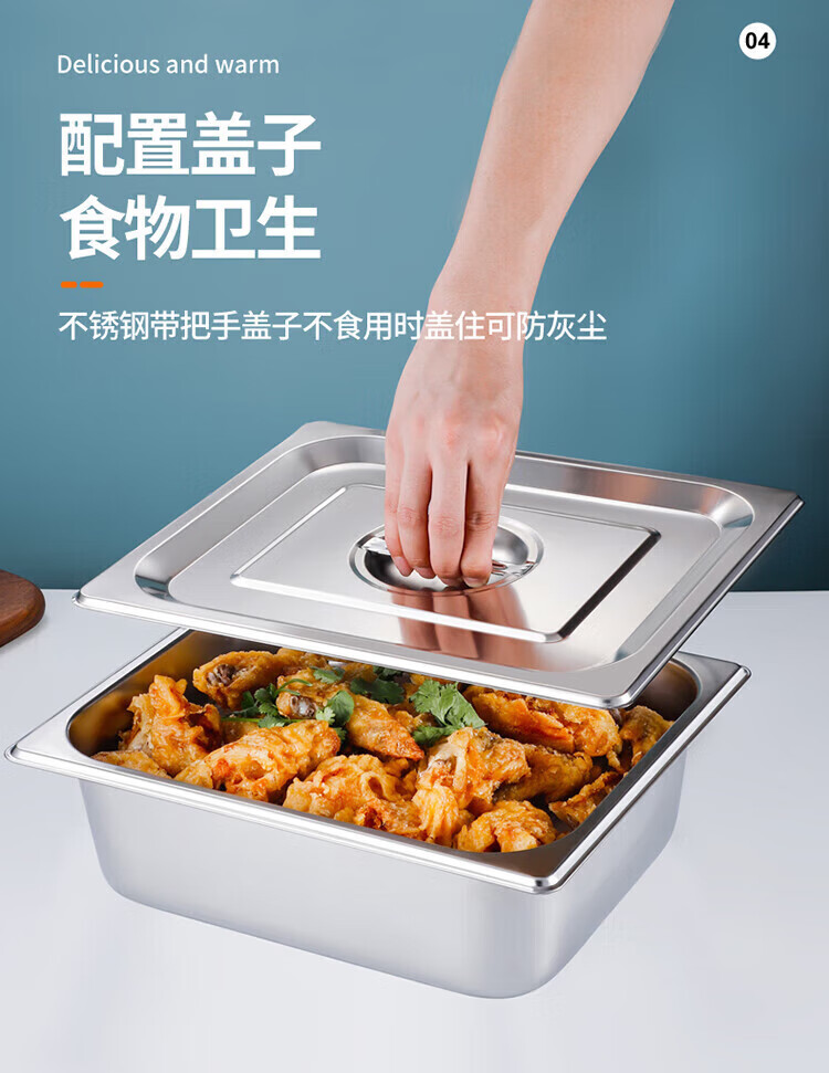 商品名称: 京蓓尔 不锈钢份数盆食堂餐台打菜盆盛菜深盘装菜盒餐厅分菜盆 1/1份数盆盖子53*33cm 银色【1/1】53*33盖子/个