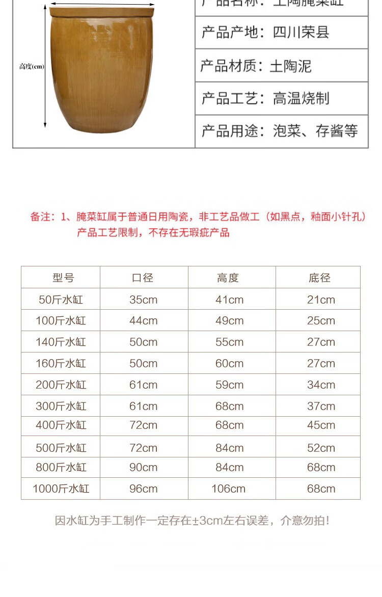 • 商品名称:益美得 CC718 储水缸家用老式土陶酱油缸醋缸米酒缸 140斤瘦高水缸 CC718/个