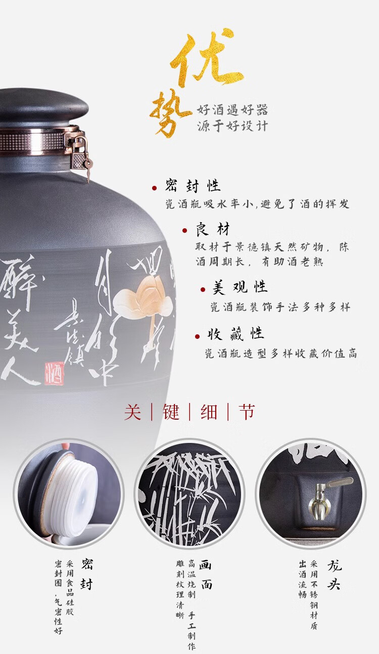 商品名称: 益美得 GKV14 酒坛景德镇陶瓷酿酒缸泡酒专用瓶密封酒罐 30斤(无龙头) GKV14/个