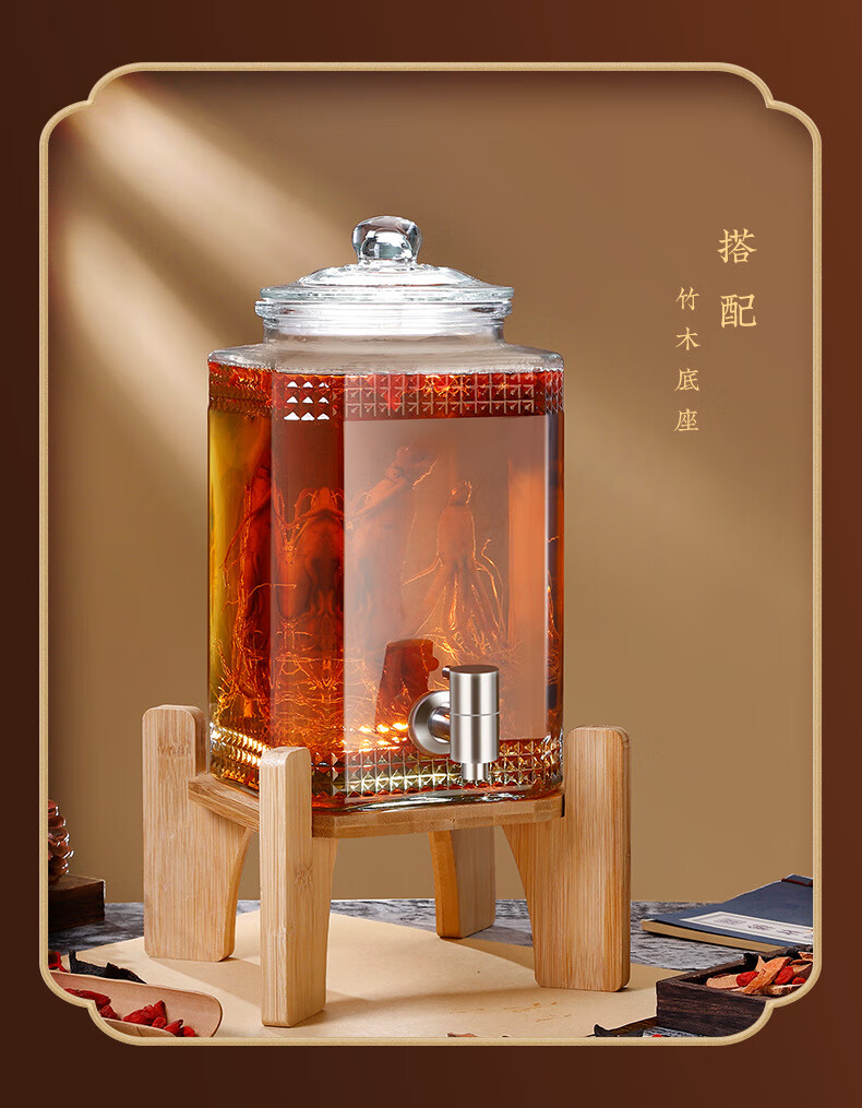 • 商品名称:京清福 泡酒玻璃瓶酿酒坛酒罐加厚家用装酒容器 不锈钢龙头 10斤 10斤不锈钢龙头/个