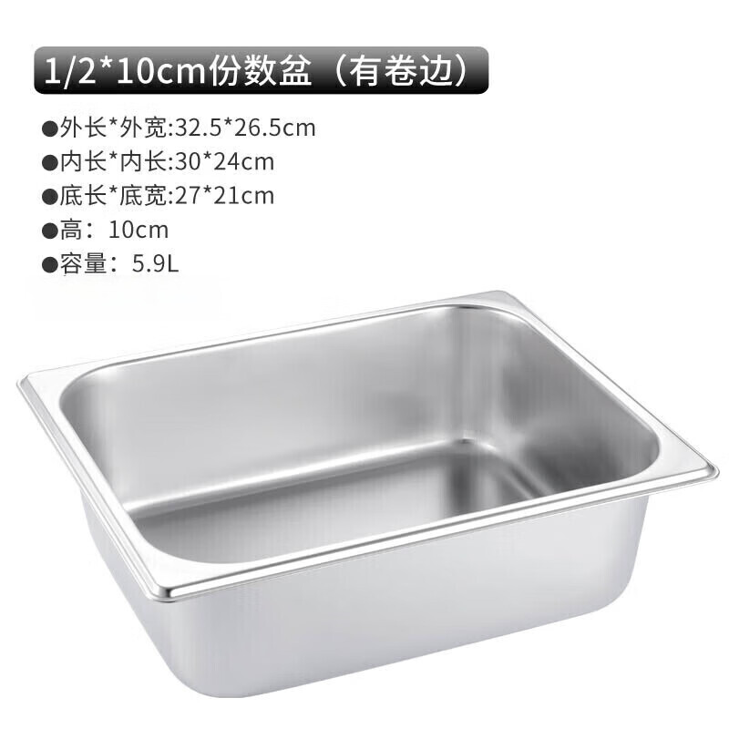 京清福 不锈钢份数盆长方形不带盖盆方盘盒子 【1/2】32.5*26.5*10cm高 【1/2】32.5*26.5*10cm高/个