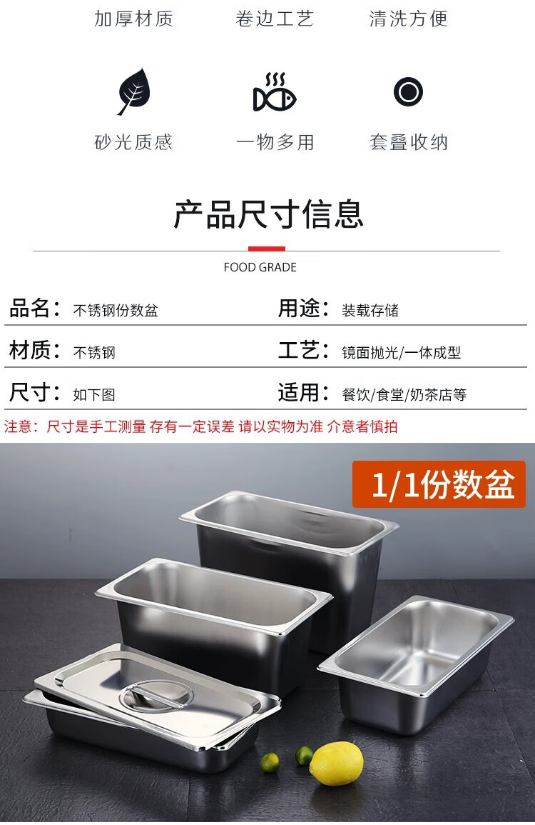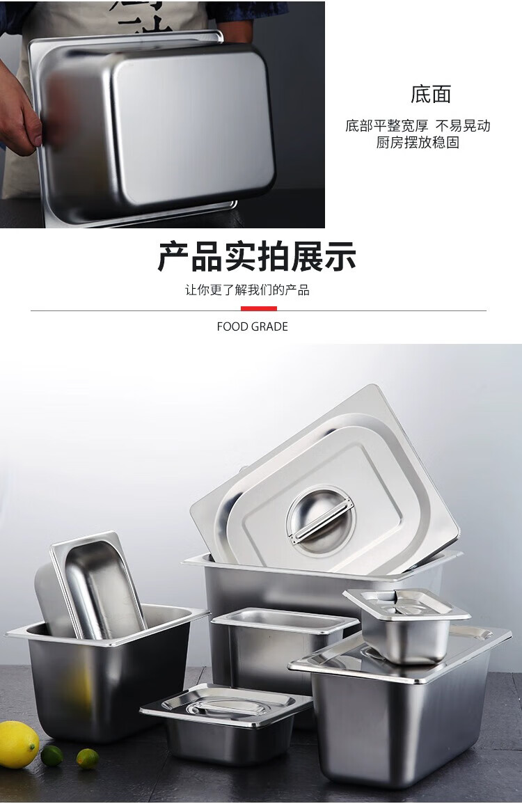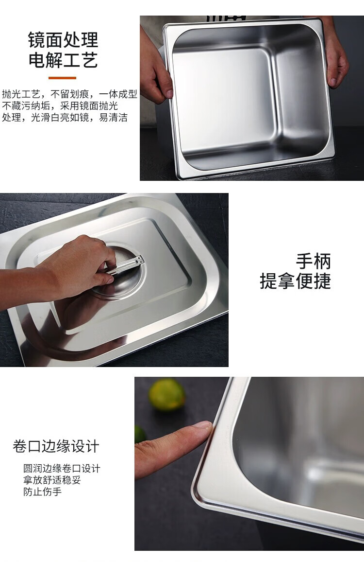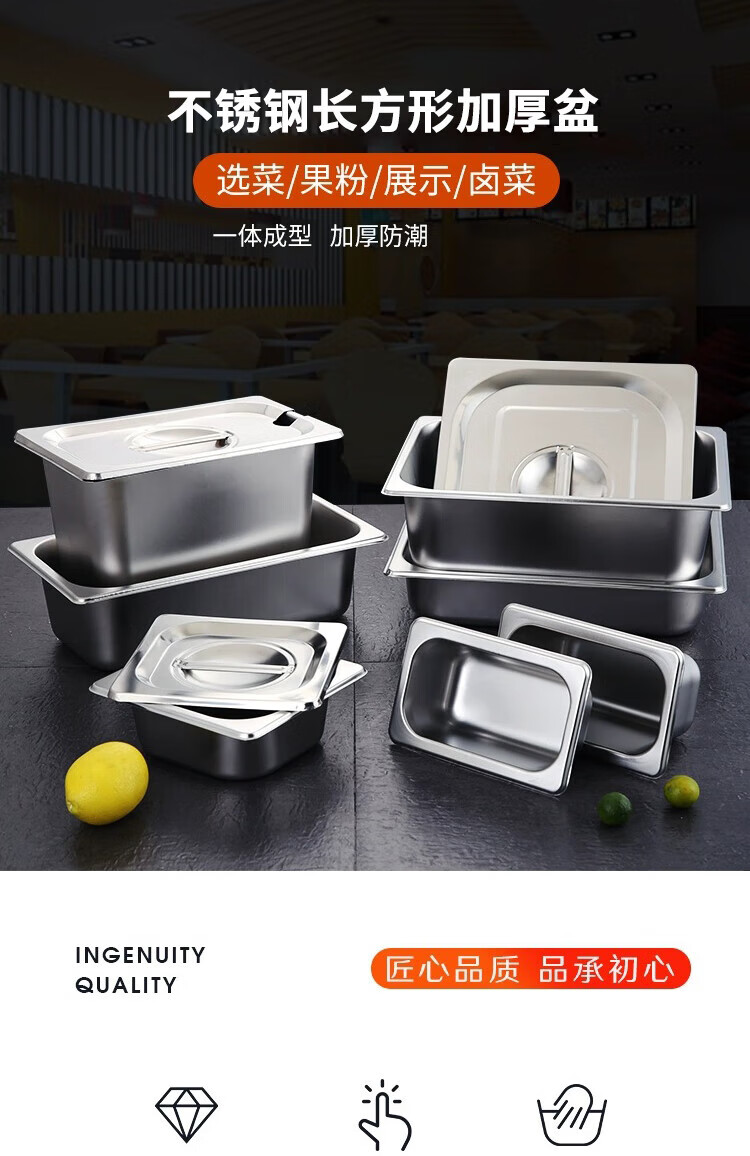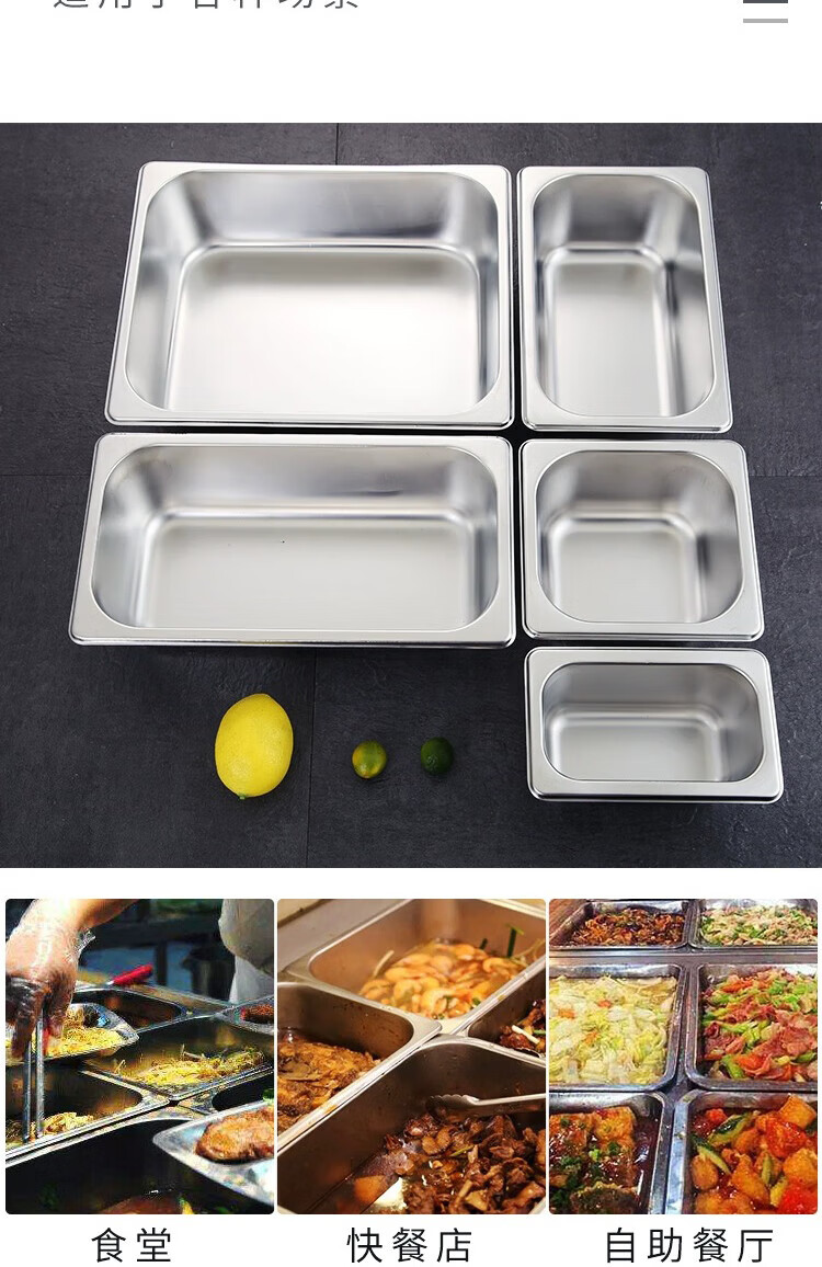 厨具  > 厨房储物  > 厨房储物器皿  >  彩塘智造  >  彩塘智造 不锈钢份数盆食堂餐台打菜盆盛菜深盘方盘装菜盒餐厅分菜盆 1/1份数盆53*32.5*15cm 1/1 53*32.5*15cm/个