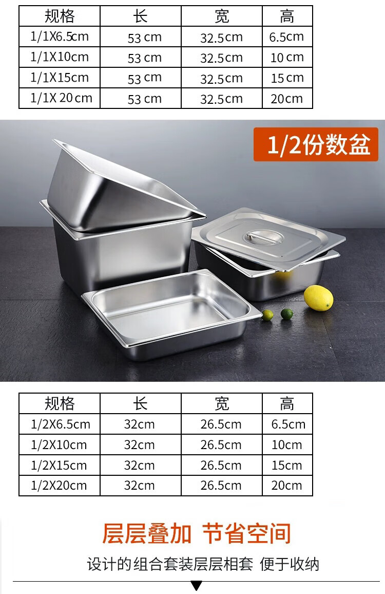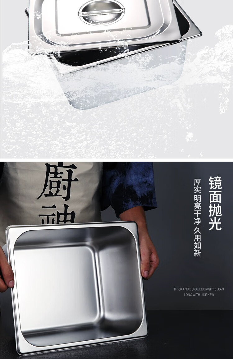 • 商品名称:彩塘智造 不锈钢份数盆食堂餐台打菜盆盛菜深盘方盘装菜盒餐厅分菜盆 1/1份数盆53*32.5*15cm 1/1 53*32.5*15cm/个