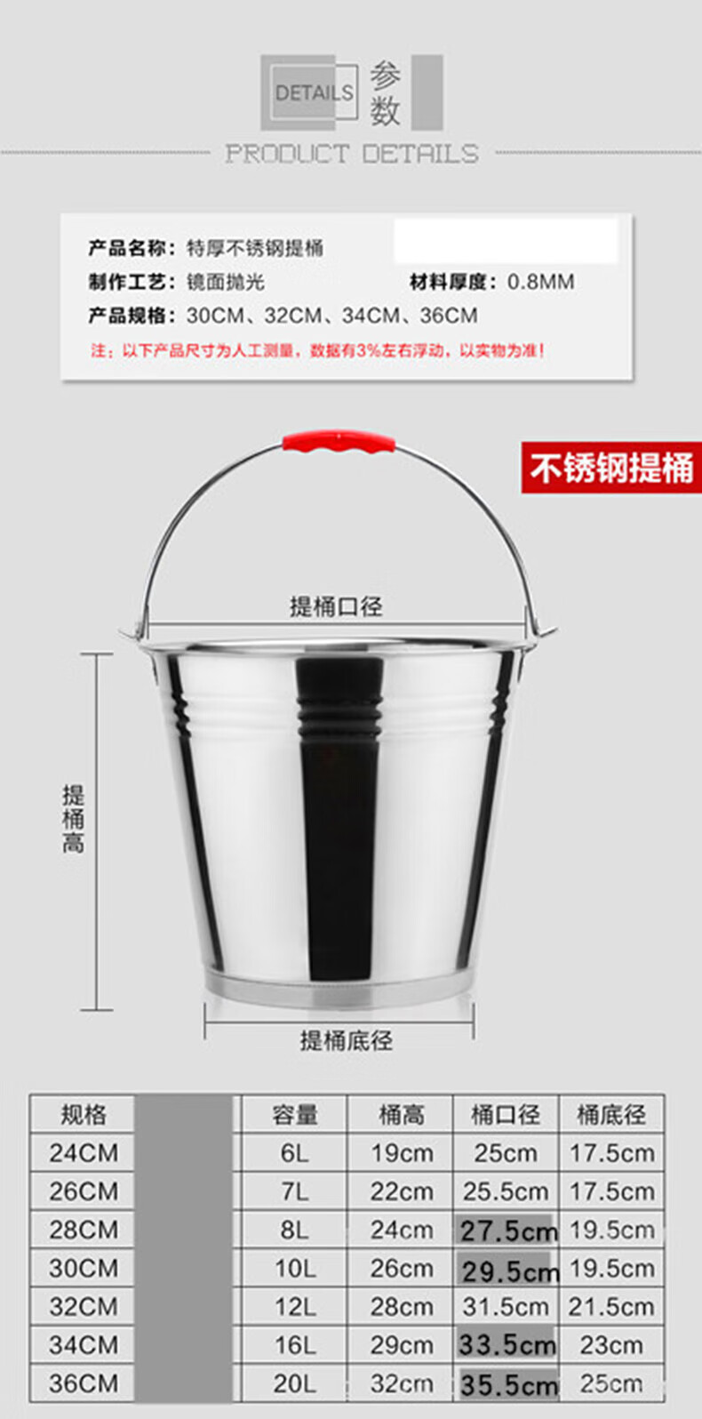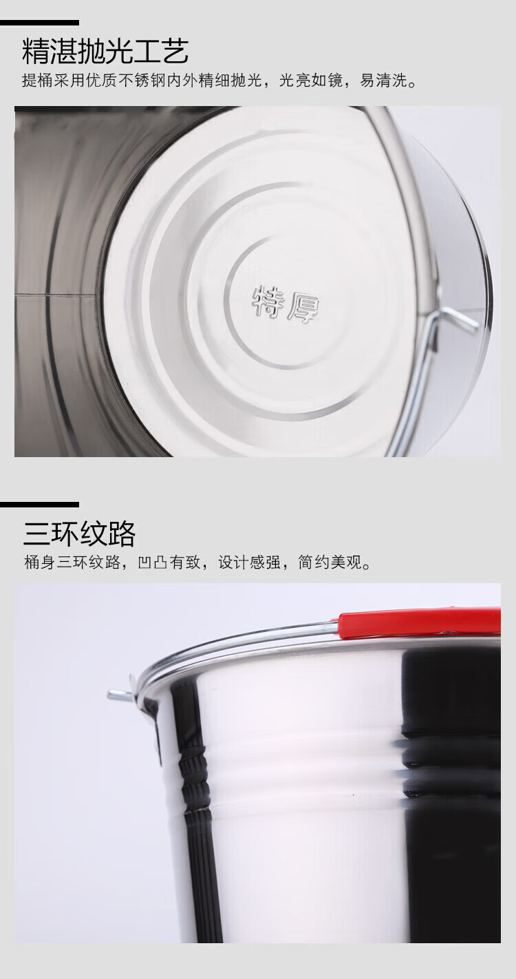 • 商品名称:佳品家厨 不锈钢水桶手提式家用提桶油桶储水特厚28cm无盖8升水桶 手提水桶/个