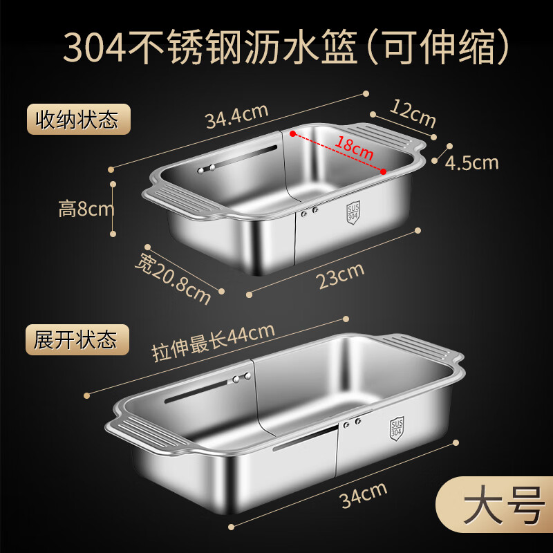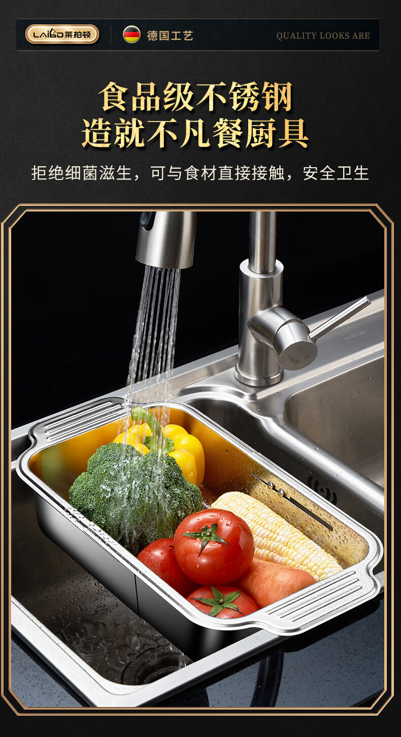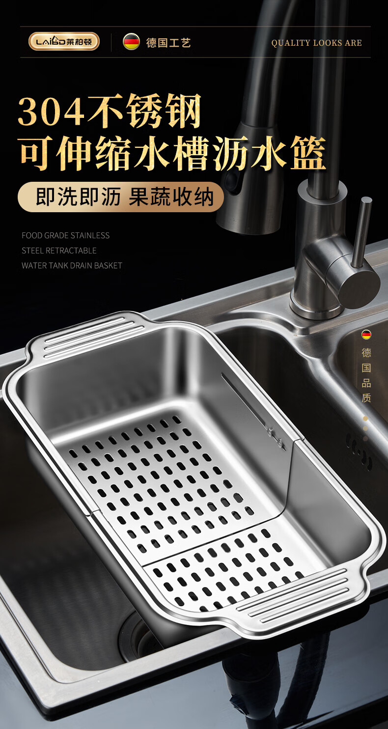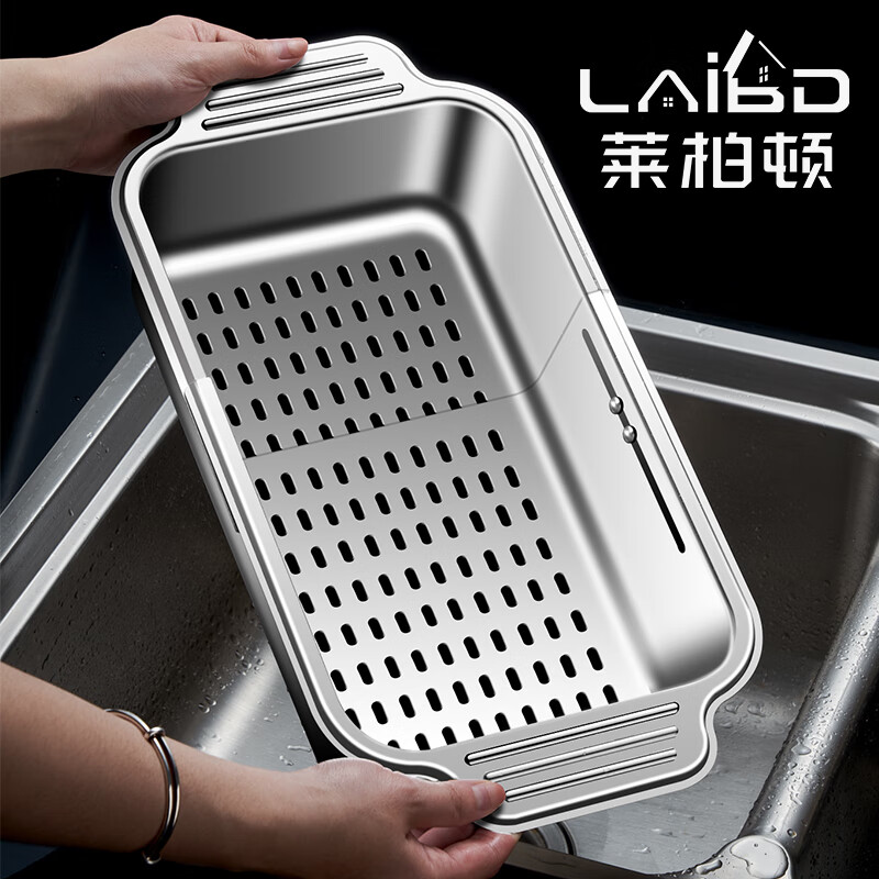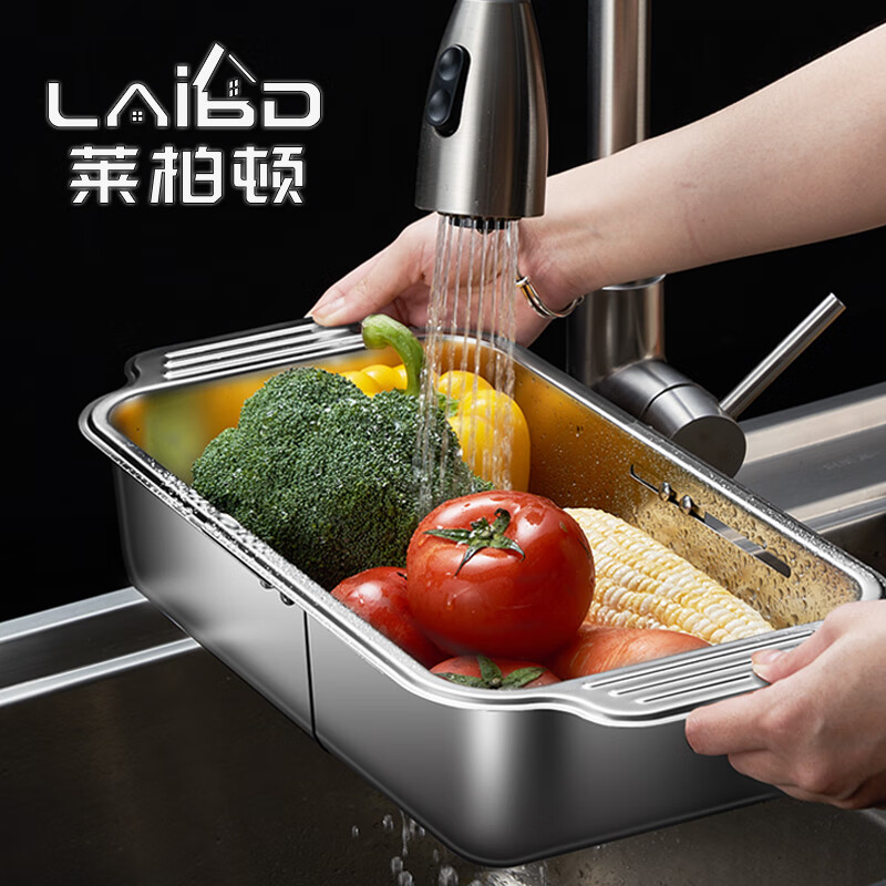 商品名称: 莱柏顿304不锈钢沥水篮厨房水槽水池过滤筐果蔬洗菜篮水果篮可伸缩大号 304水果篮沥水款-大号【可伸缩】/个