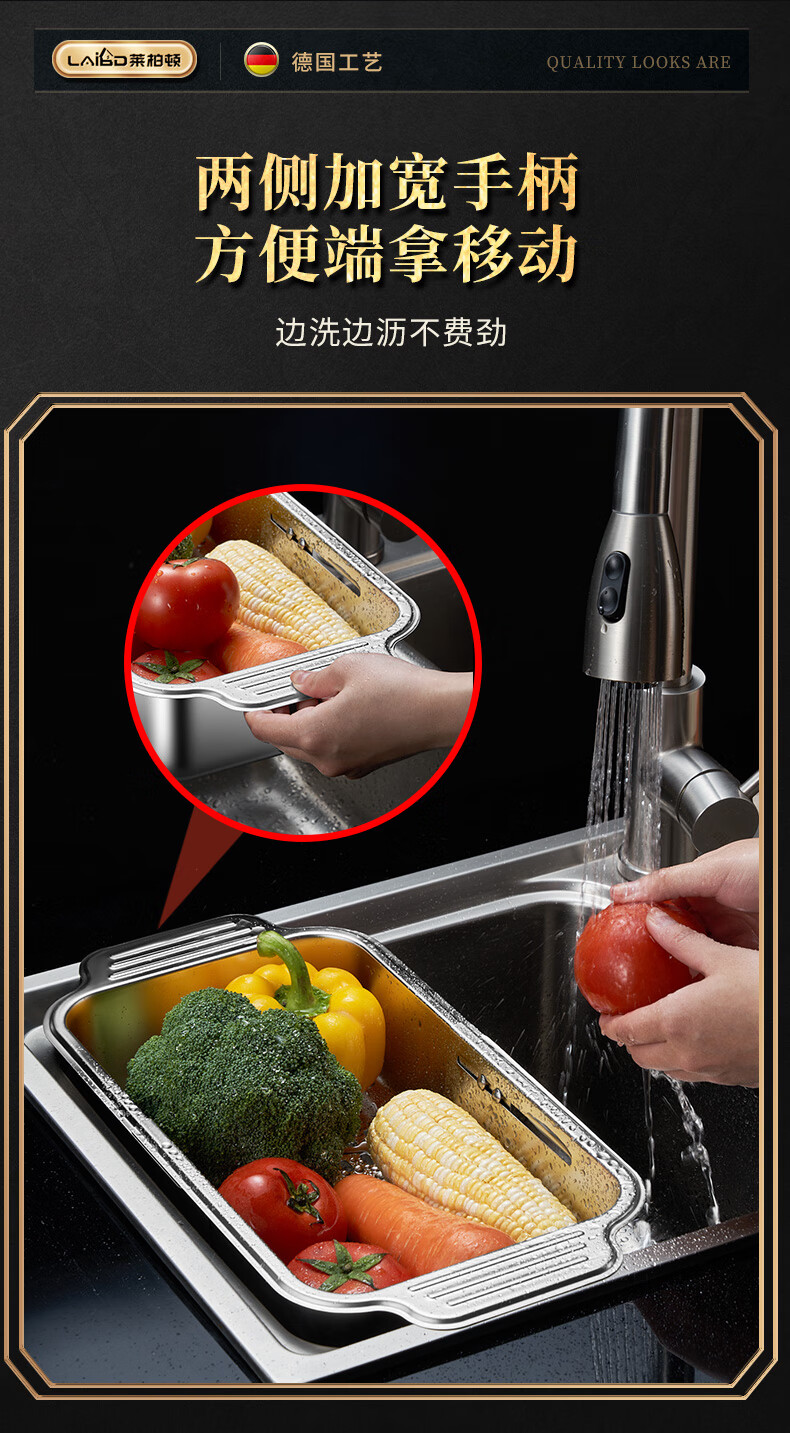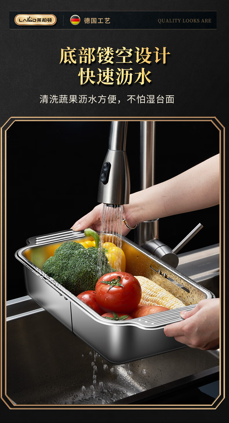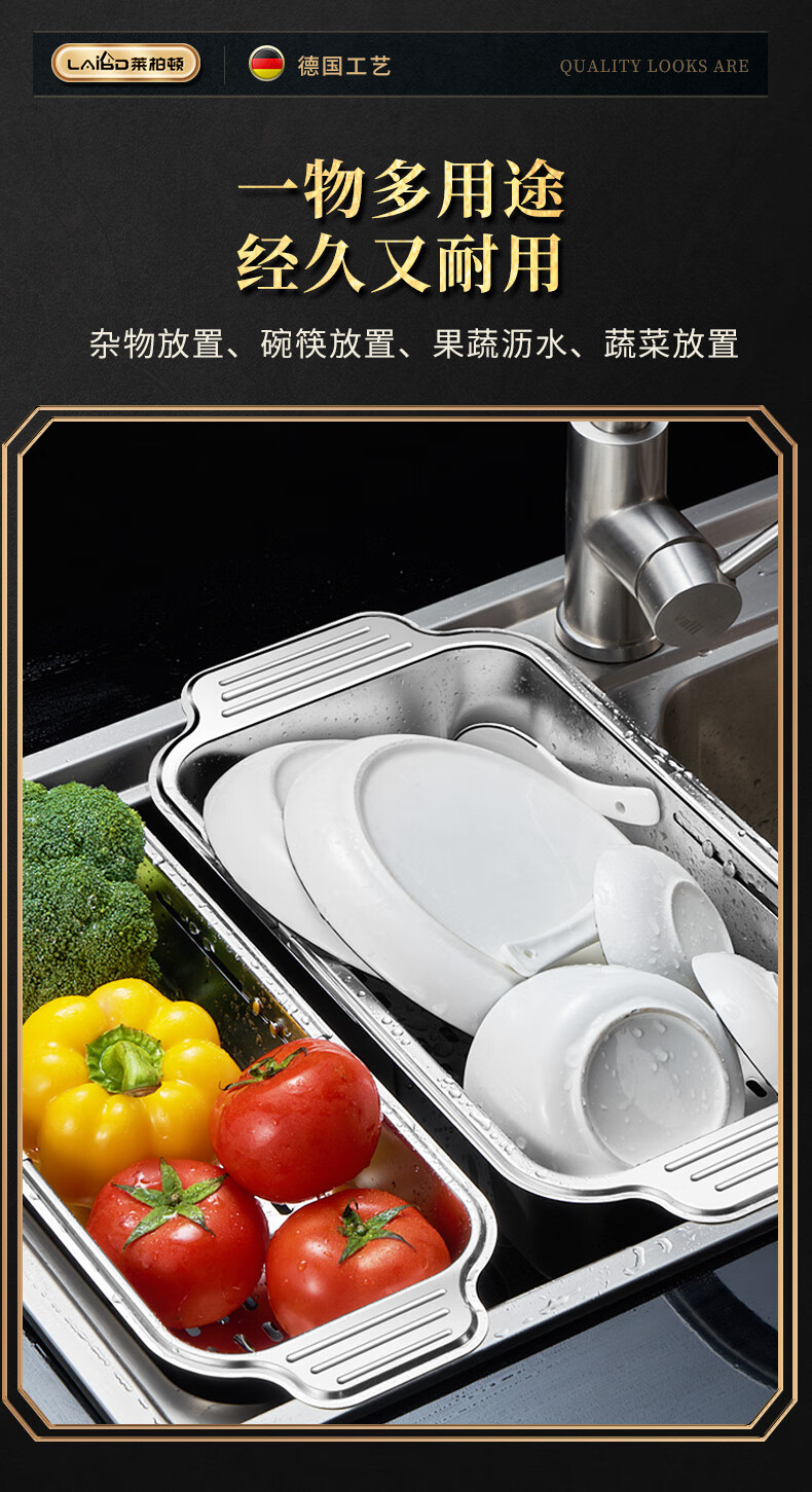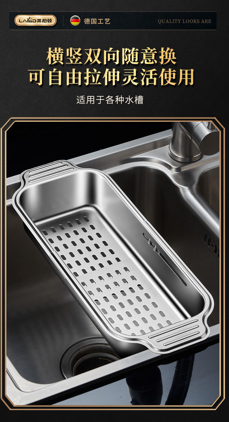 商品名称: 莱柏顿304不锈钢沥水篮厨房水槽水池过滤筐果蔬洗菜篮水果篮可伸缩大号 304水果篮沥水款-大号【可伸缩】/个