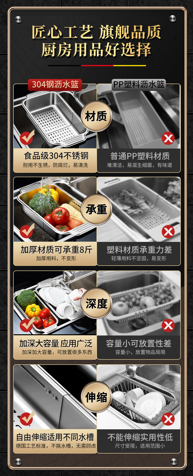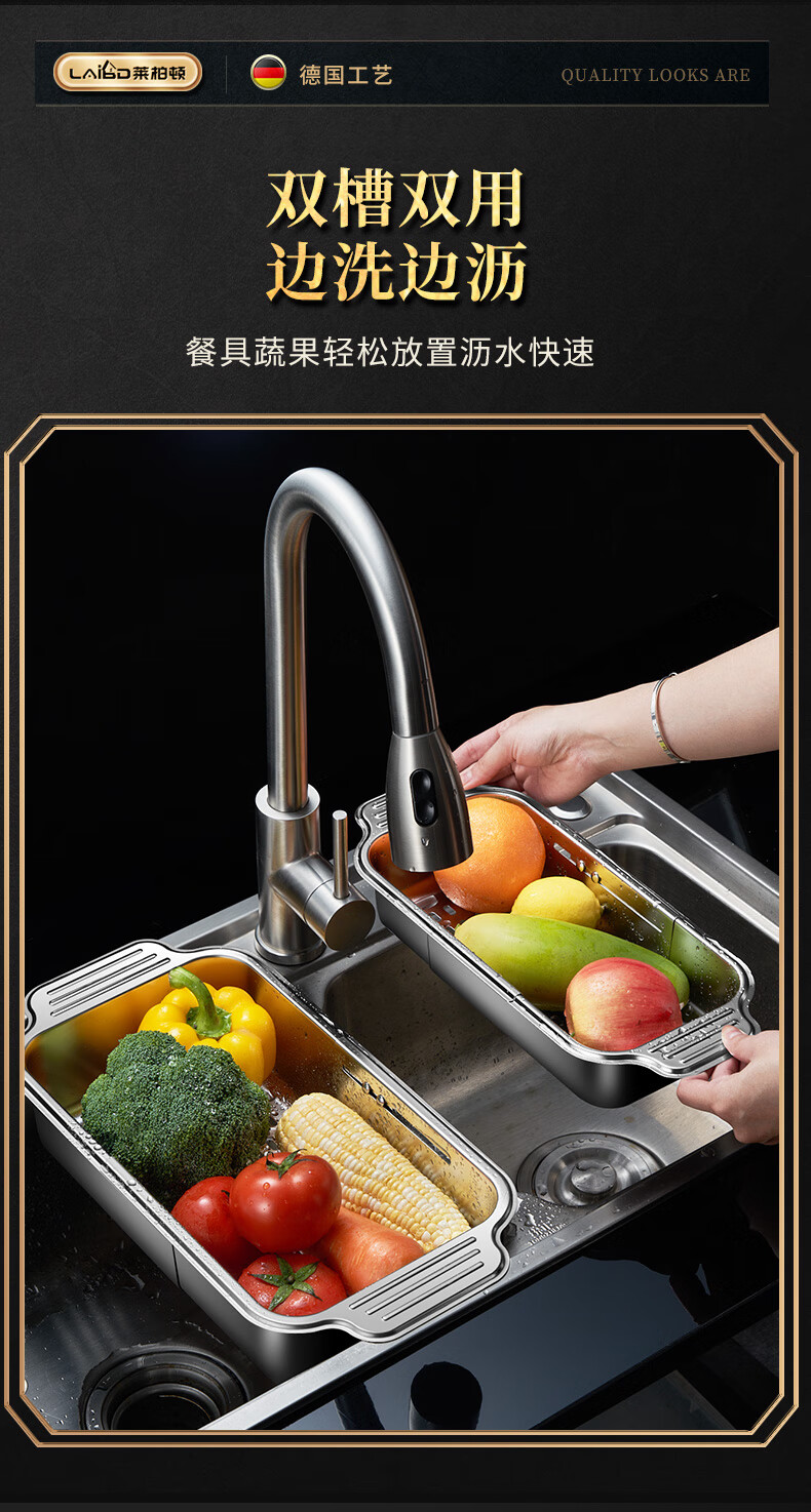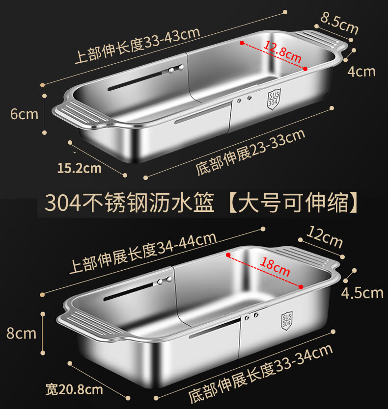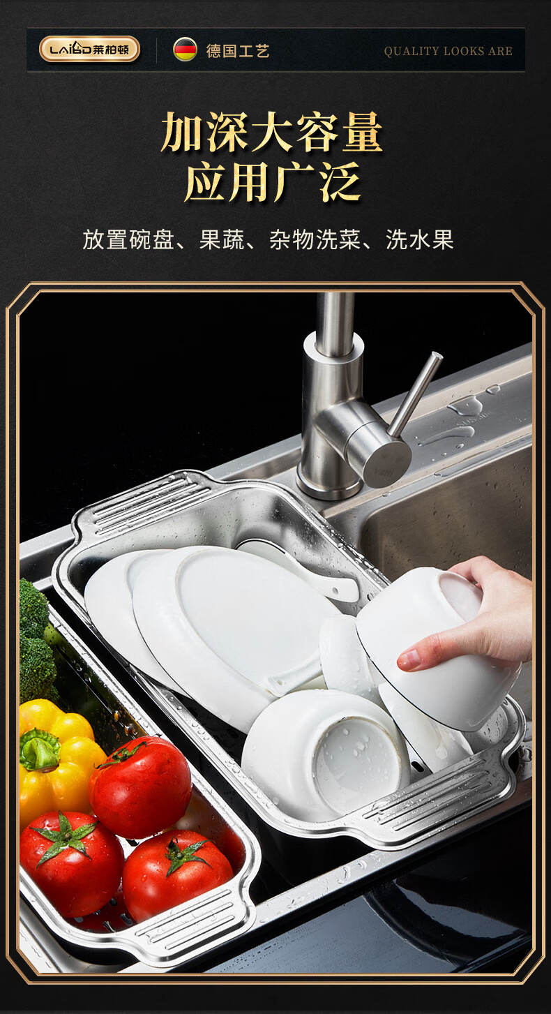 商品名称: 莱柏顿304不锈钢沥水篮厨房水槽水池过滤筐果蔬洗菜篮水果篮可伸缩大号 304水果篮沥水款-大号【可伸缩】/个
