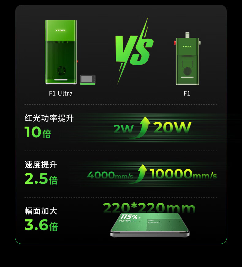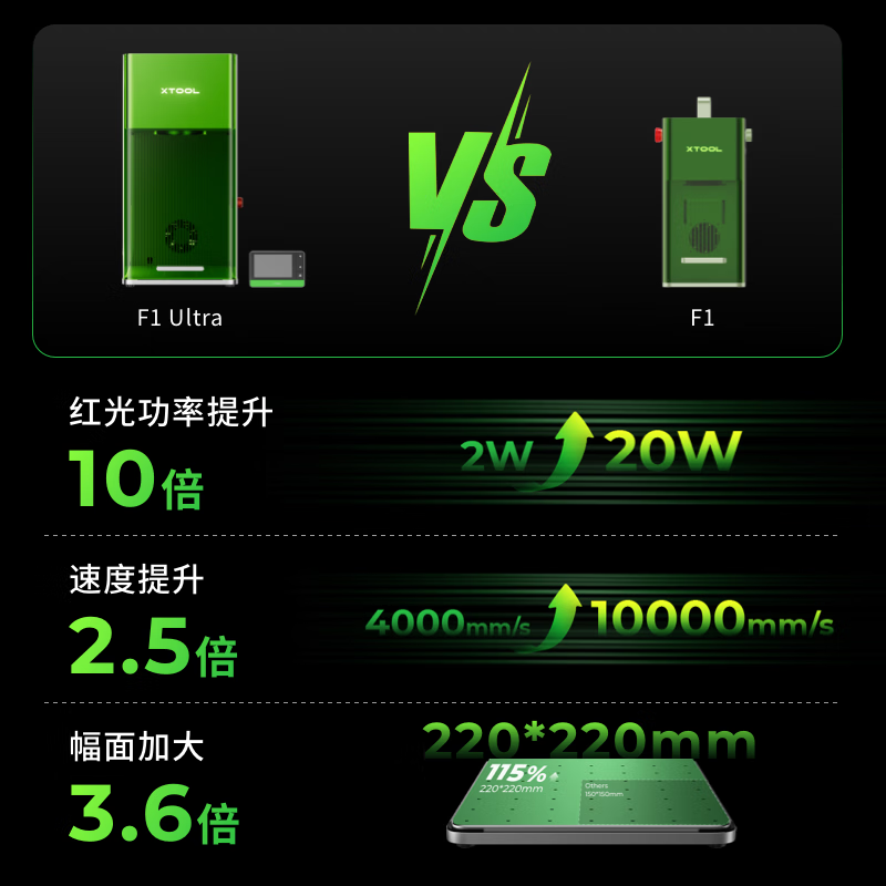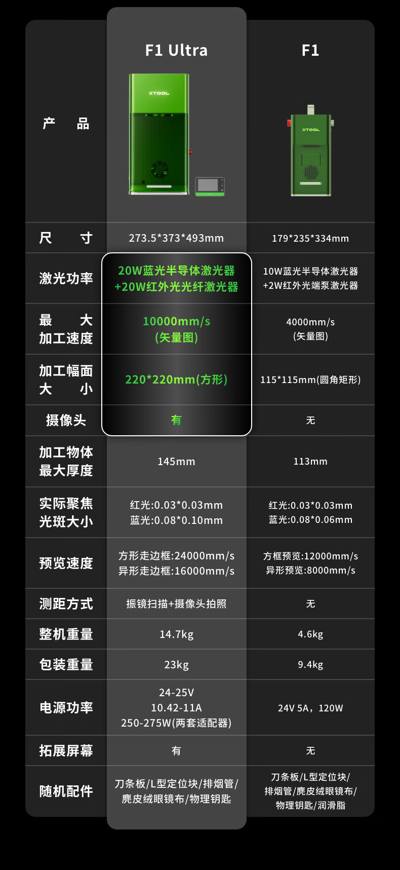 商品名称: XTOOLF1Ultra激光雕刻机双光源小型自动切割打印打标机 F1 Ultra/台