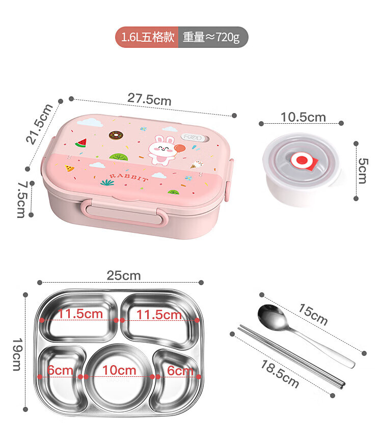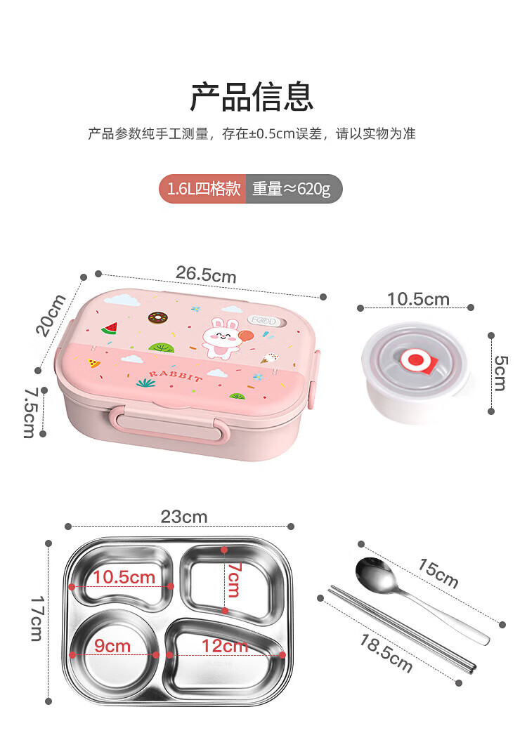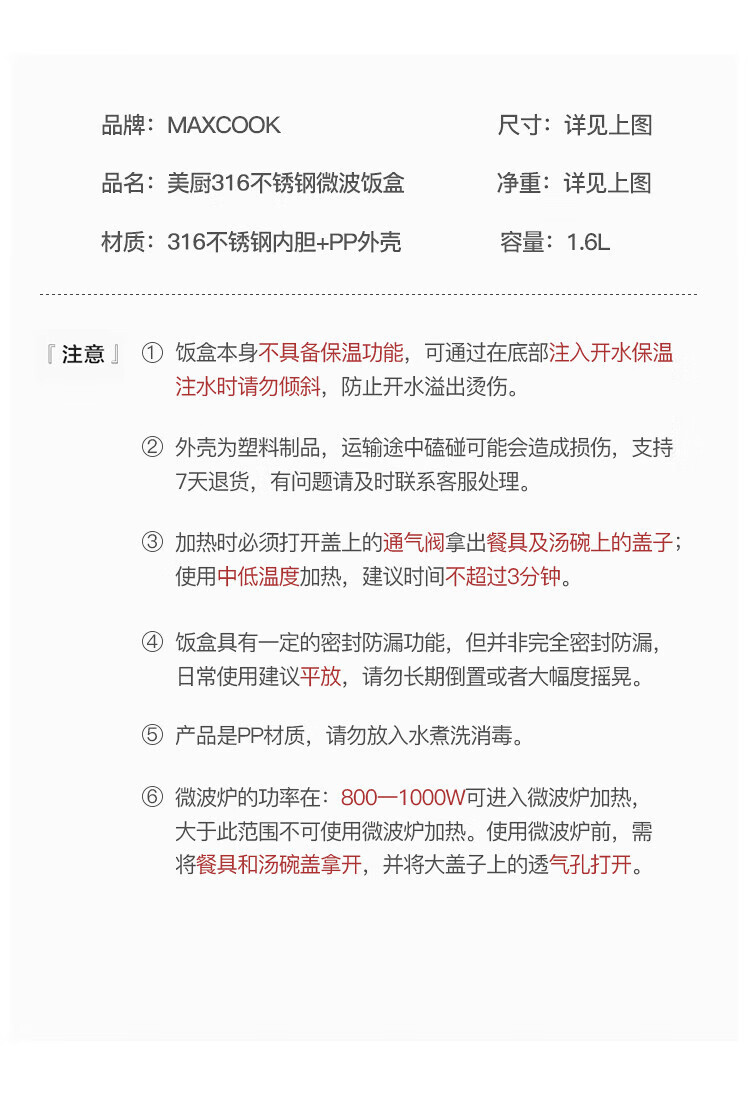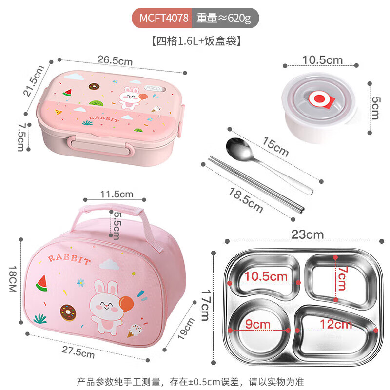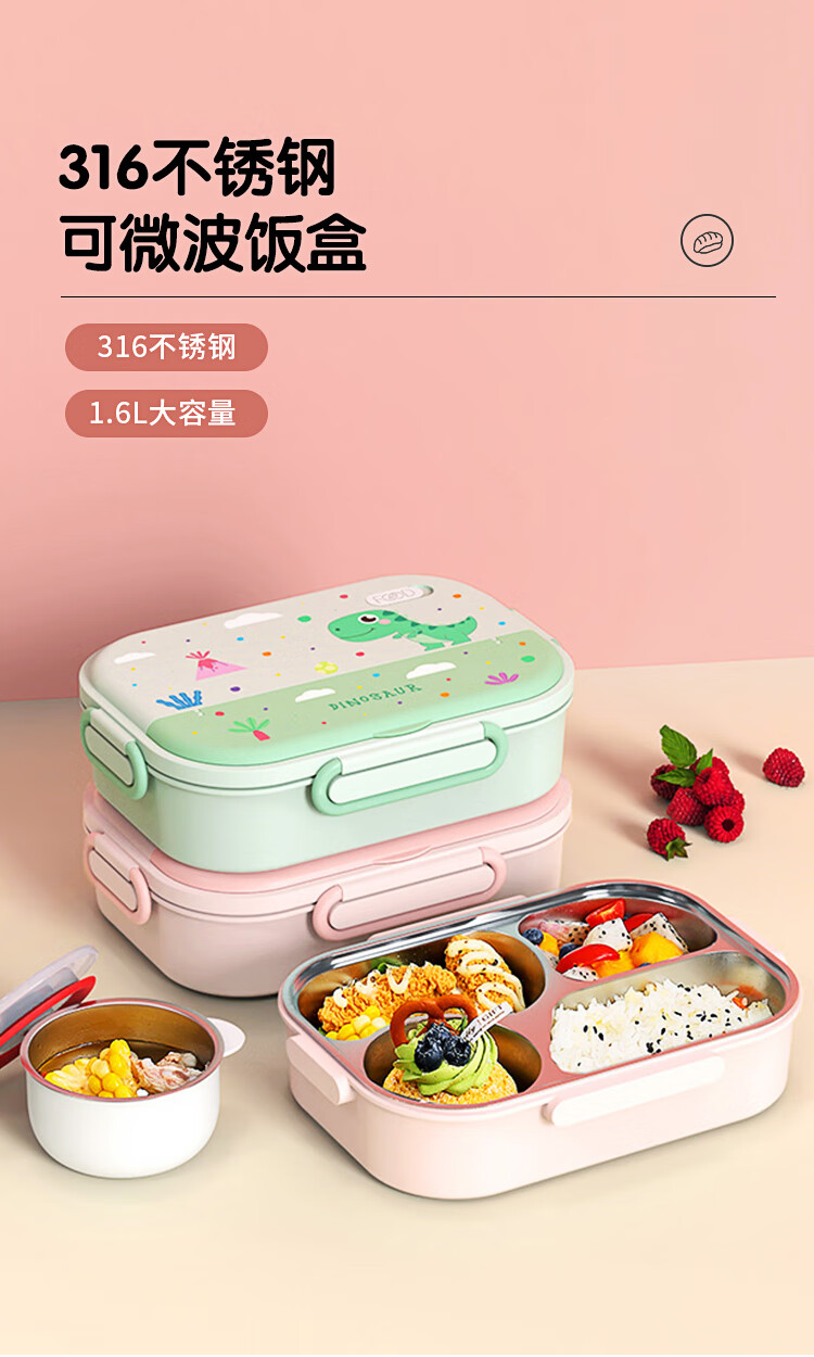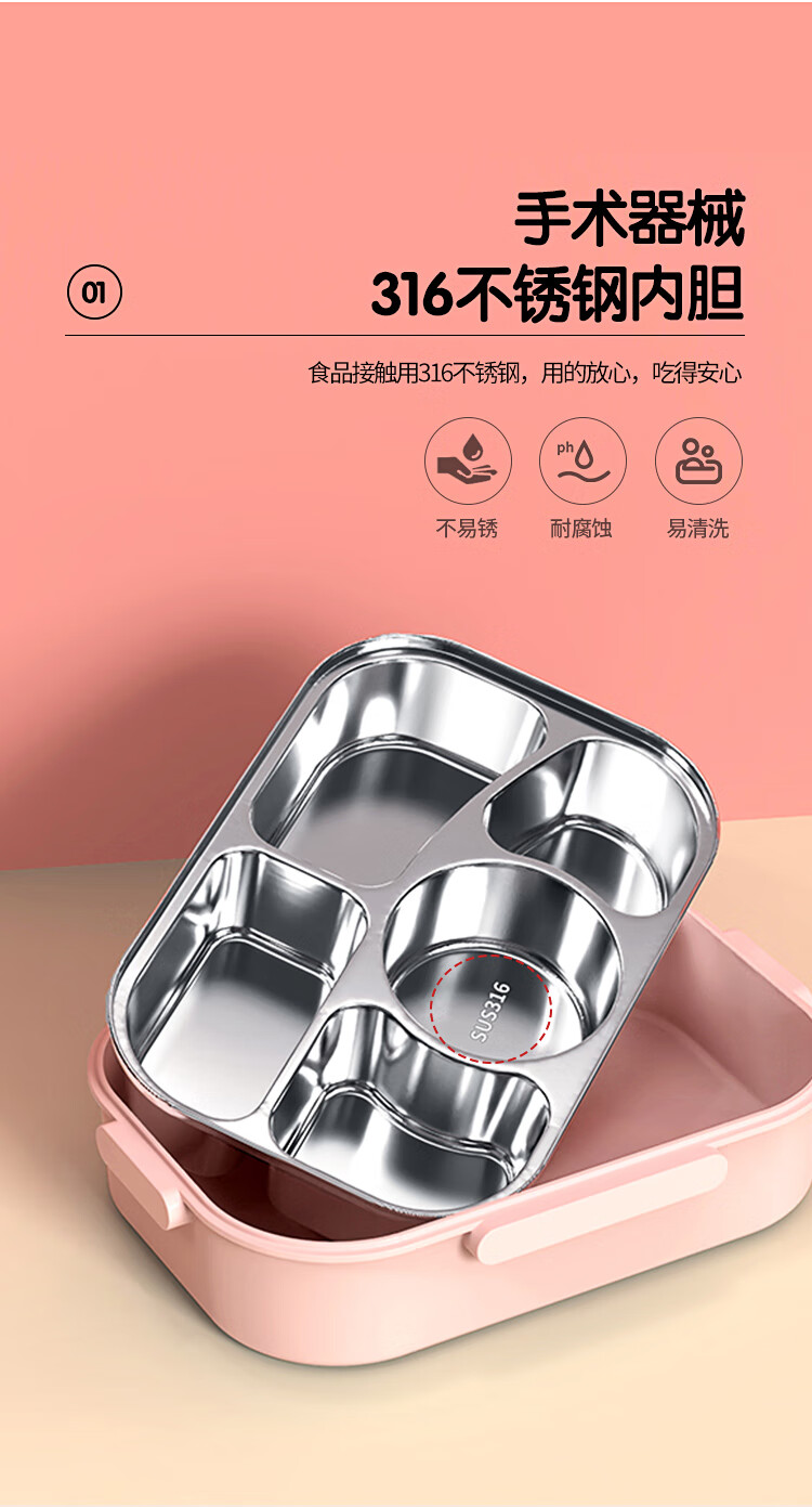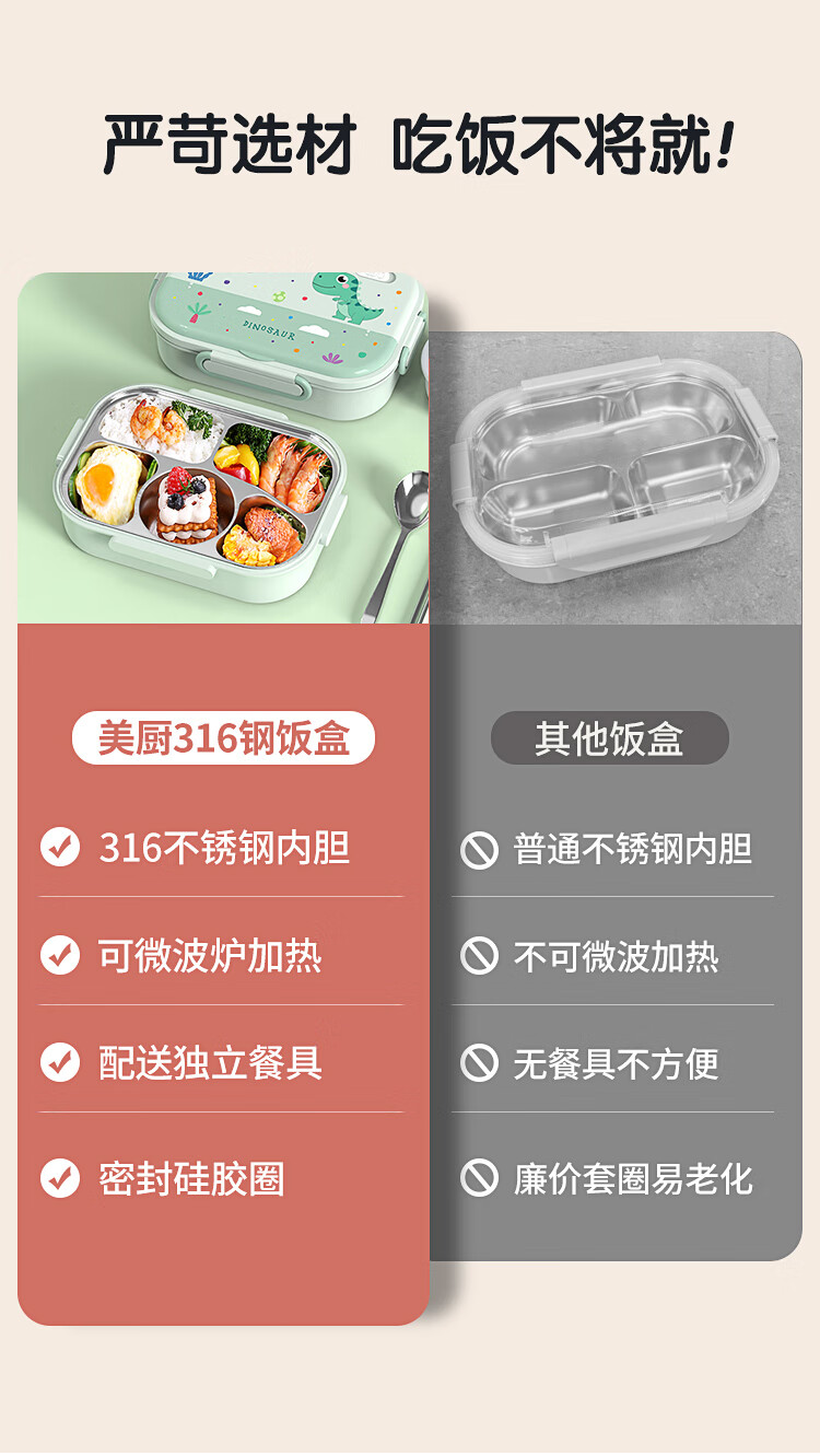 • 商品名称:美厨(maxcook)316不锈钢饭盒 微波炉饭盒4格保温学生饭盒 配餐具袋子粉MCFT4078 316不锈钢学生分格饭盒/个
