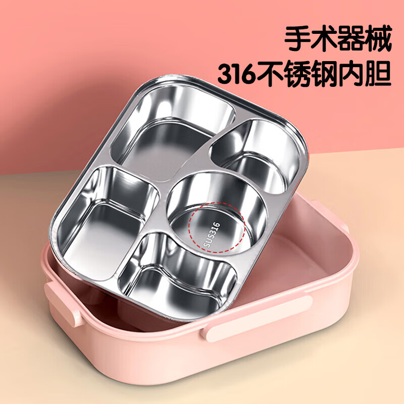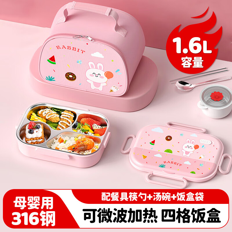 厨具  > 厨房储物  > 饭盒/提锅  >  美厨/maxcook  >  美厨(maxcook)316不锈钢饭盒 微波炉饭盒4格保温学生饭盒 配餐具袋子粉MCFT4078 316不锈钢学生分格饭盒/个
