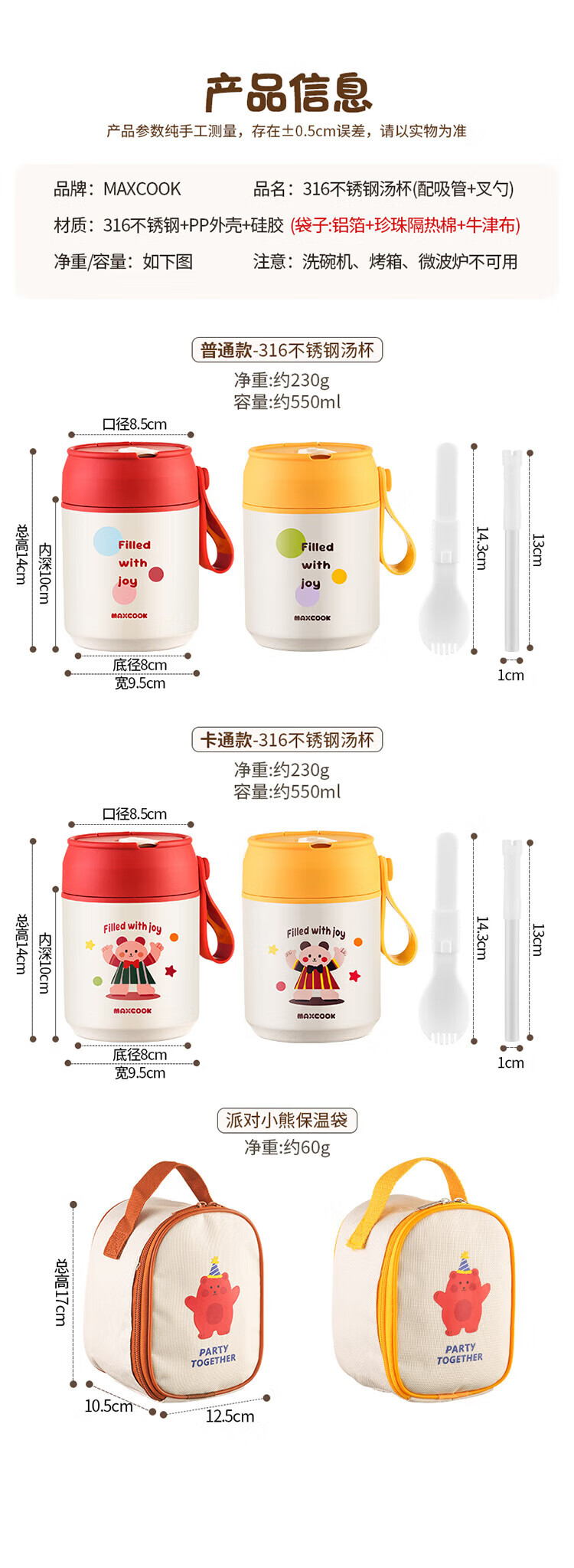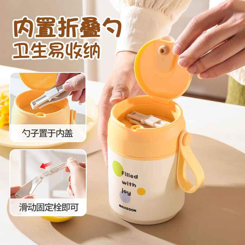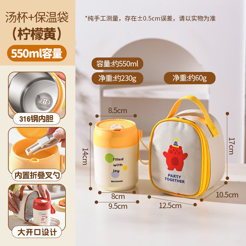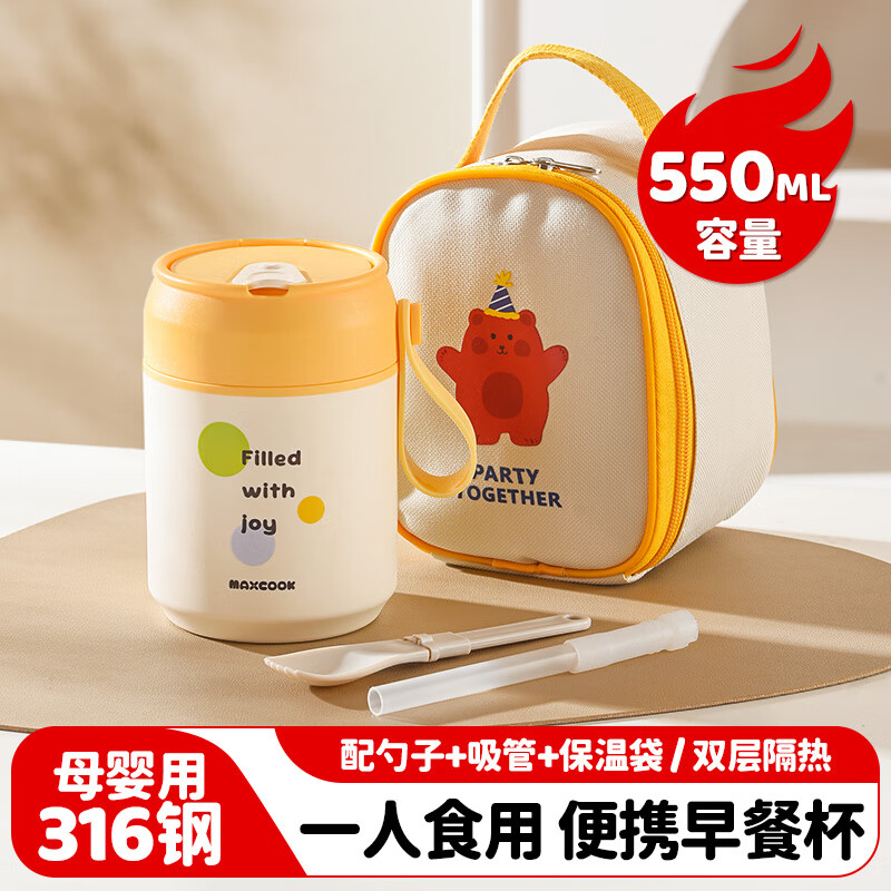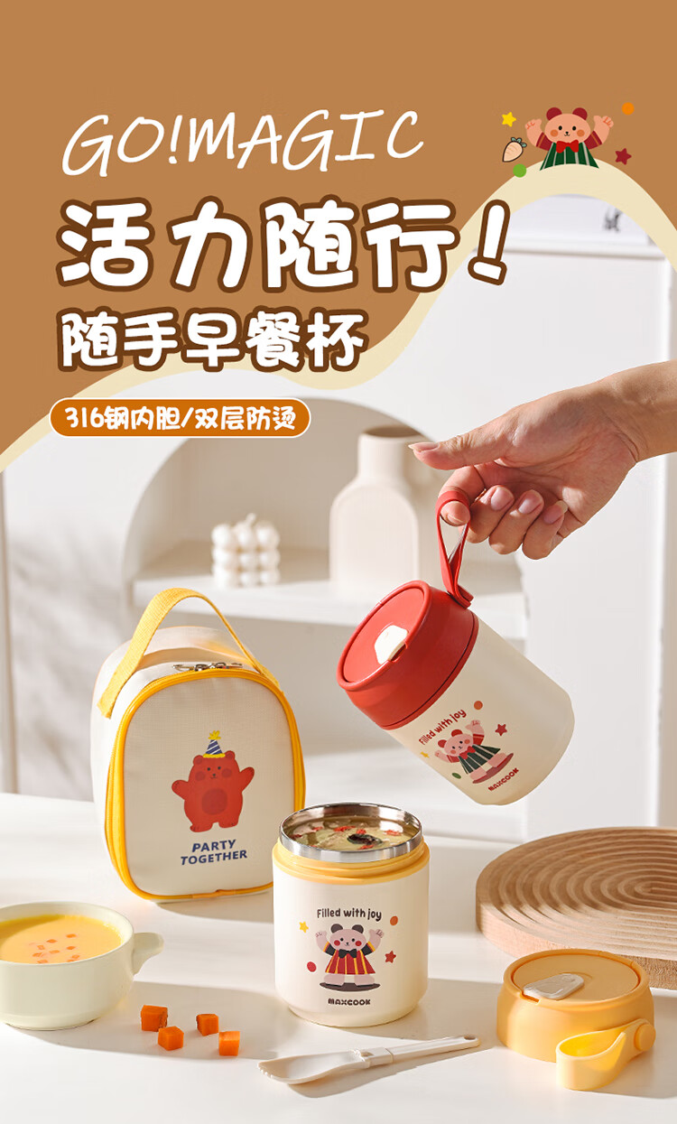 美厨(maxcook)汤杯汤罐早餐牛奶杯 便携316不锈钢保温水杯饭盒 配袋勺管MCB9781 316不锈钢汤杯汤罐/个