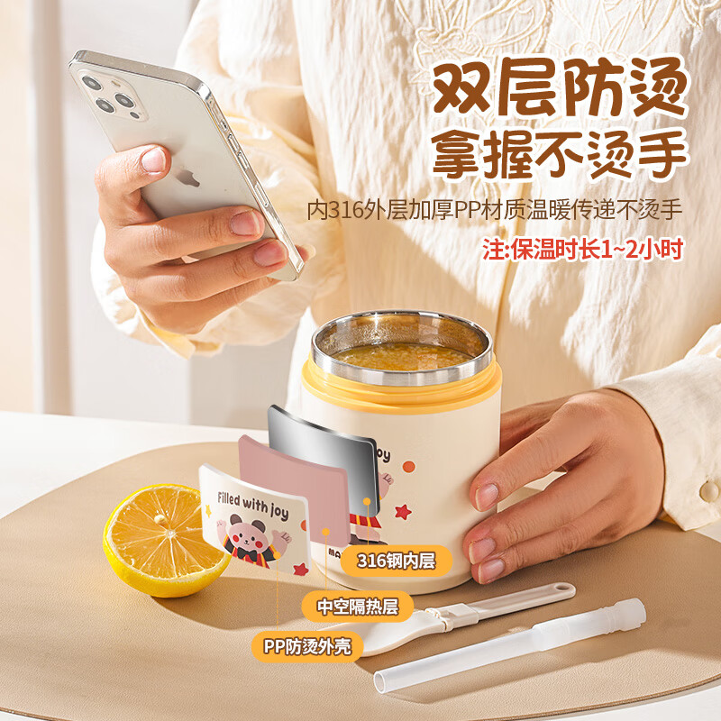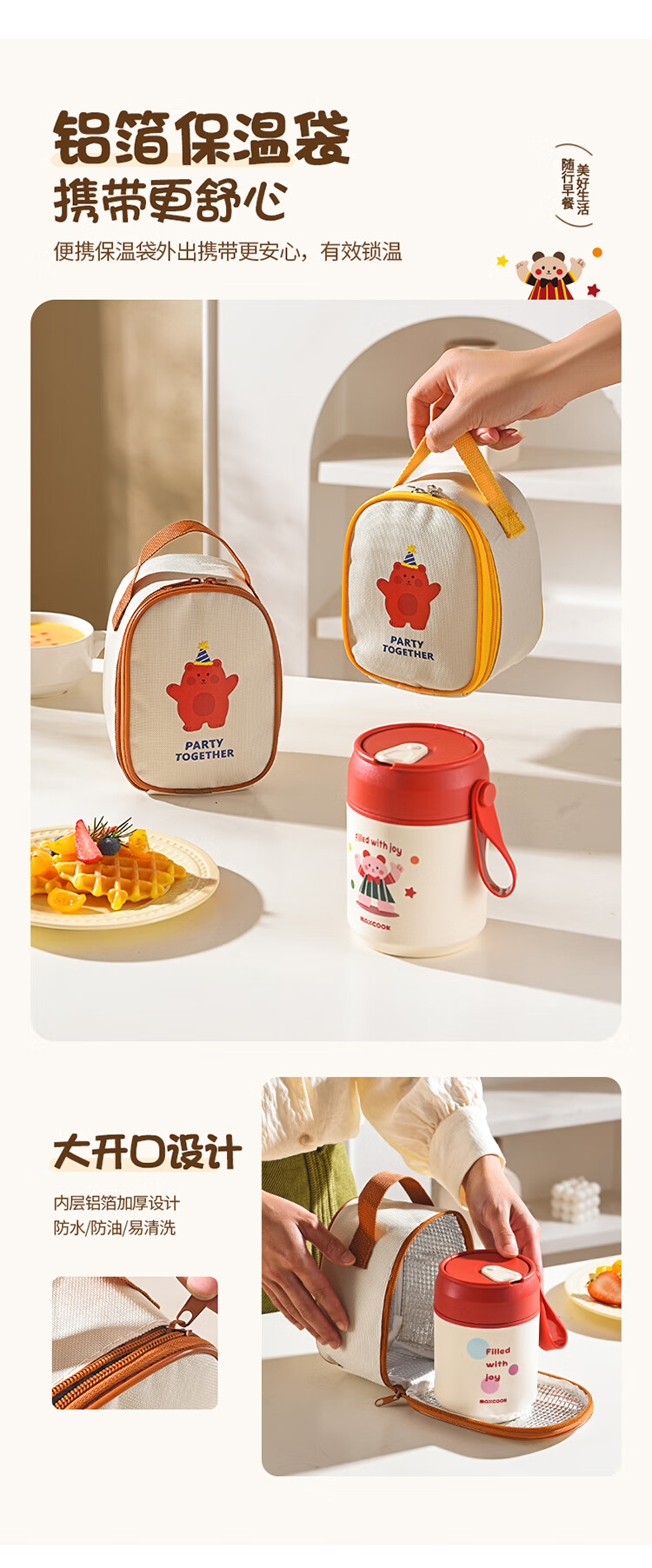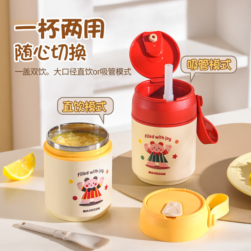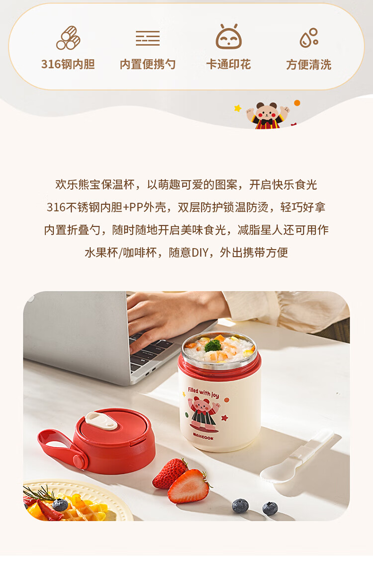 美厨(maxcook)汤杯汤罐早餐牛奶杯 便携316不锈钢保温水杯饭盒 配袋勺管MCB9781 316不锈钢汤杯汤罐/个
