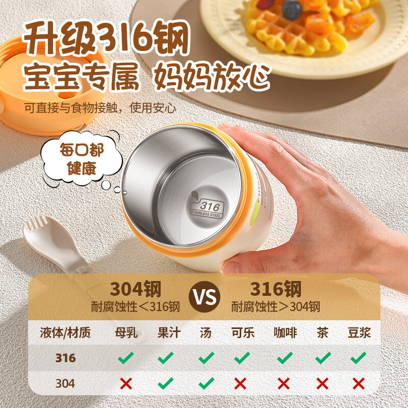 厨具  > 厨房储物  > 饭盒/提锅  >  美厨/maxcook  >  美厨(maxcook)汤杯汤罐早餐牛奶杯 便携316不锈钢保温水杯饭盒 配袋勺管MCB9781 316不锈钢汤杯汤罐/个