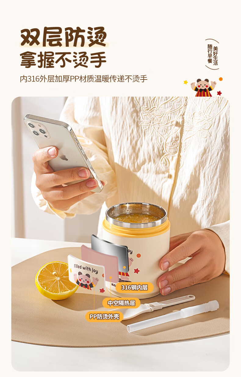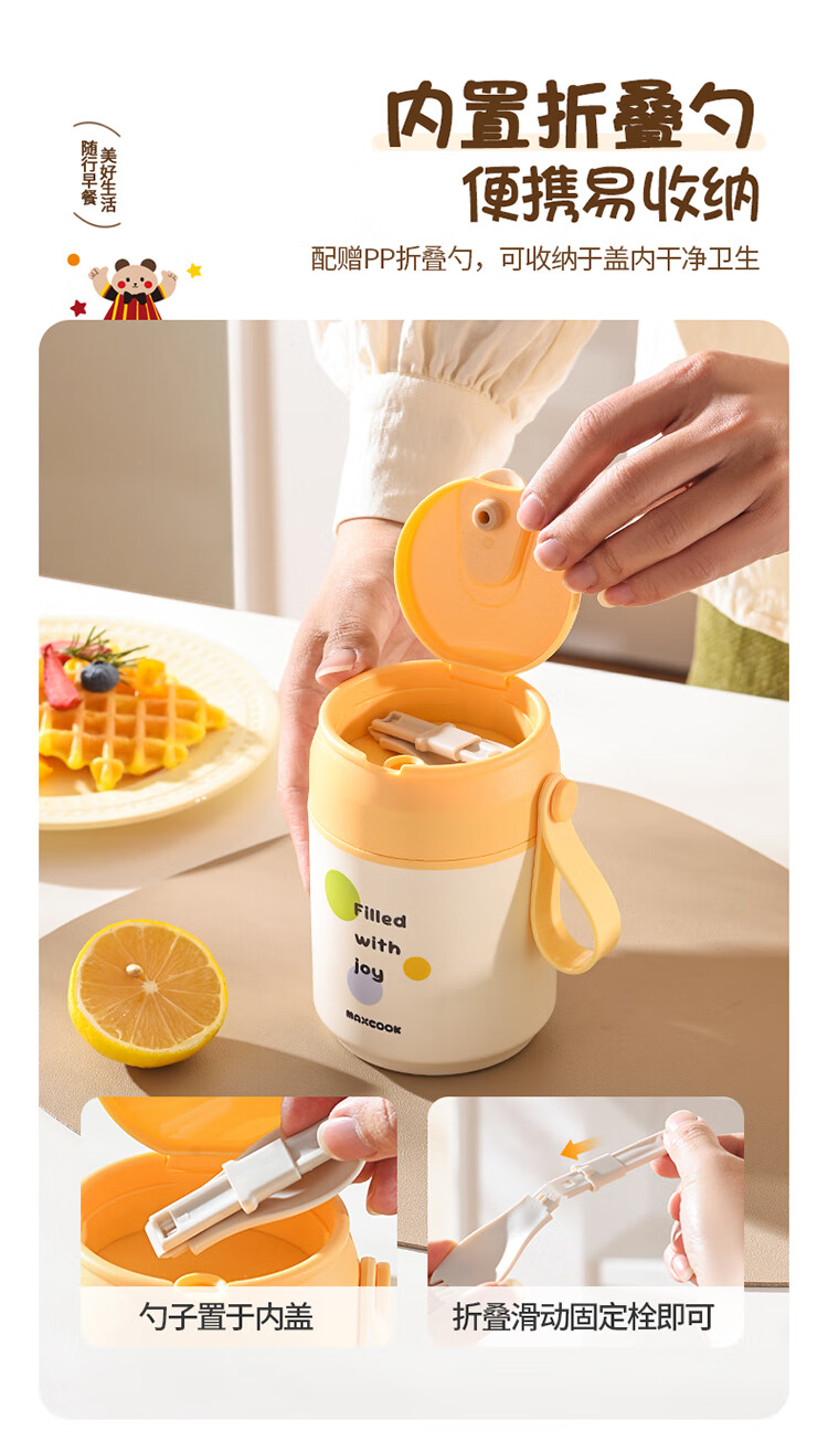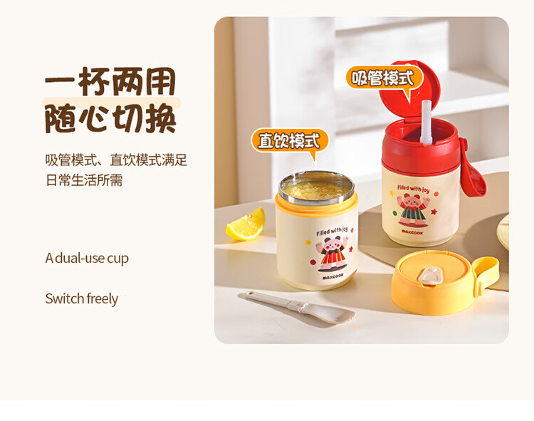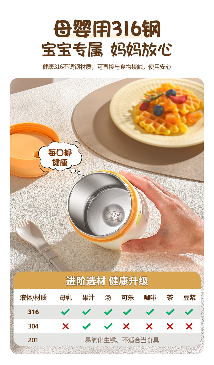 • 商品名称:美厨(maxcook)汤杯汤罐早餐牛奶杯 便携316不锈钢保温水杯饭盒 配袋勺管MCB9781 316不锈钢汤杯汤罐/个