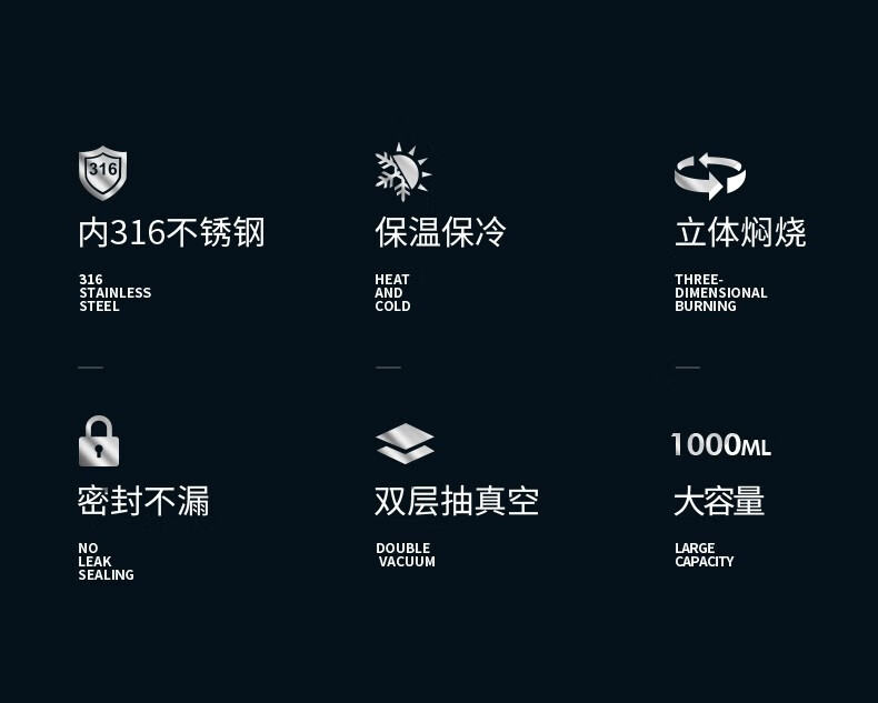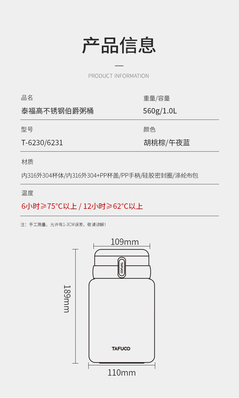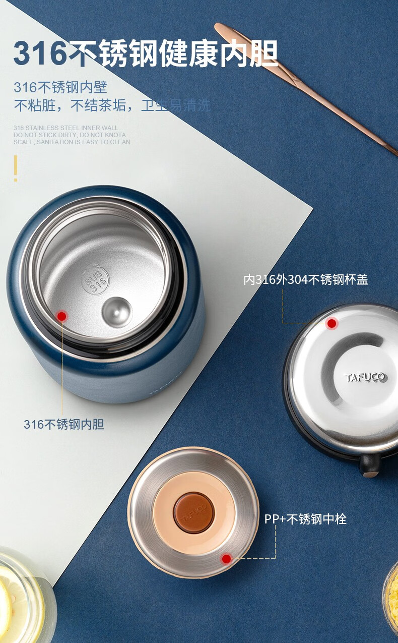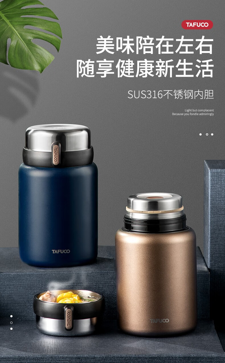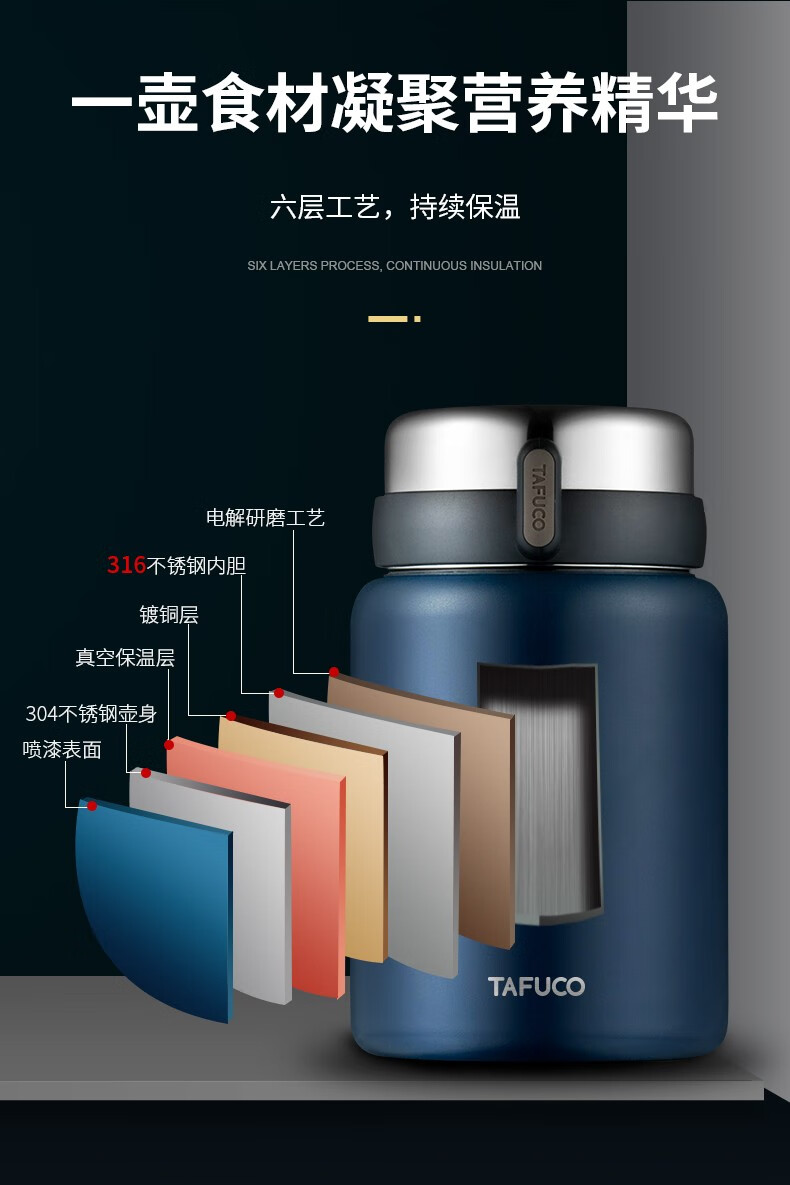 • 商品名称:泰福高(TAFUCO)316不锈钢焖烧杯真空焖烧罐大容量餐盒 T6231-午夜蓝-1000ml 商用 T6231/套