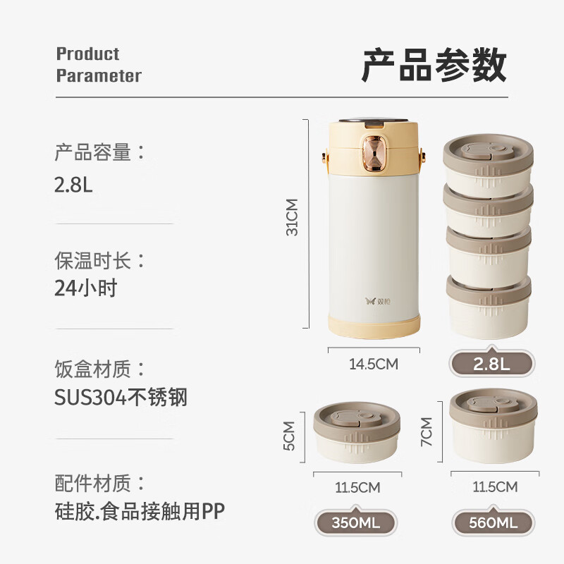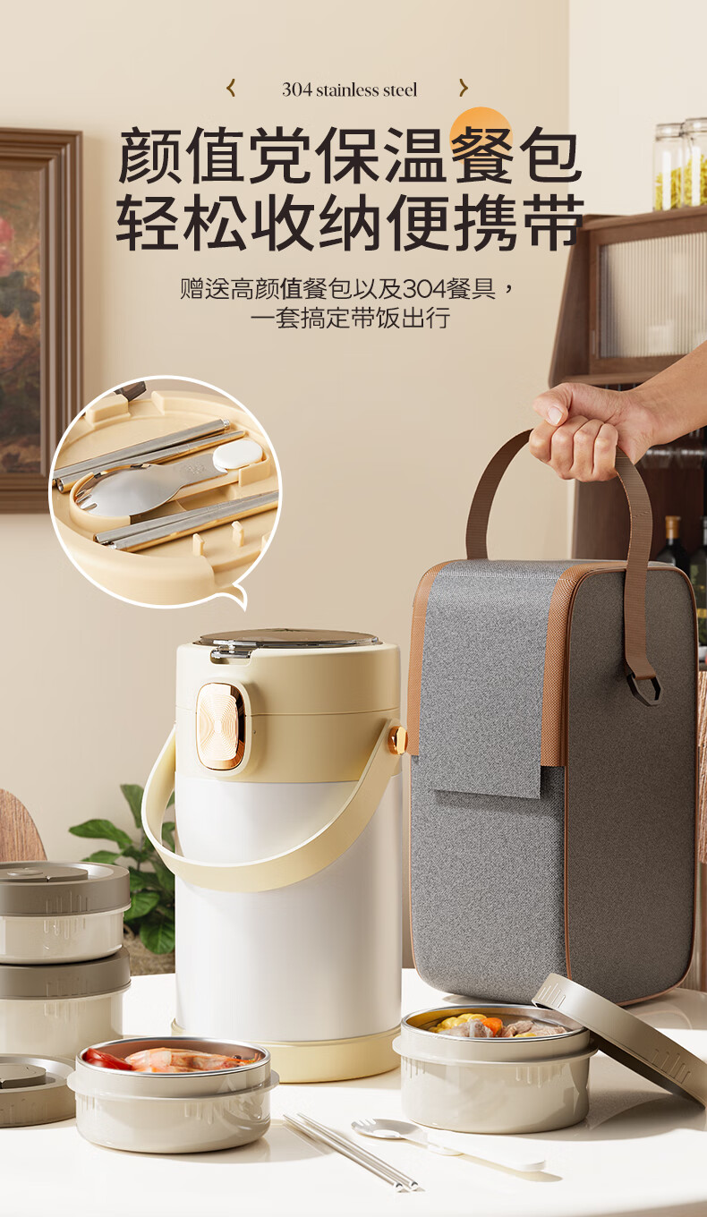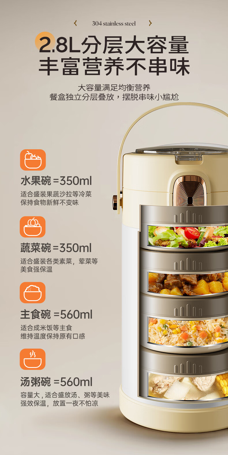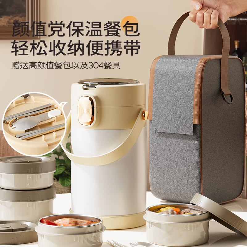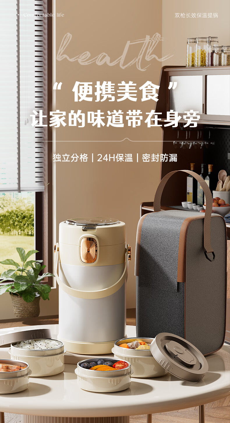 厨具  > 厨房储物  > 饭盒/提锅  >  双枪/Suncha  >  双枪(Suncha)保温饭盒24小时超长保温桶上班提锅304钢大容量2.8L四层 DP80961/个