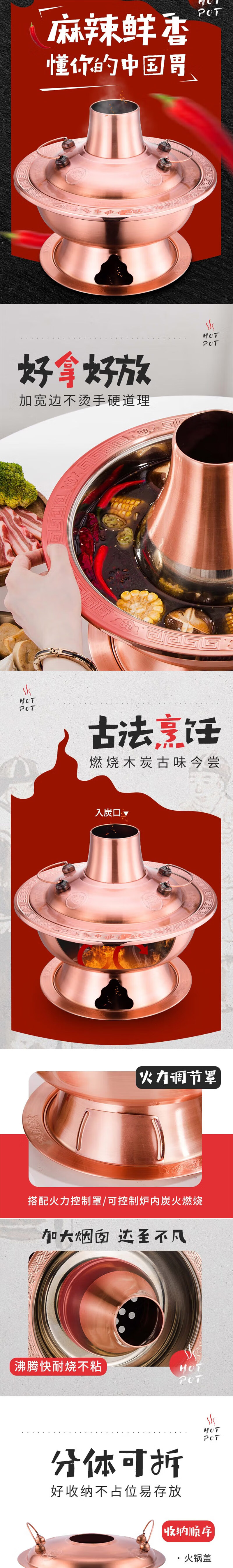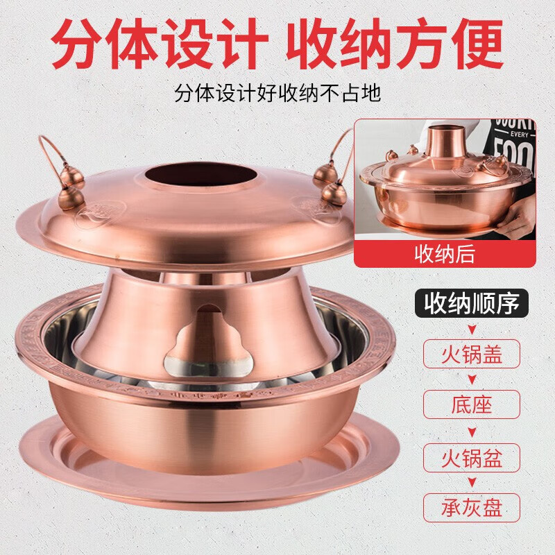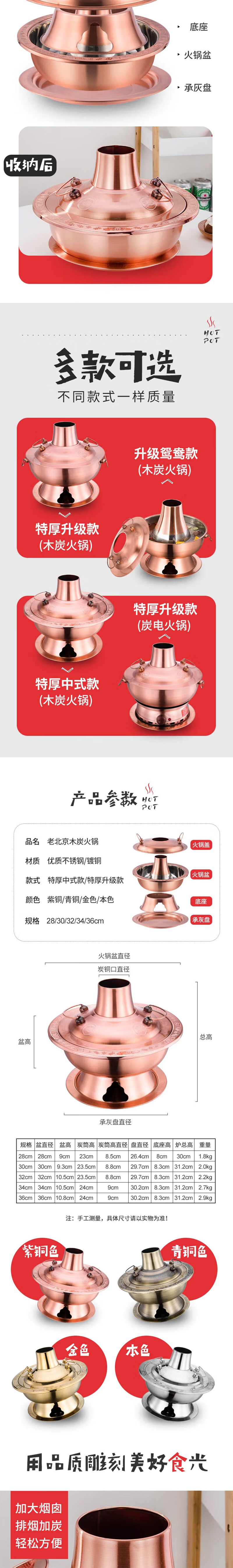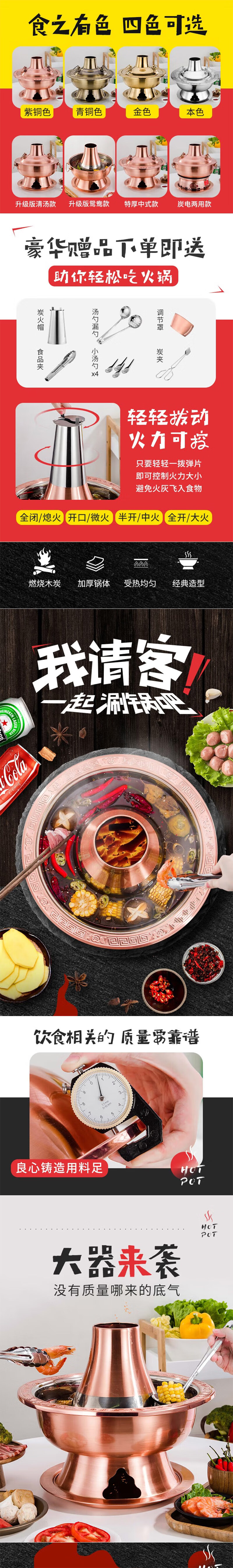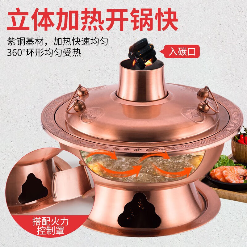 • 商品名称:楚戎加厚仿铜传统火锅 36cm本色木炭火锅(特厚清汤款)适合8-12人 木炭火锅/个