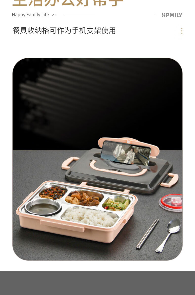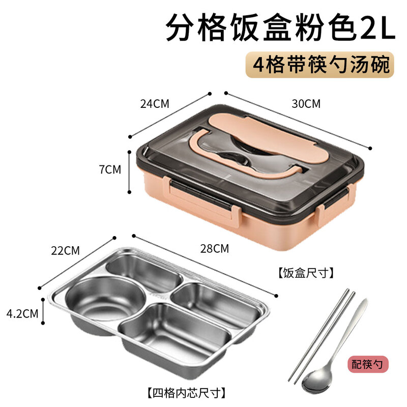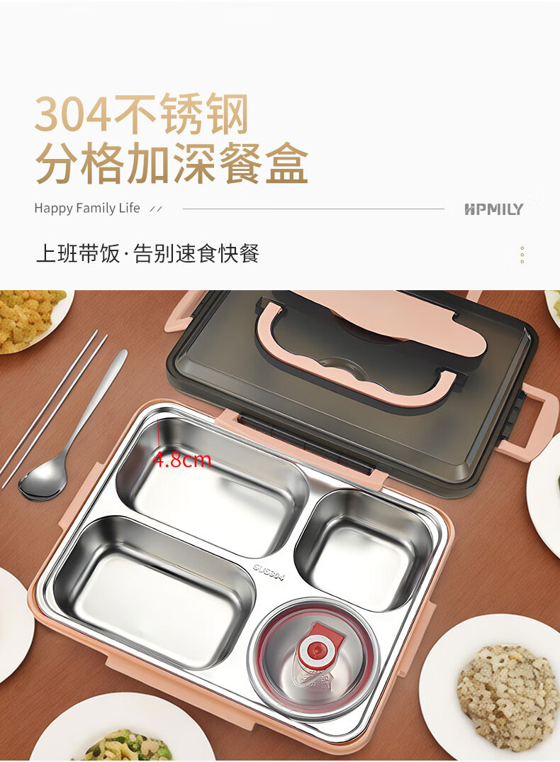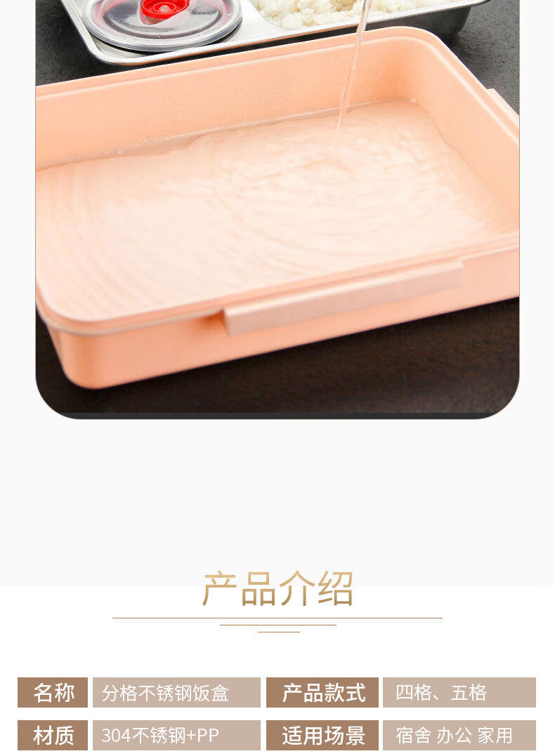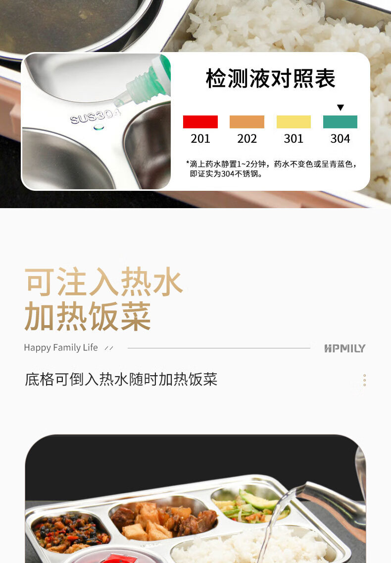 • 商品名称:助家乐(HPMILY)学生饭盒304不锈钢快餐盘大容量加深食堂打饭分格学生餐盒四分格 Y0425-餐盒粉色-四格/个