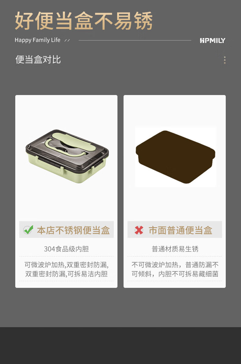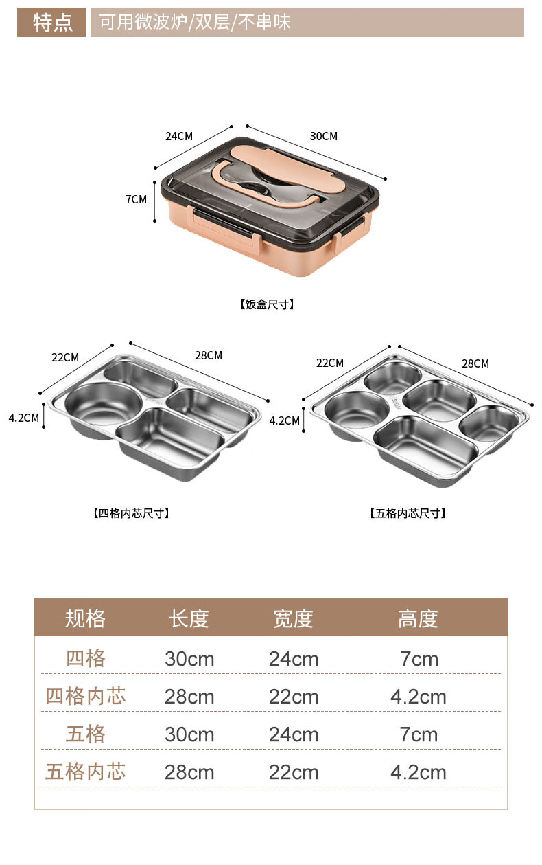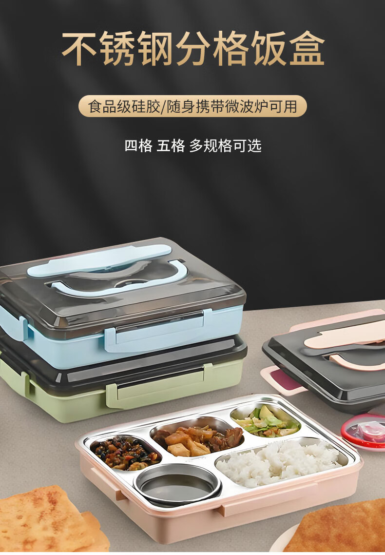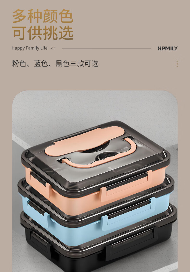 • 商品名称:助家乐(HPMILY)学生饭盒304不锈钢快餐盘大容量加深食堂打饭分格学生餐盒四分格 Y0425-餐盒粉色-四格/个