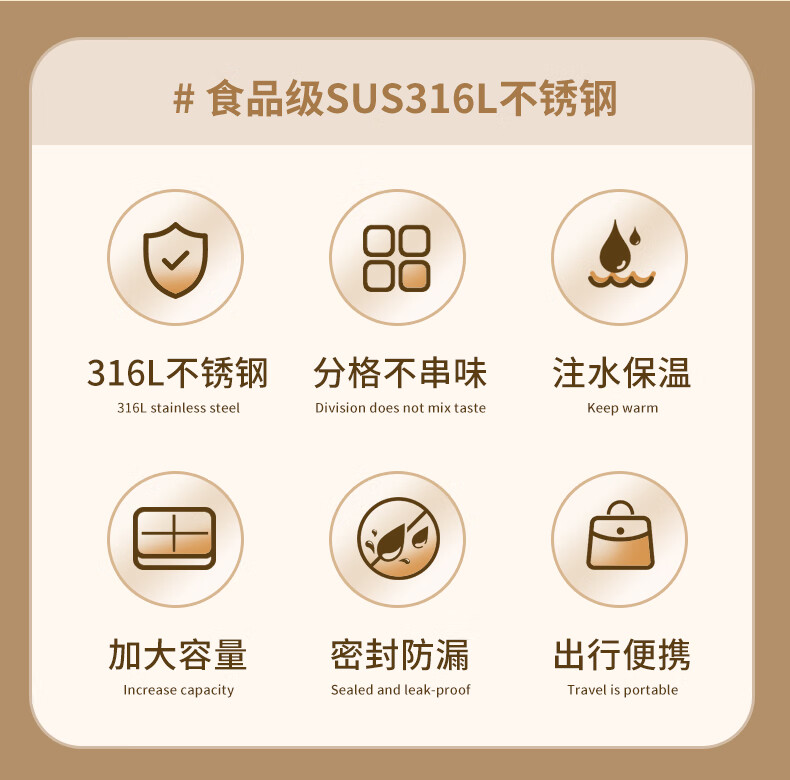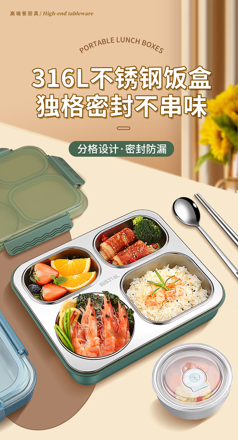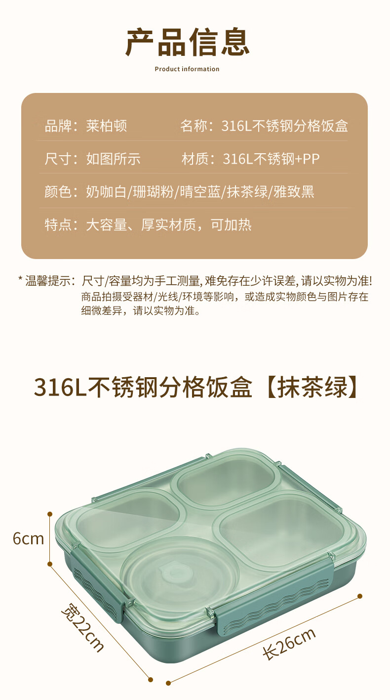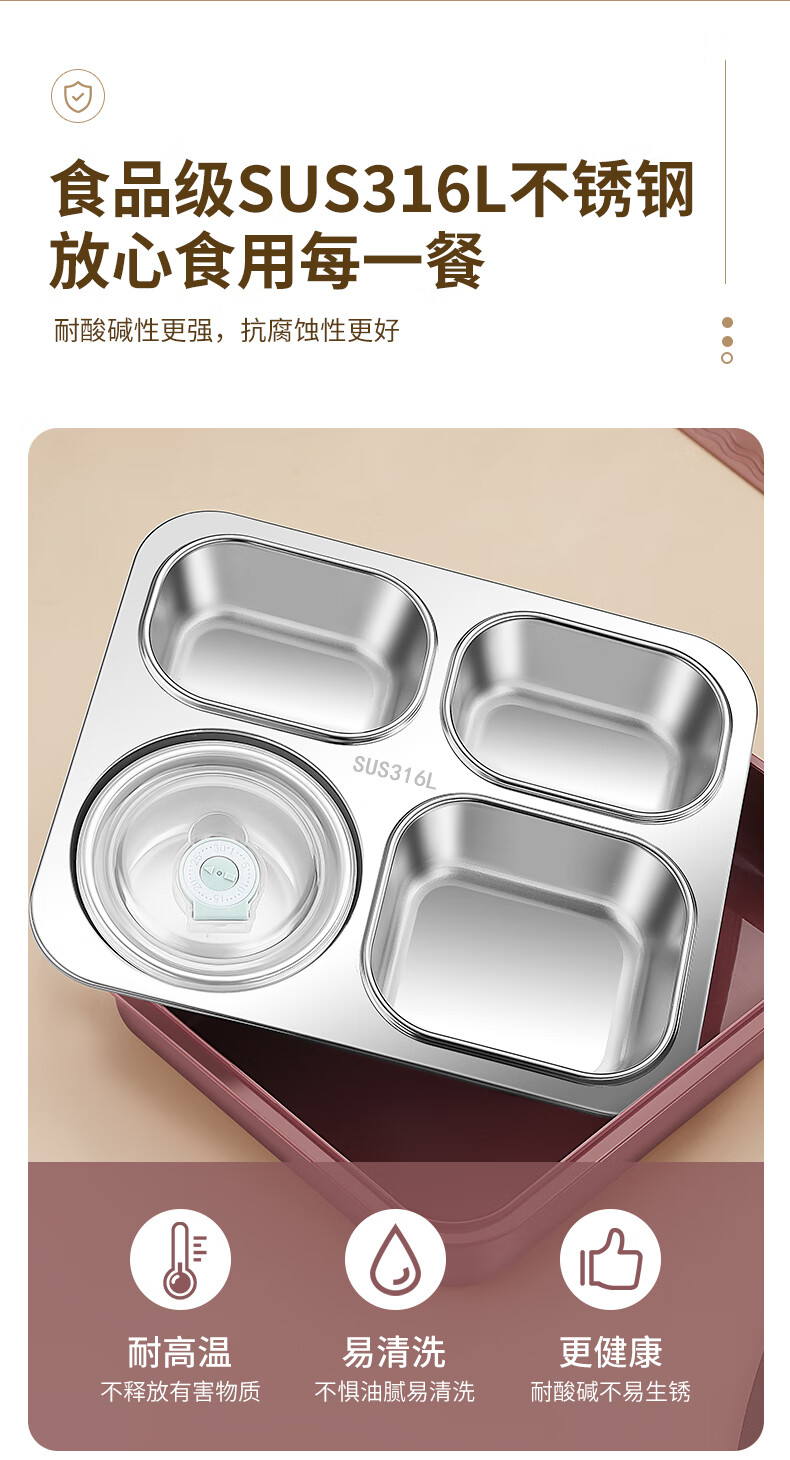 • 商品名称:莱柏顿316L不锈钢饭盒学生餐盒密封保温餐盒上班族分格便当盒定制logo 316L饭盒-粉/盒