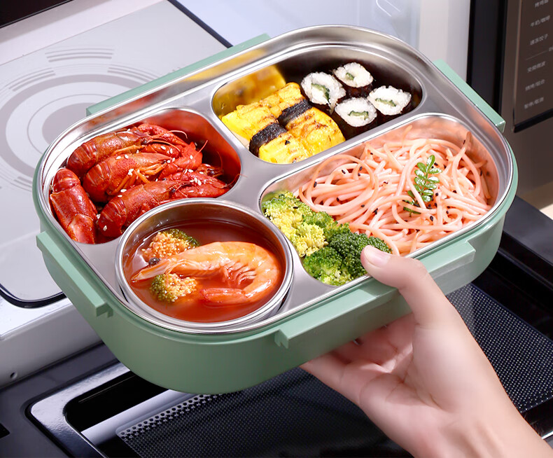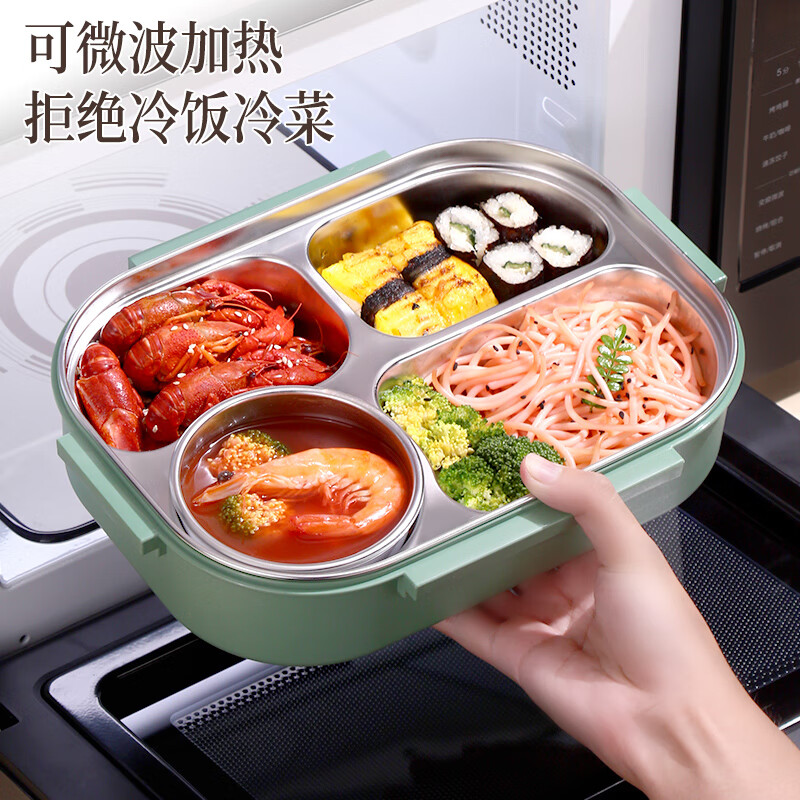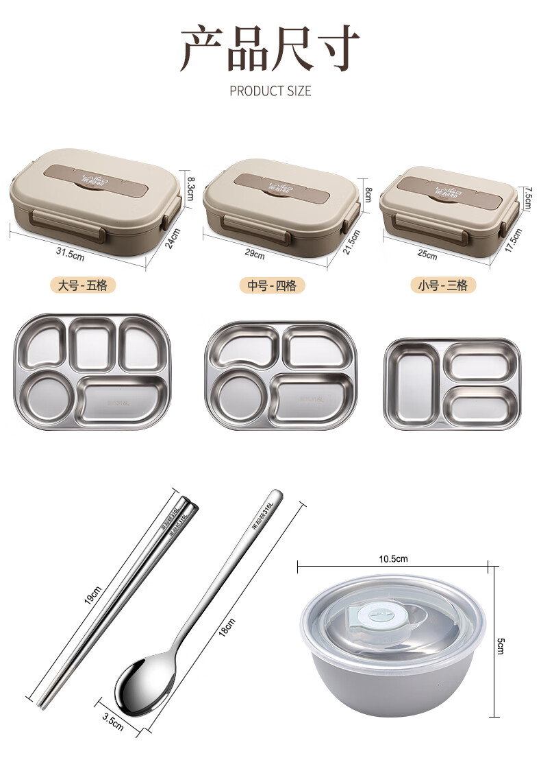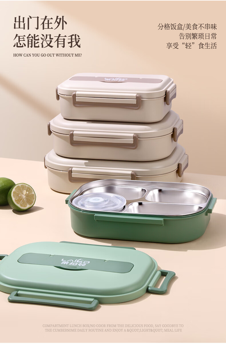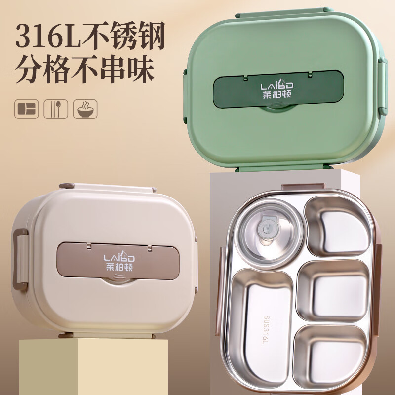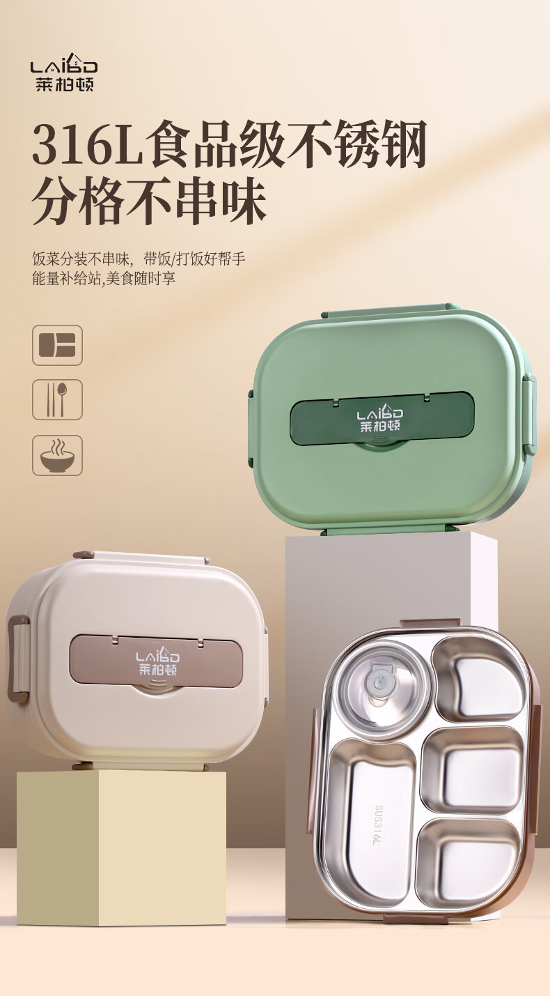 • 商品名称:莱柏顿316L不锈钢饭盒上班族可微波炉加热便当盒学生餐盘分格餐盒小号1L 饭盒小号3格/套