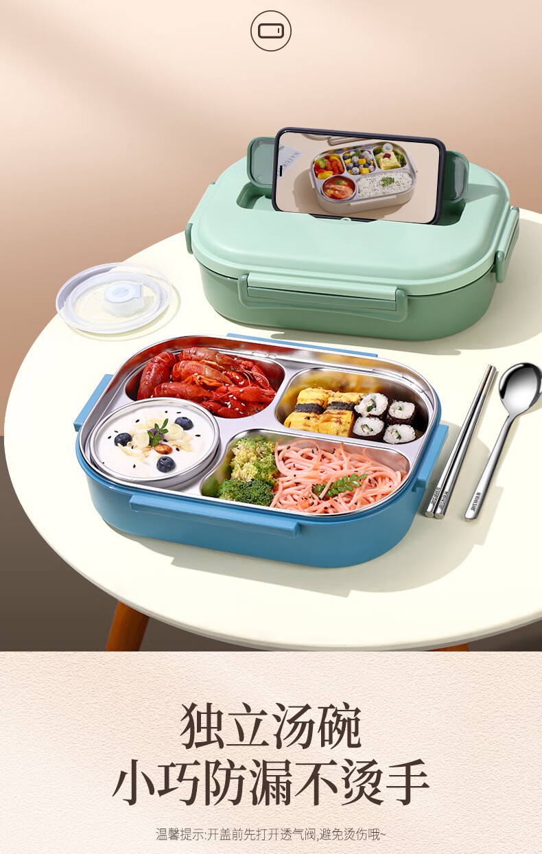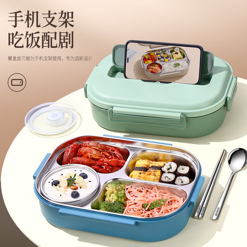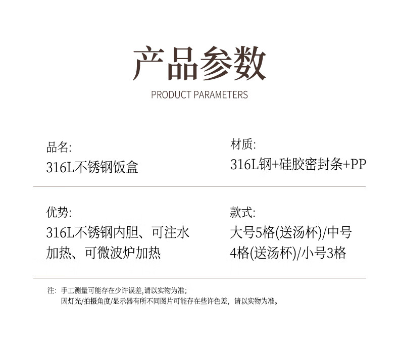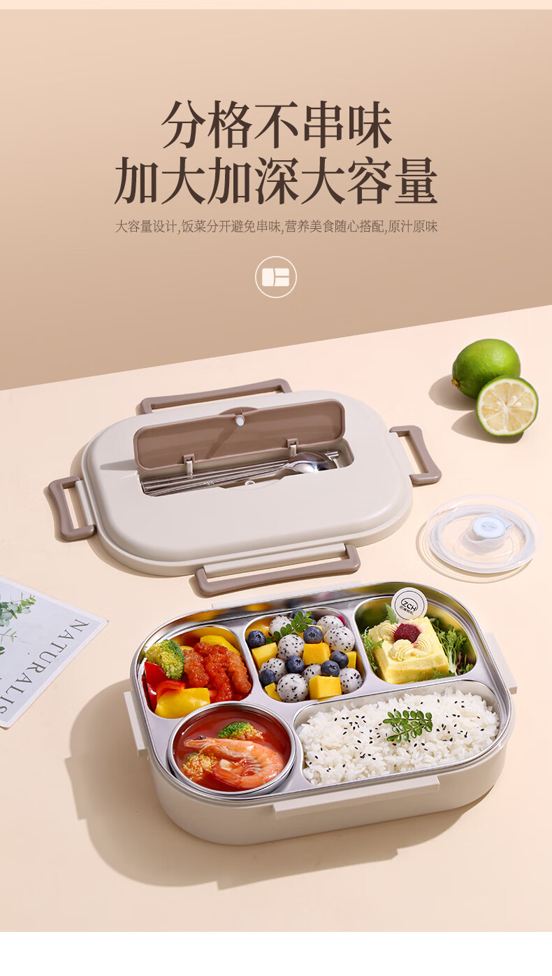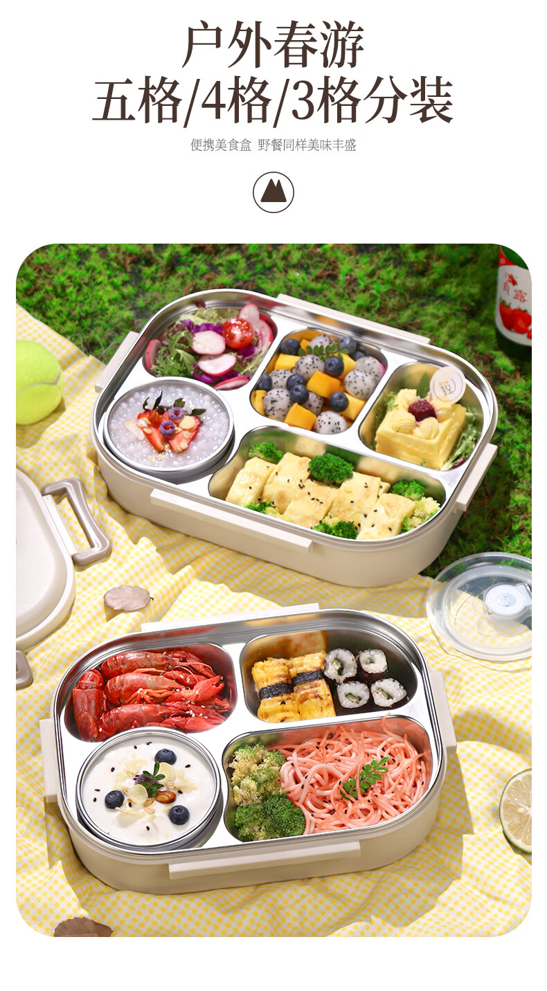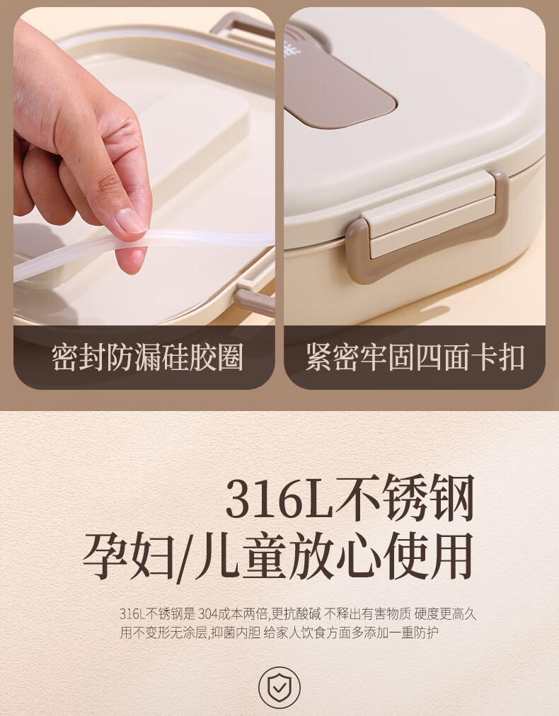 • 商品名称:莱柏顿316L不锈钢饭盒上班族可微波炉加热便当盒学生餐盘分格餐盒小号1L 饭盒小号3格/套