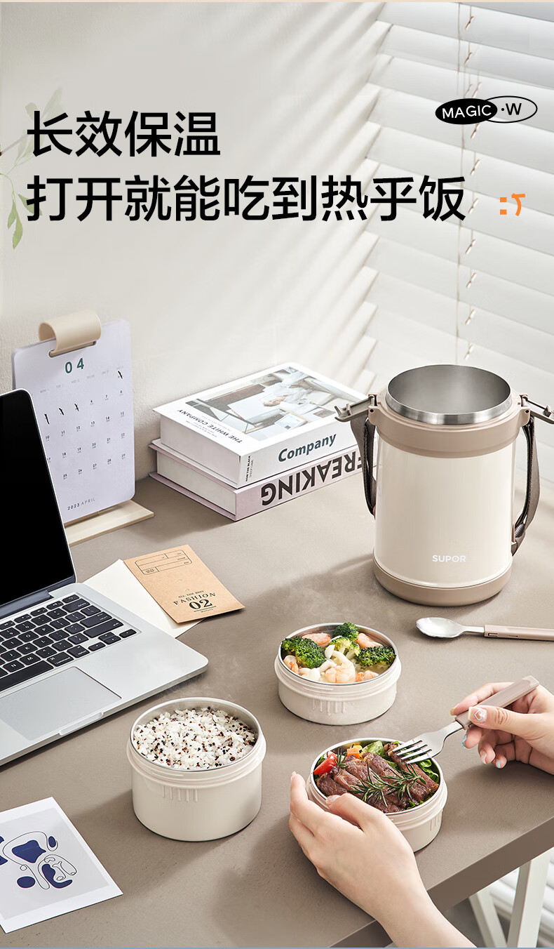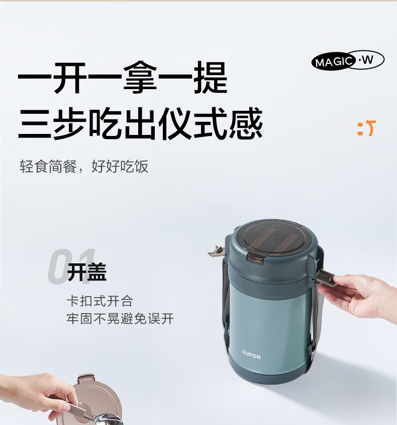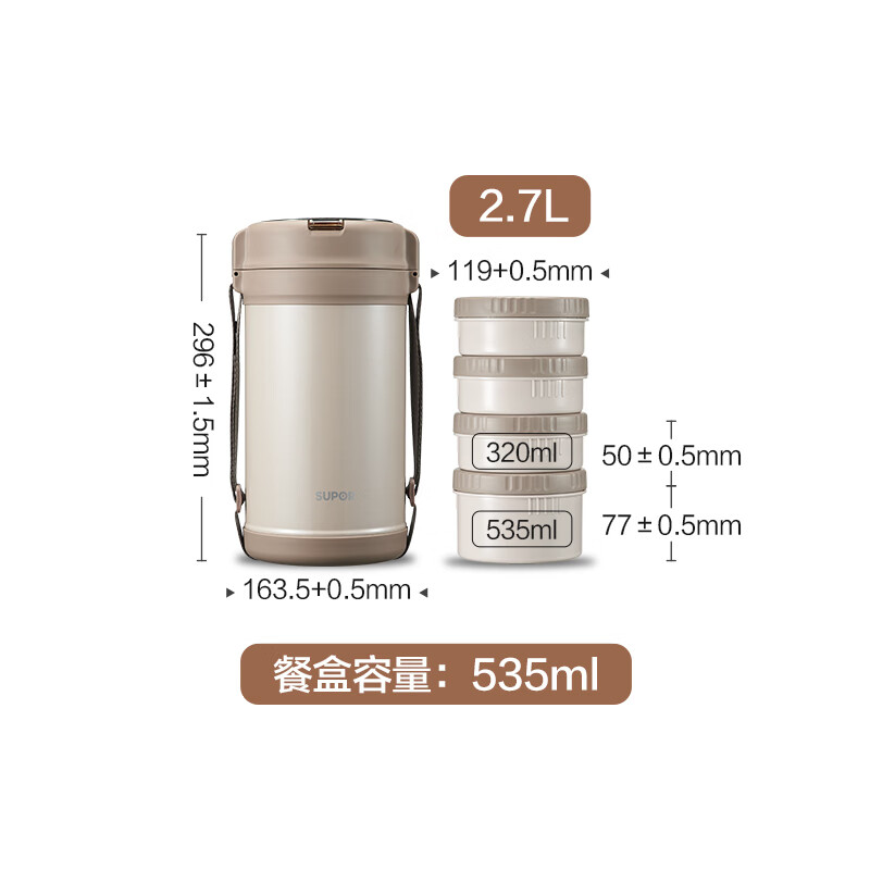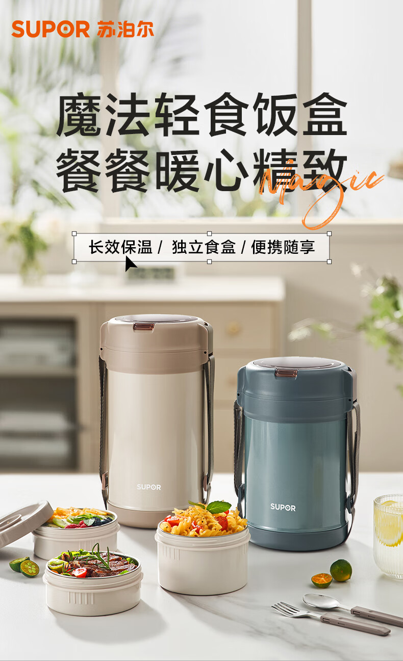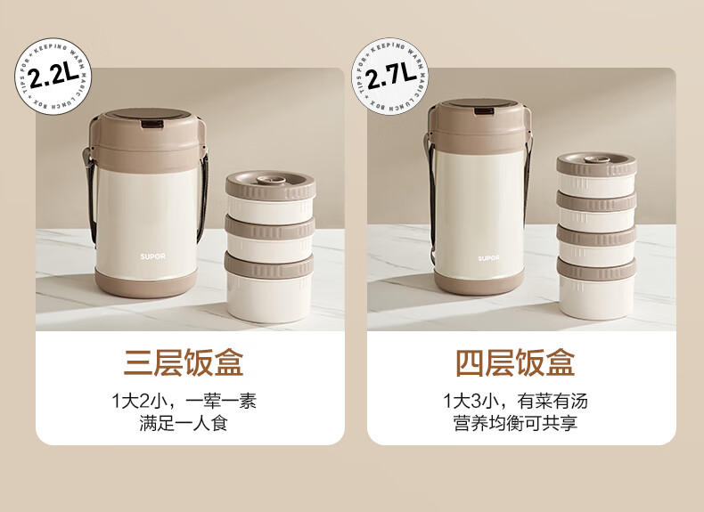 • 商品名称:苏泊尔(SUPOR)大容量保温饭盒桶提锅不锈钢学生便当餐盒2.7L沉香褐KFV27AB10 KFV27AB10/个