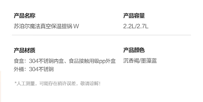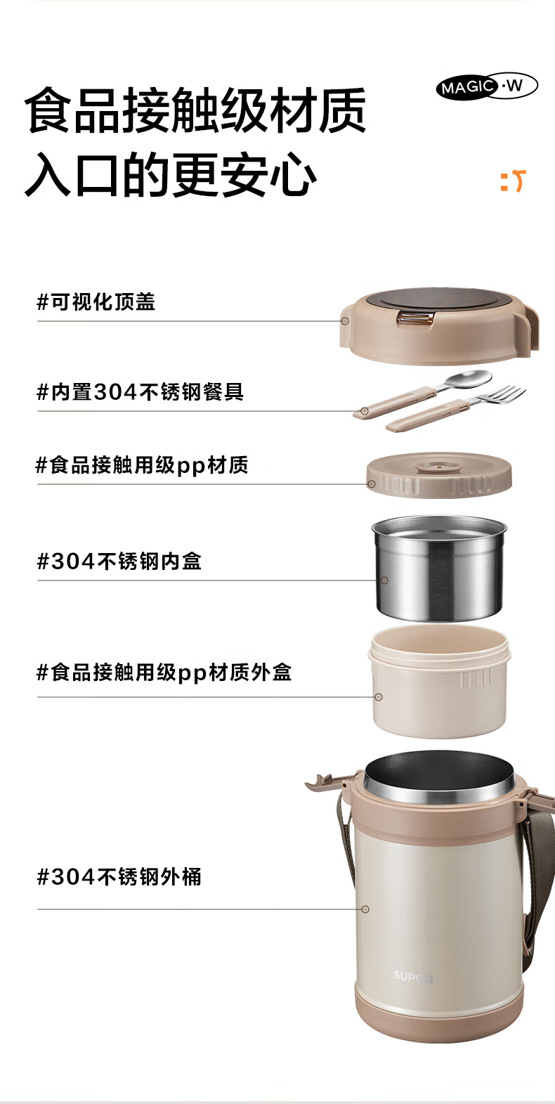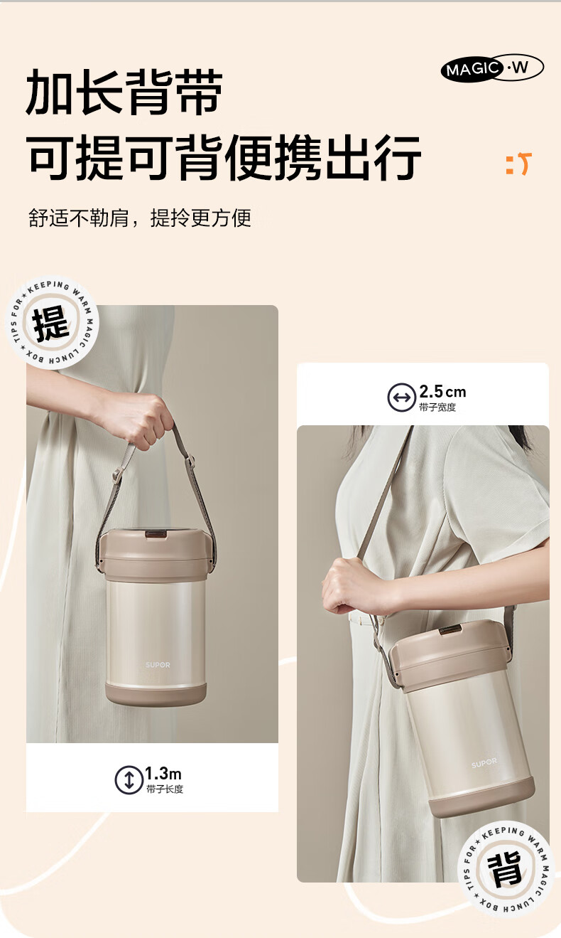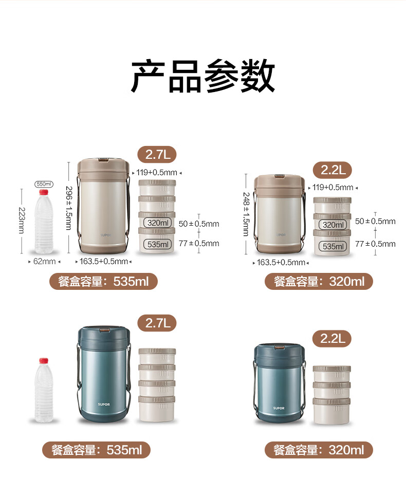• 商品名称:苏泊尔(SUPOR)大容量保温饭盒桶提锅不锈钢学生便当餐盒2.7L沉香褐KFV27AB10 KFV27AB10/个