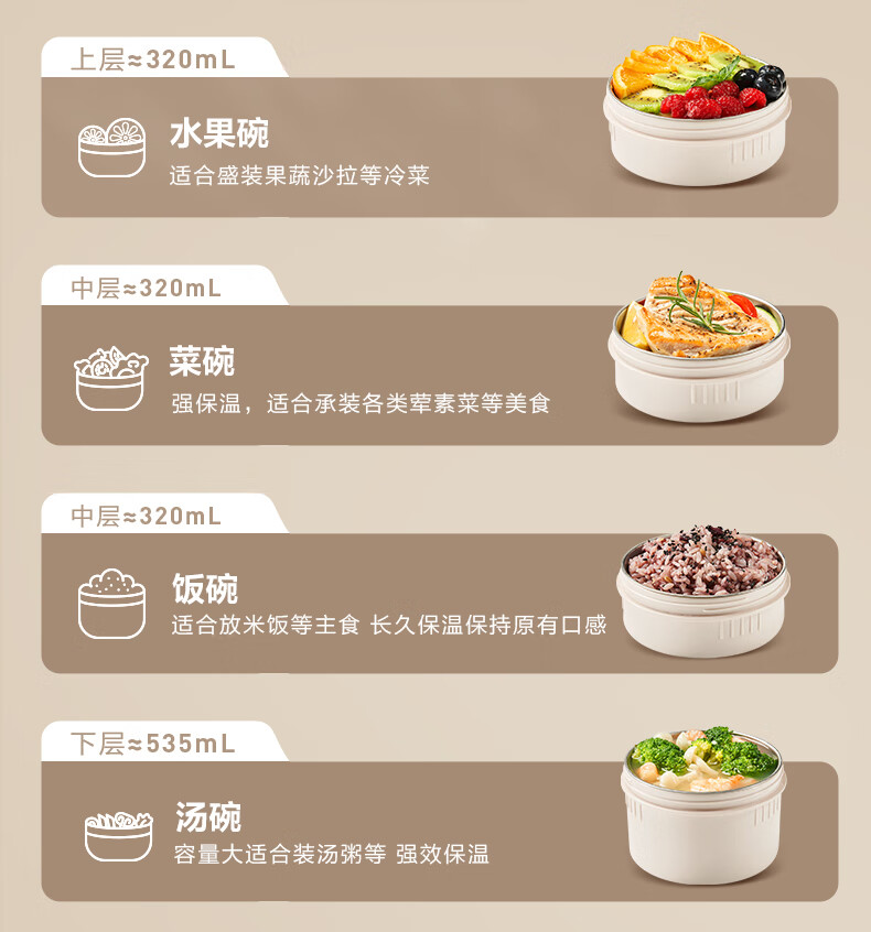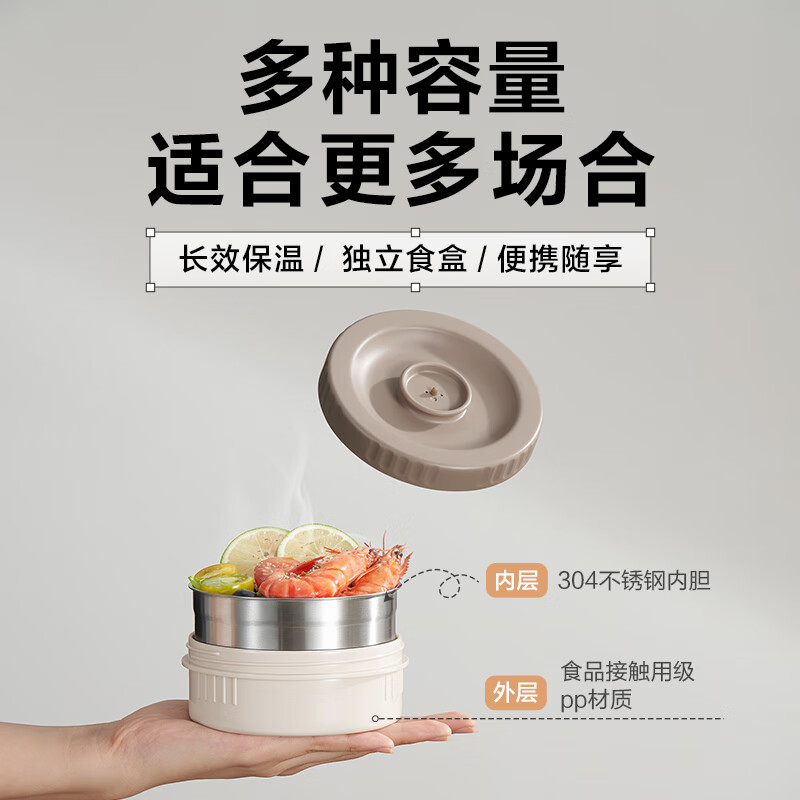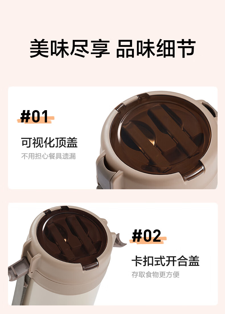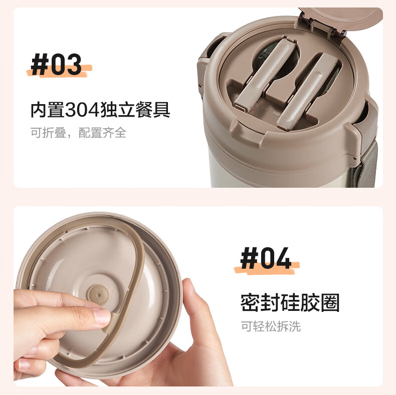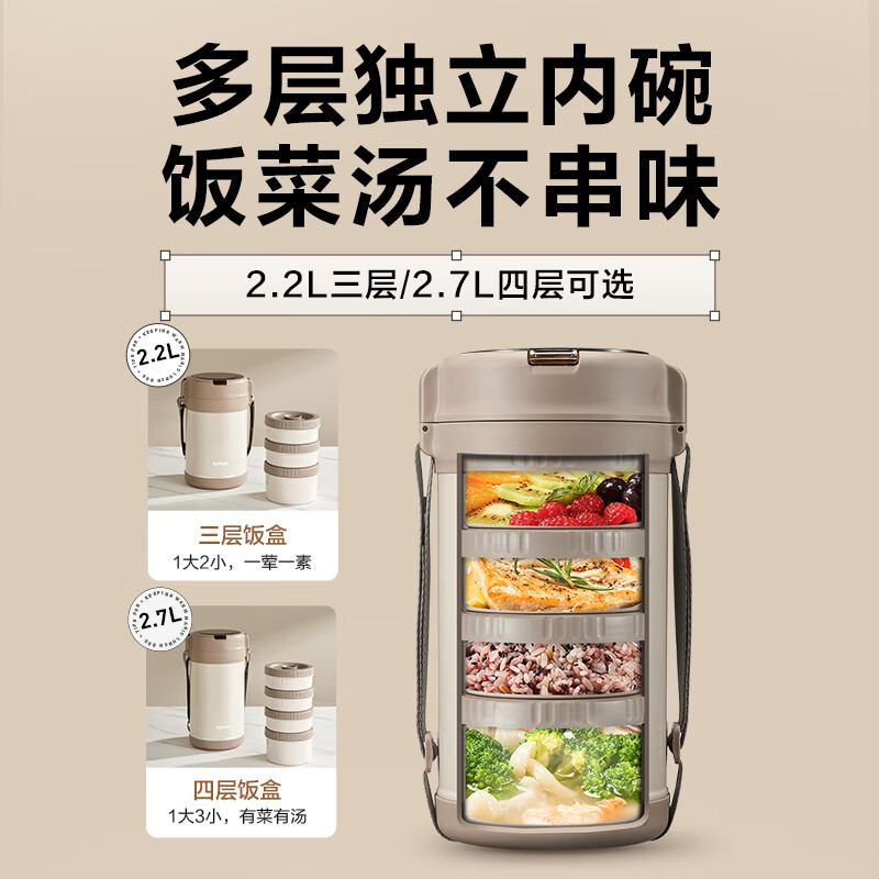 商品名称: 苏泊尔(SUPOR)大容量保温饭盒桶提锅不锈钢学生便当餐盒2.7L沉香褐KFV27AB10 KFV27AB10/个