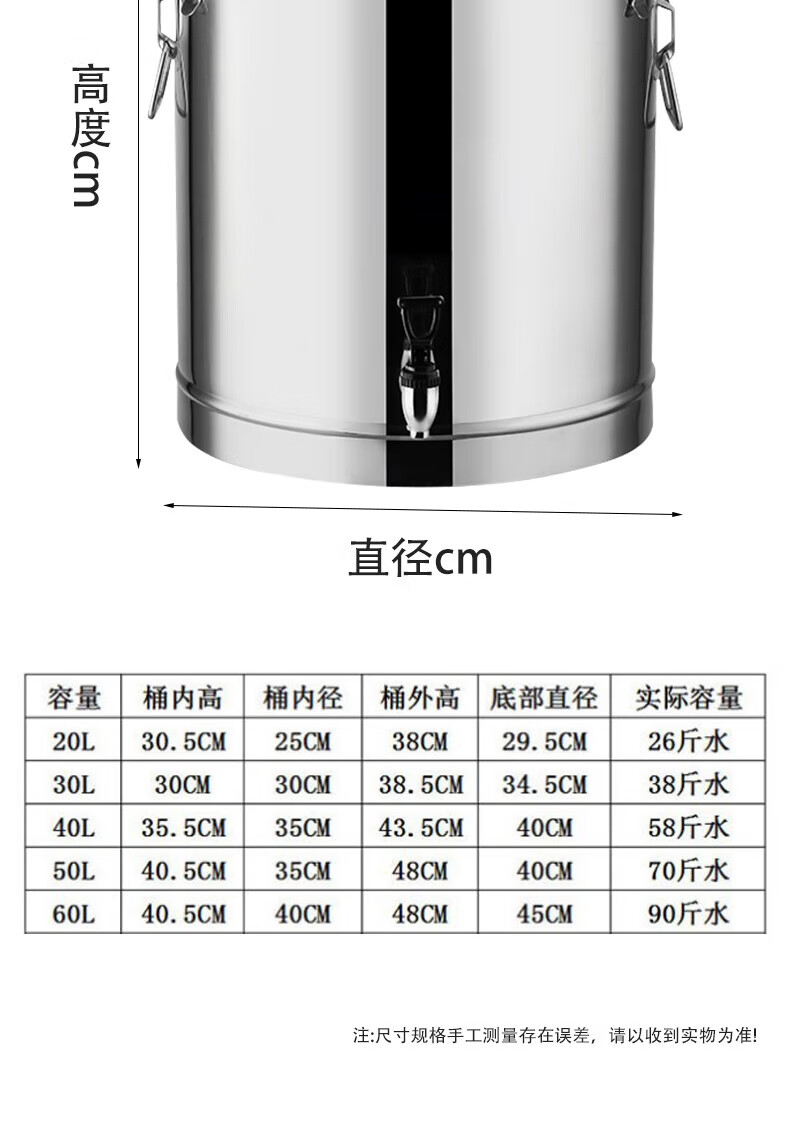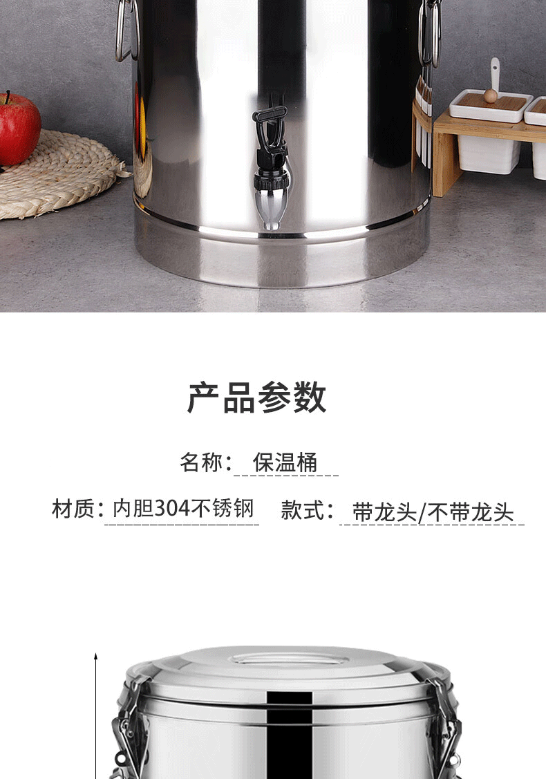 • 商品名称:京蓓尔 商用保温桶食堂304不锈钢米饭桶加厚储物桶 40L不带龙头 40L不带龙头/个