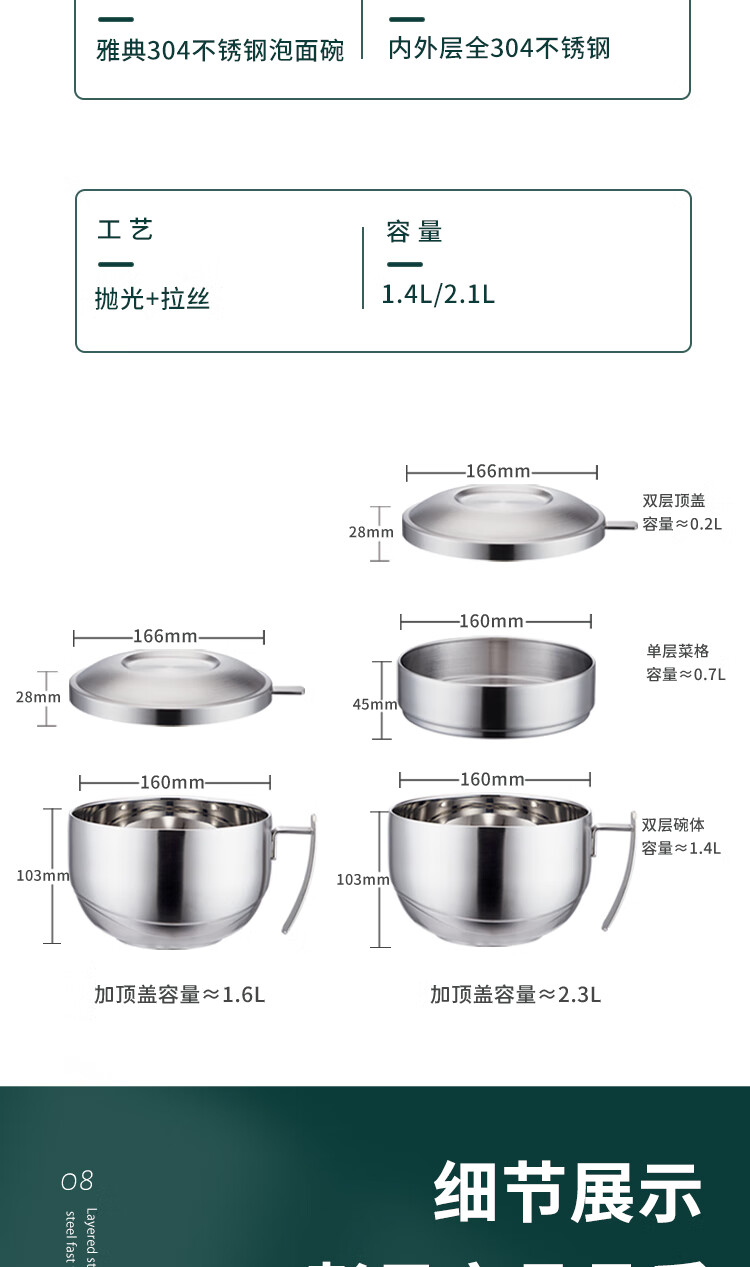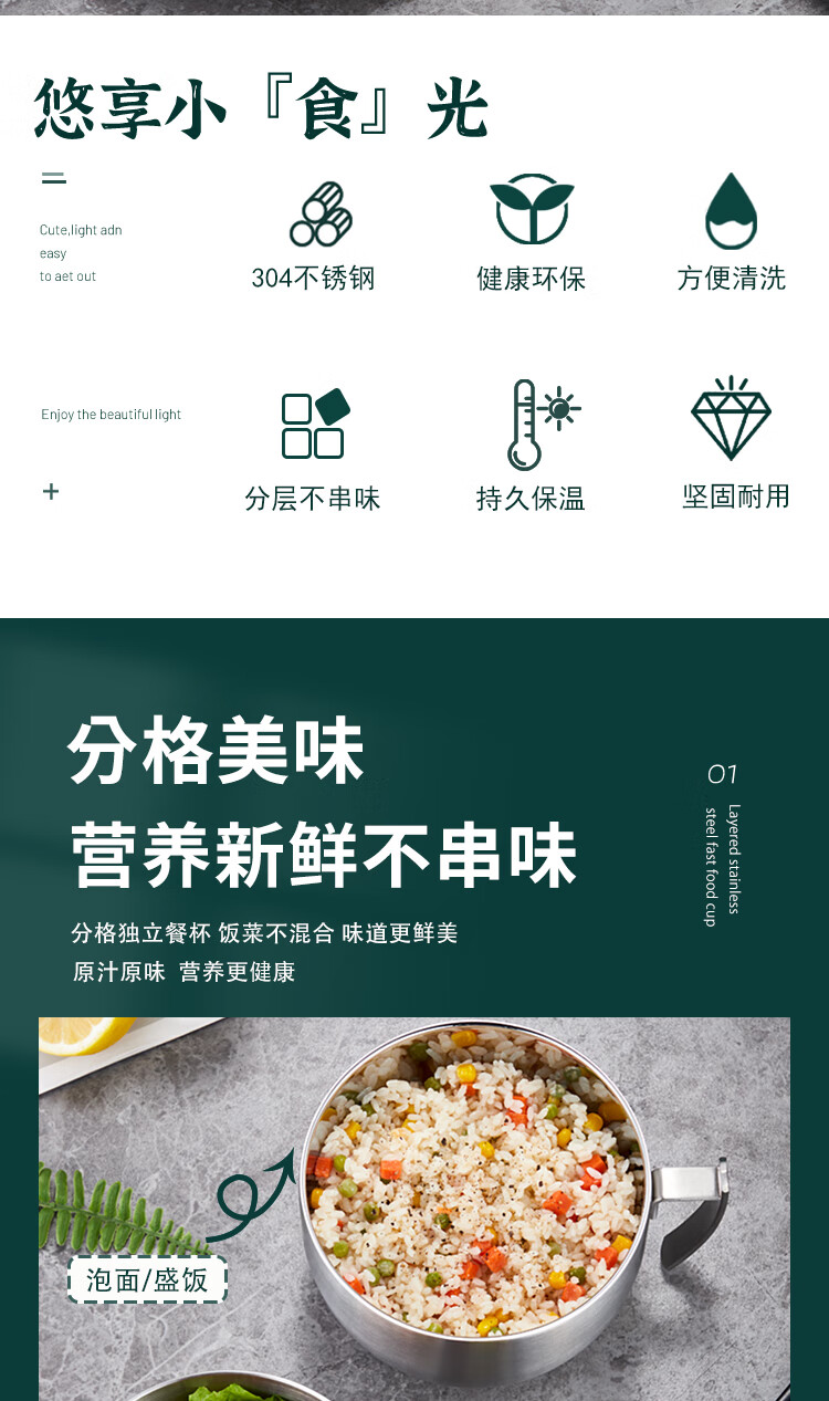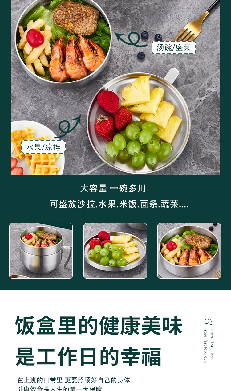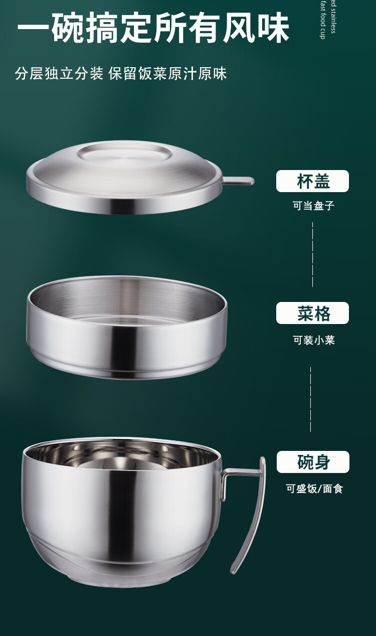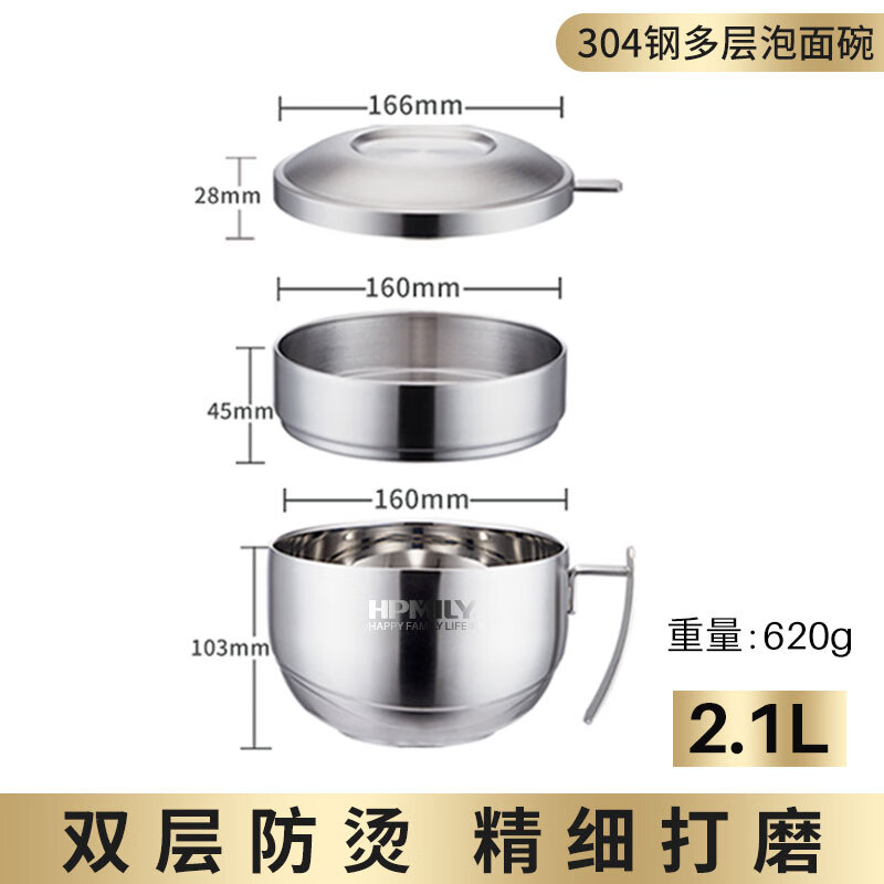 商品名称: 助家乐(HPMILY)饭盒304不锈钢快餐杯大容量上班族食堂打饭餐盒学生泡面盖碗2.1L HPM516-2.1L/个