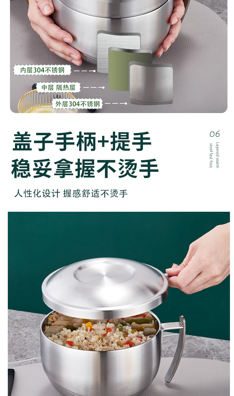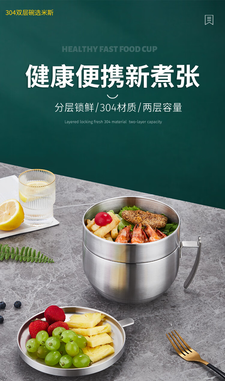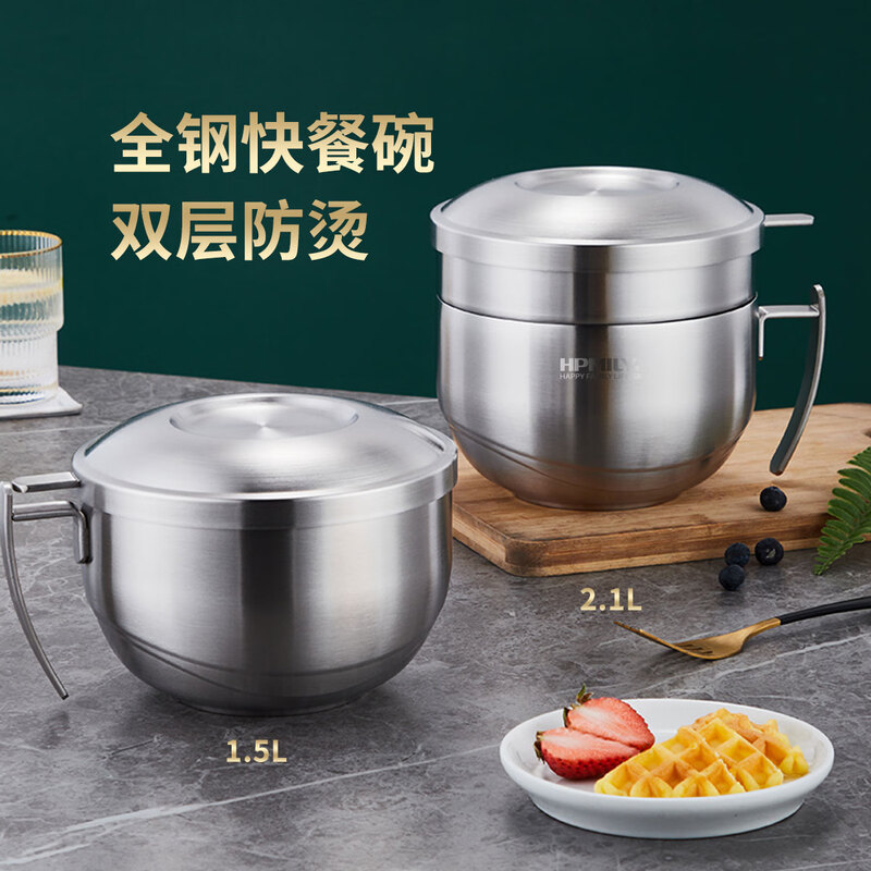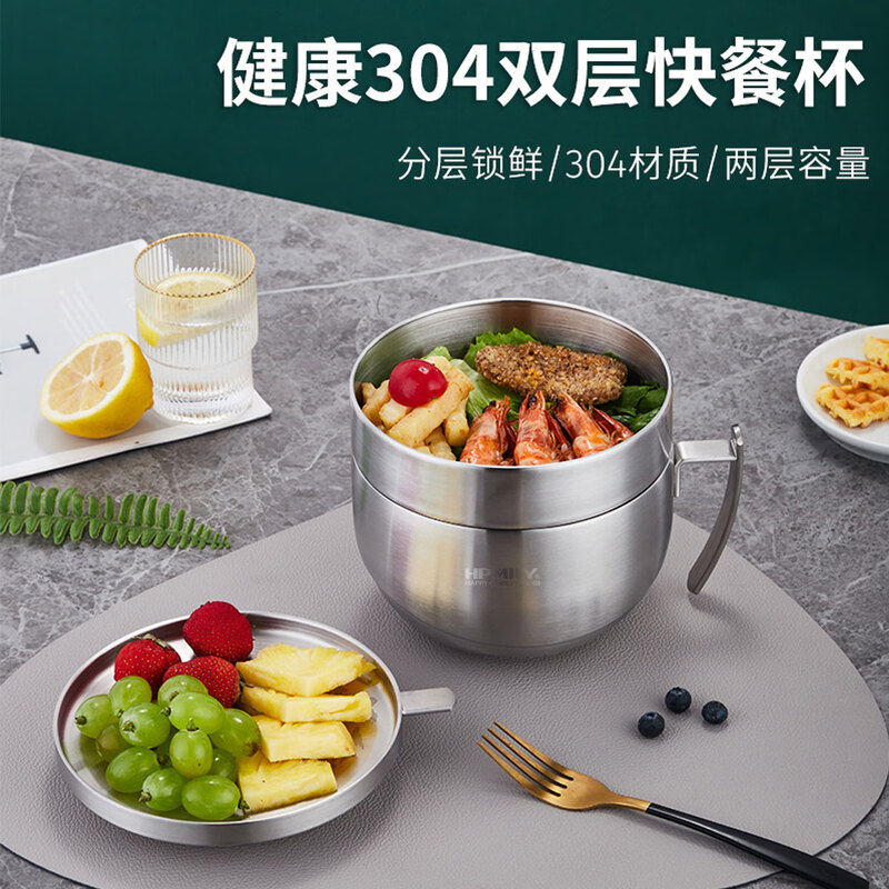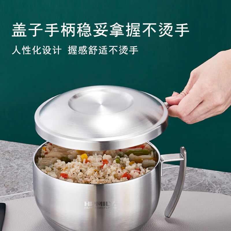 厨具  > 厨房储物  > 饭盒/提锅  >  助家乐/HPMILY  >  助家乐(HPMILY)饭盒304不锈钢快餐杯大容量上班族食堂打饭餐盒学生泡面盖碗2.1L HPM516-2.1L/个