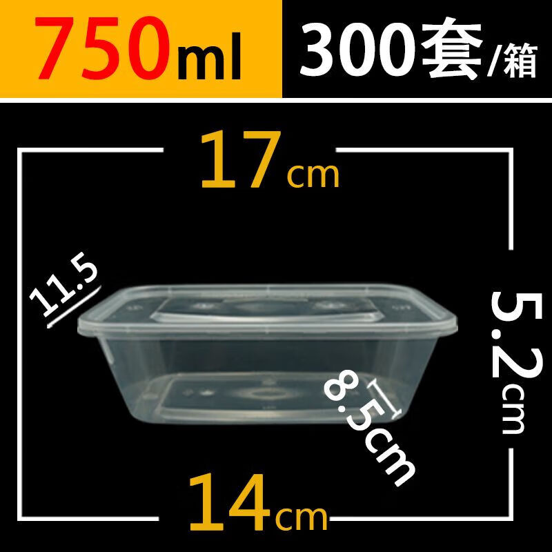 商品名称: 美厨 750ml 一次性餐盒 带盖 透明长方形 300个/箱 750ml /箱