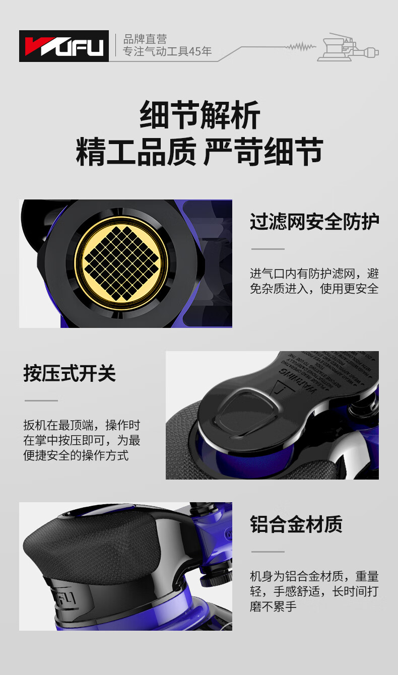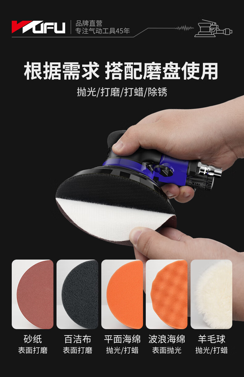 • 商品名称:五福5吋气动打磨机WFS-1438A气磨机工业级干磨机汽车打蜡抛光机砂纸机 WFS-1438A/个