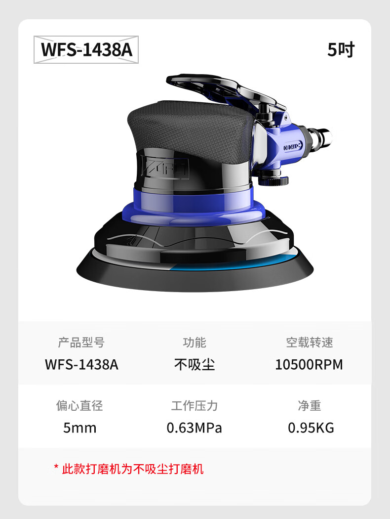 商品名称: 五福5吋气动打磨机WFS-1438A气磨机工业级干磨机汽车打蜡抛光机砂纸机 WFS-1438A/个
