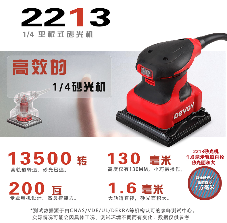 商品名称: 大有(Devon)1/4平板砂光机2213砂纸机家具木材腻子打磨抛光木工工具 2213/台