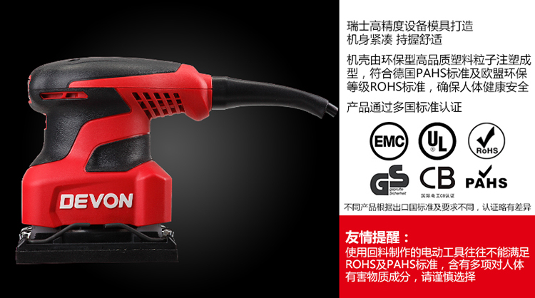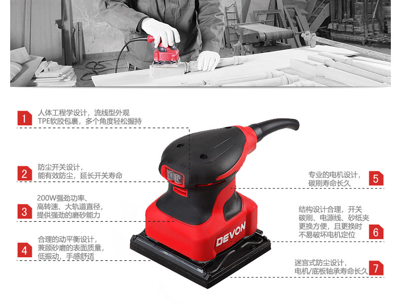• 商品名称:大有(Devon)1/4平板砂光机2213砂纸机家具木材腻子打磨抛光木工工具 2213/台