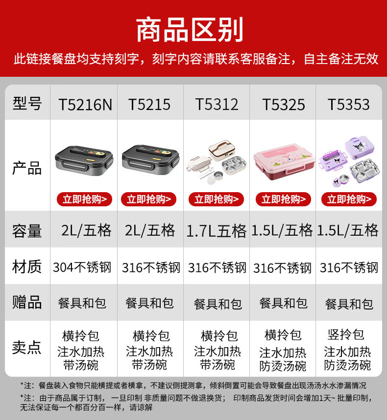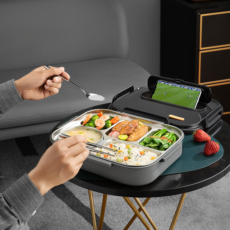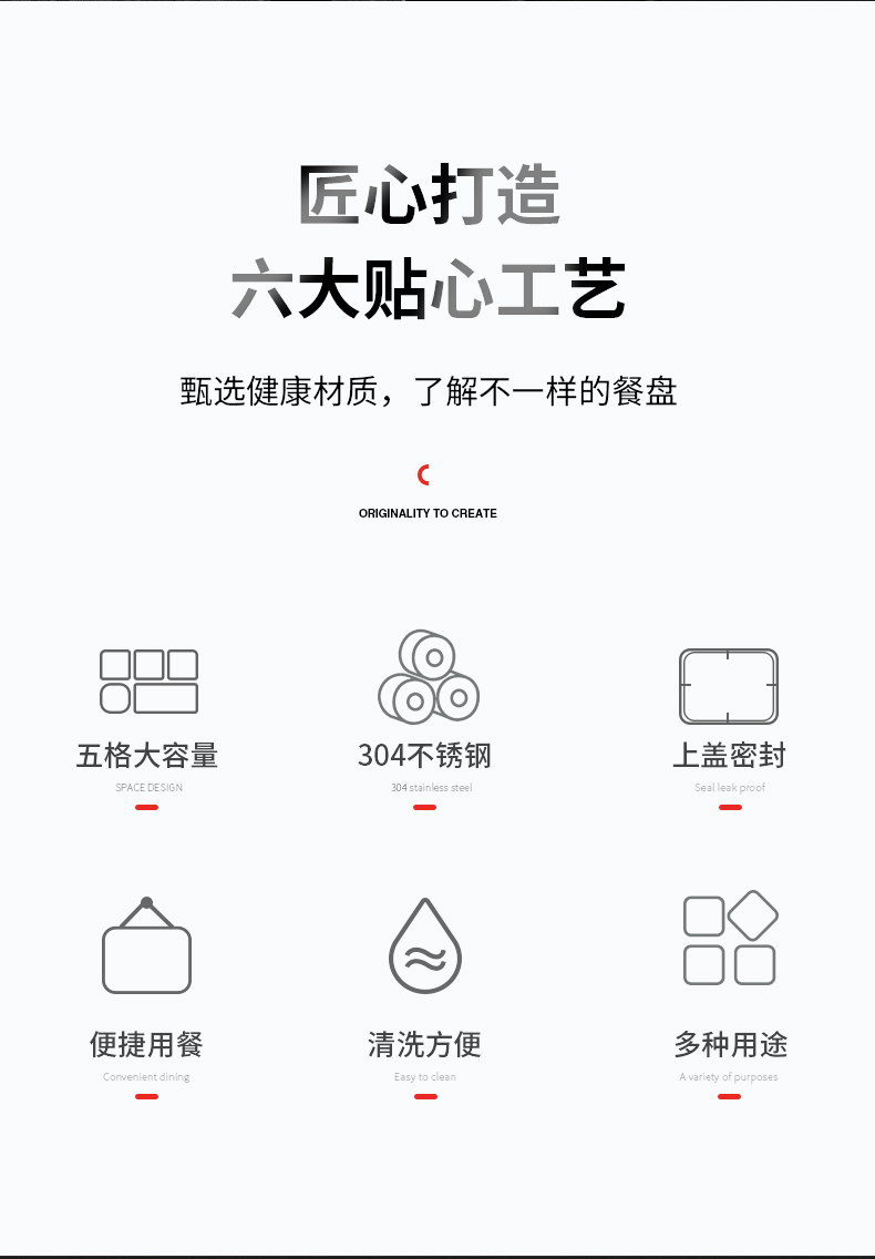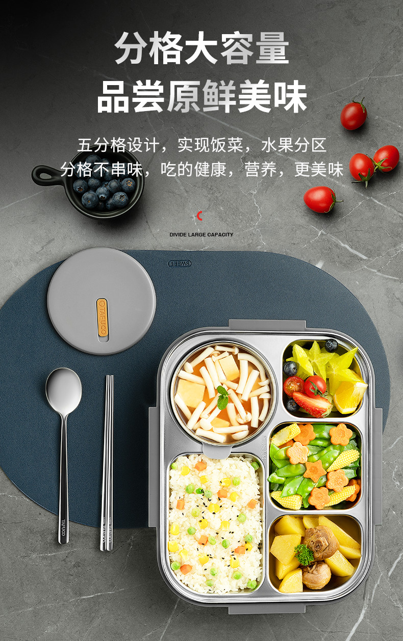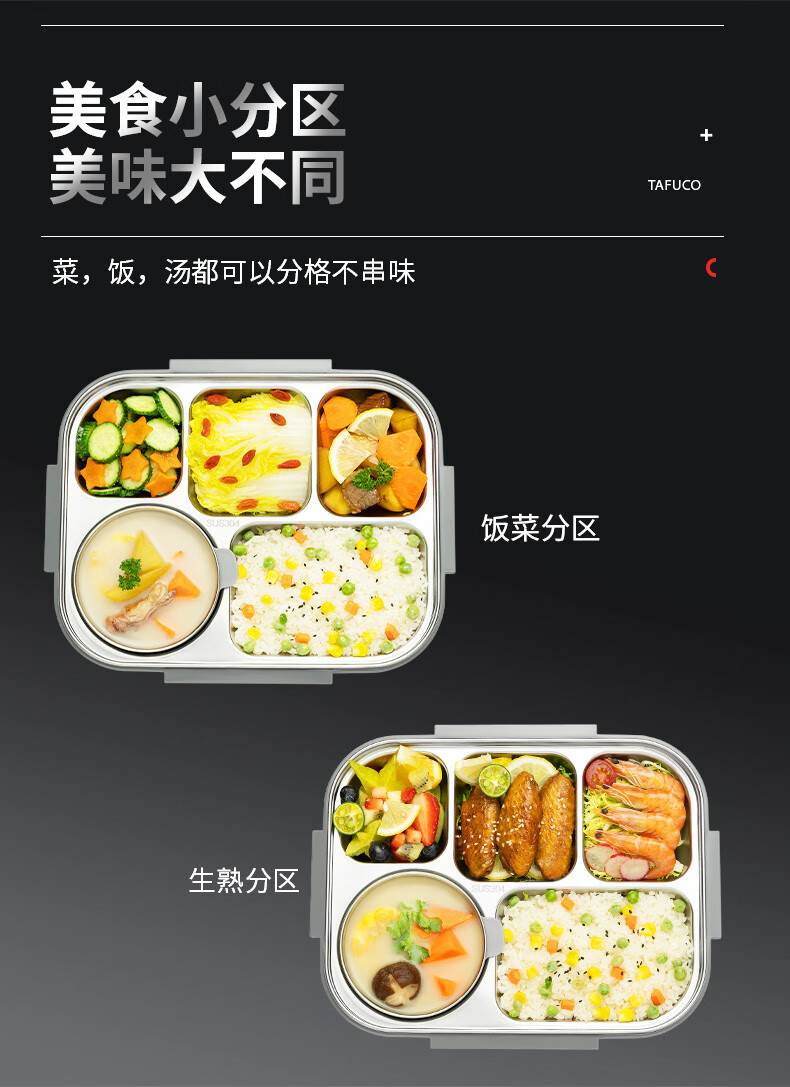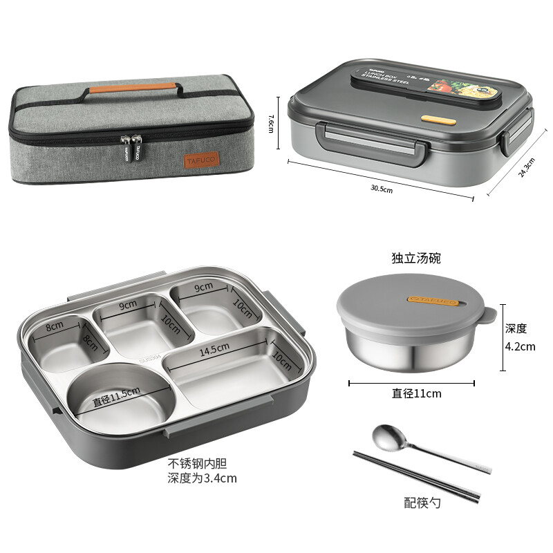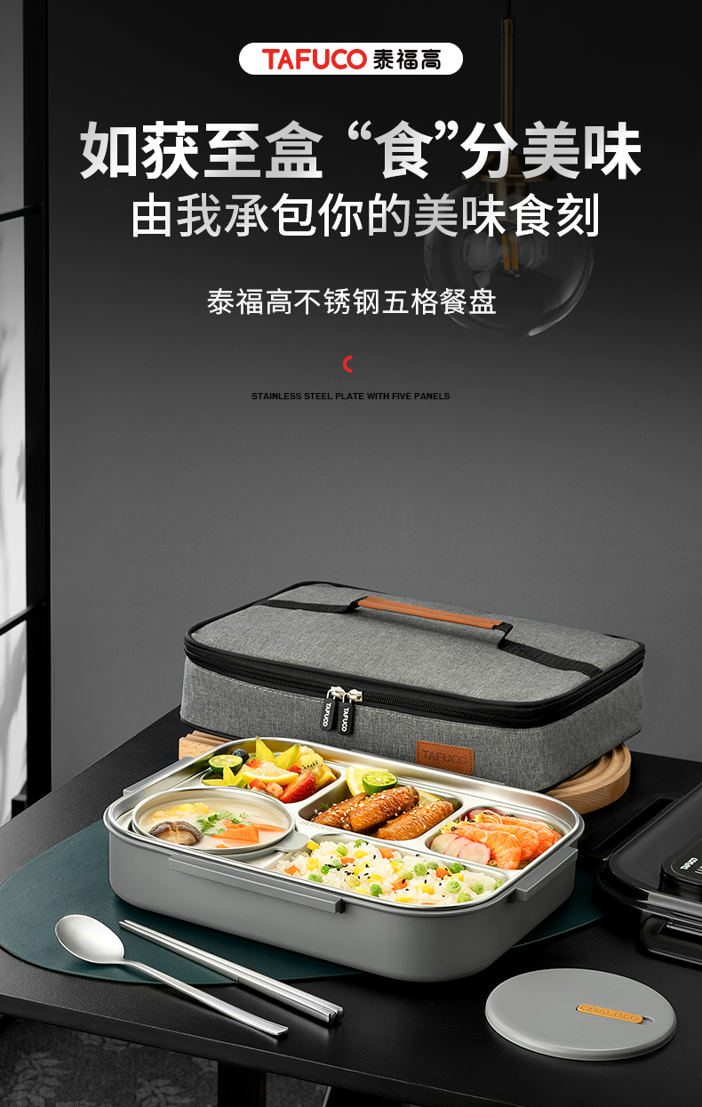 • 商品名称:泰福高(TAFUCO)饭盒304不锈钢五格餐盘防烫学生便当盒配餐具保温袋2L T5216N棕色 饭盒/个
